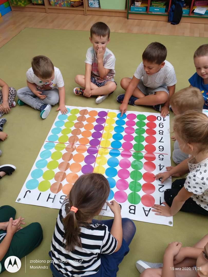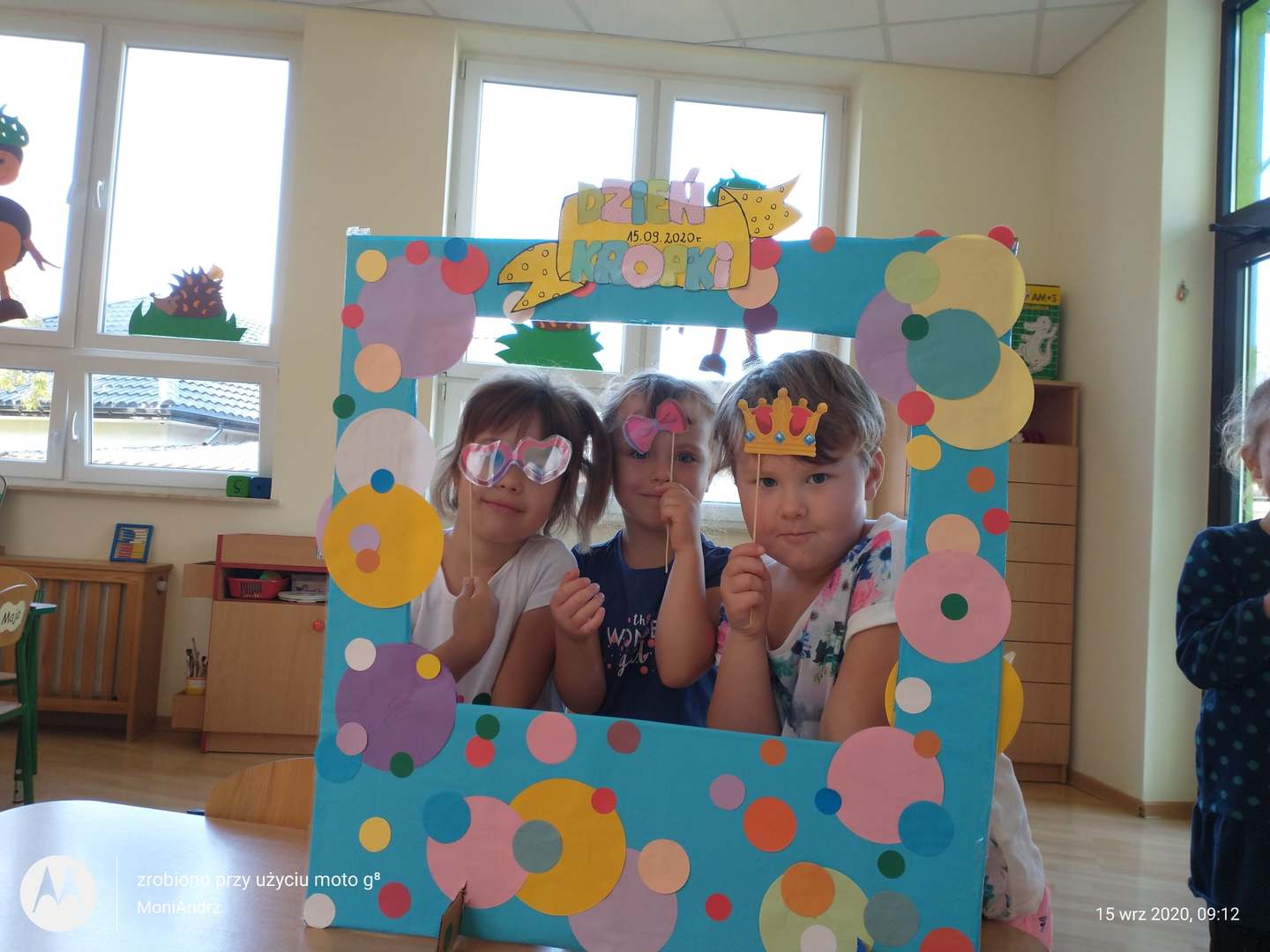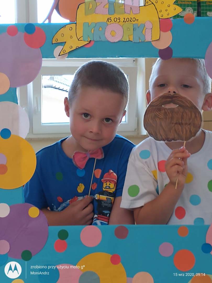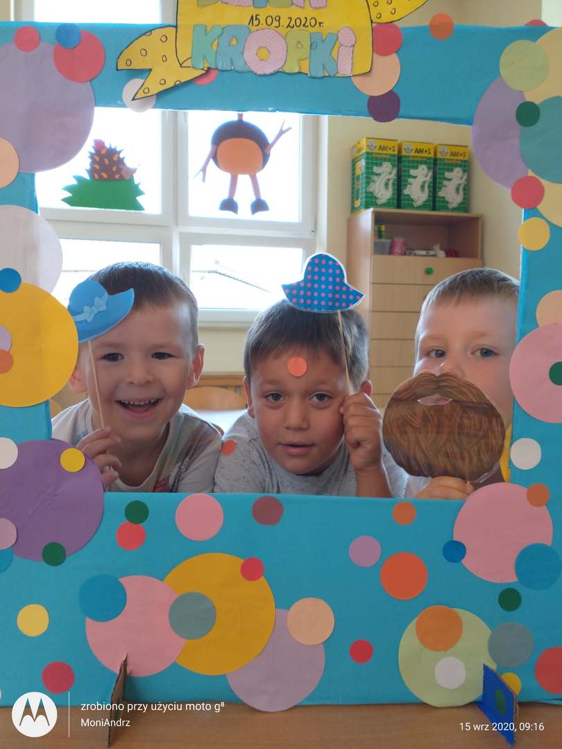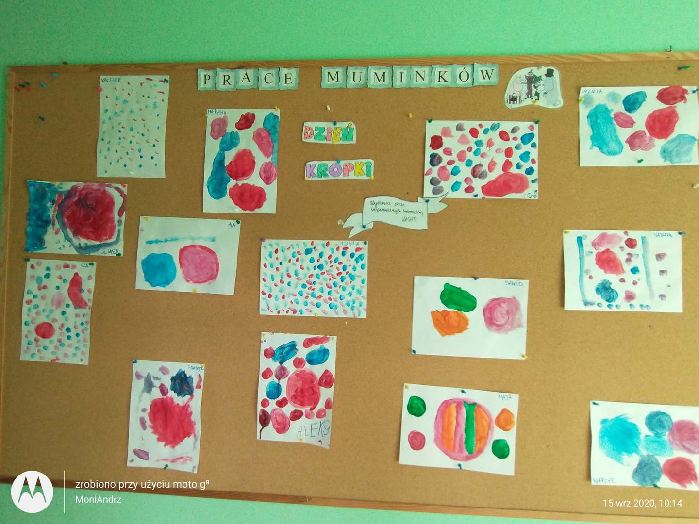 Grupa Muminki świętowanie zaczęła od kropkowych puzzli. Były też kropkowe aktywności z matą do kodowania oraz kropkowa foto-budka. Obejrzeliśmy również film o małej Vashti i kropce, która wszystko zmieniła, a na tablicy przed nasza salą stworzyliśmy galerię prac inspirowaną twórczością Vashti. Za aktywny udział w zakropkowanych działaniach cała grupa otrzymała dyplomy.