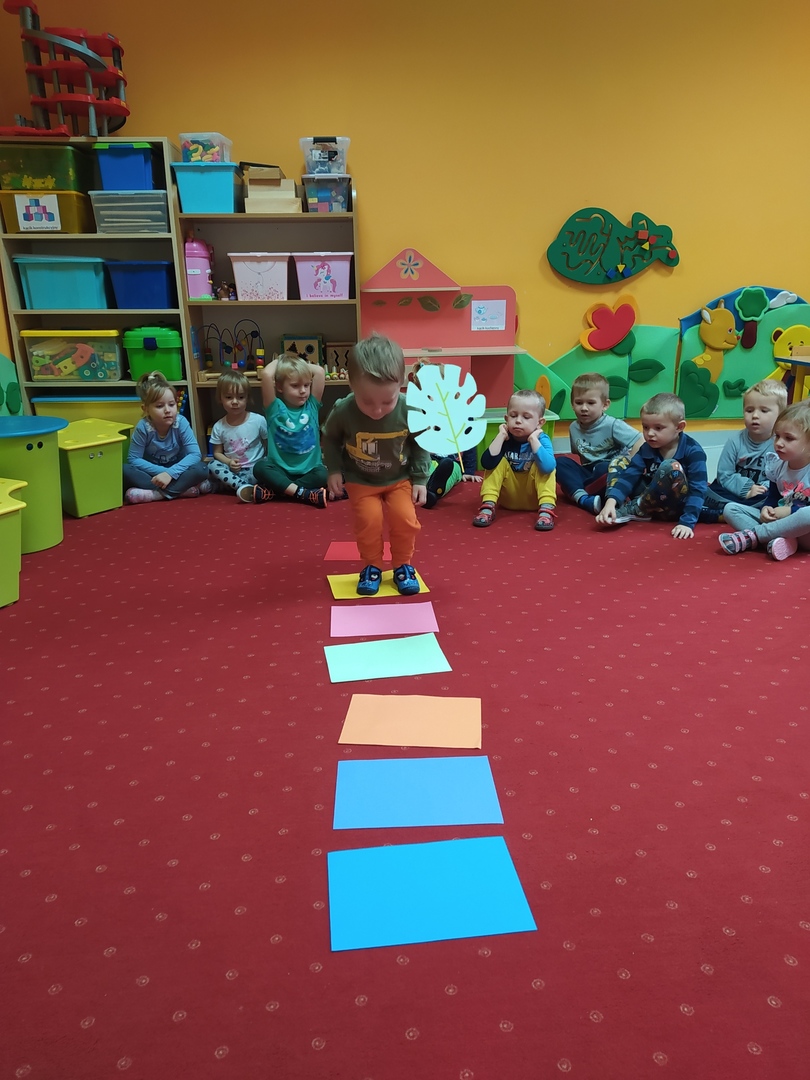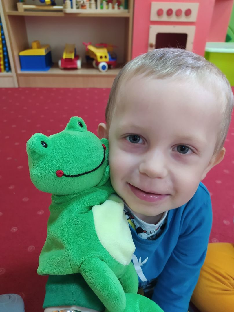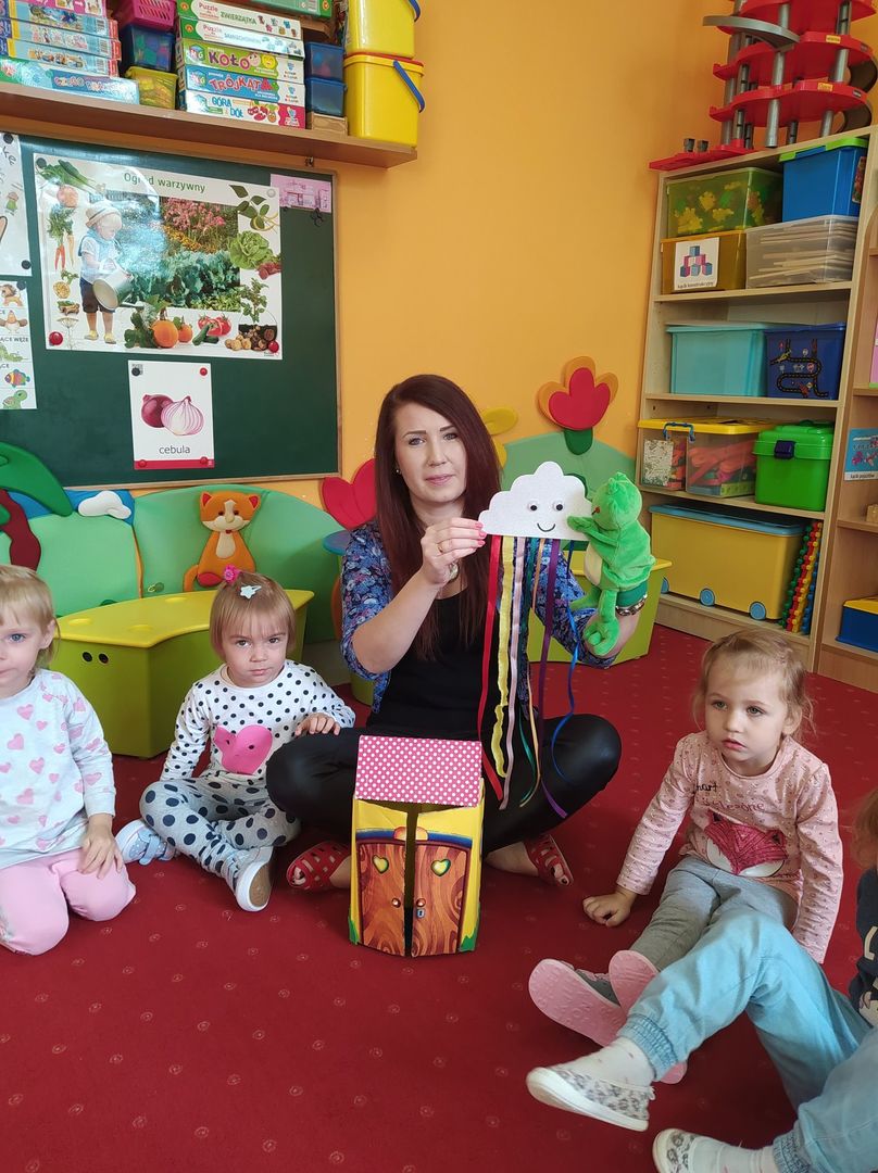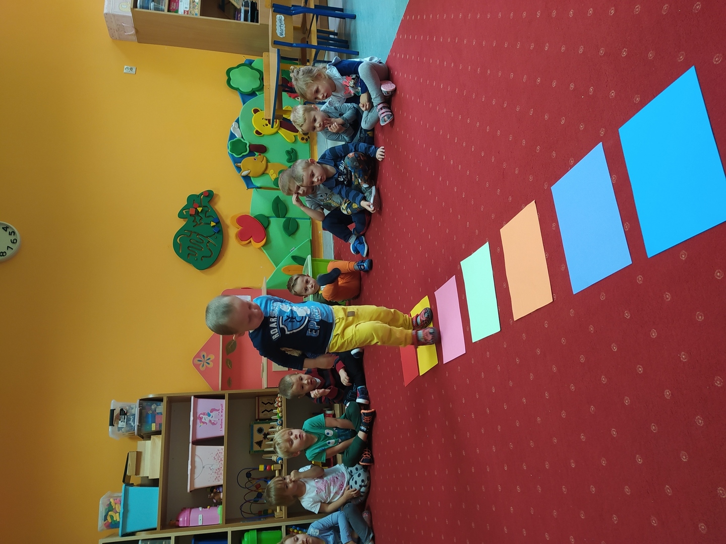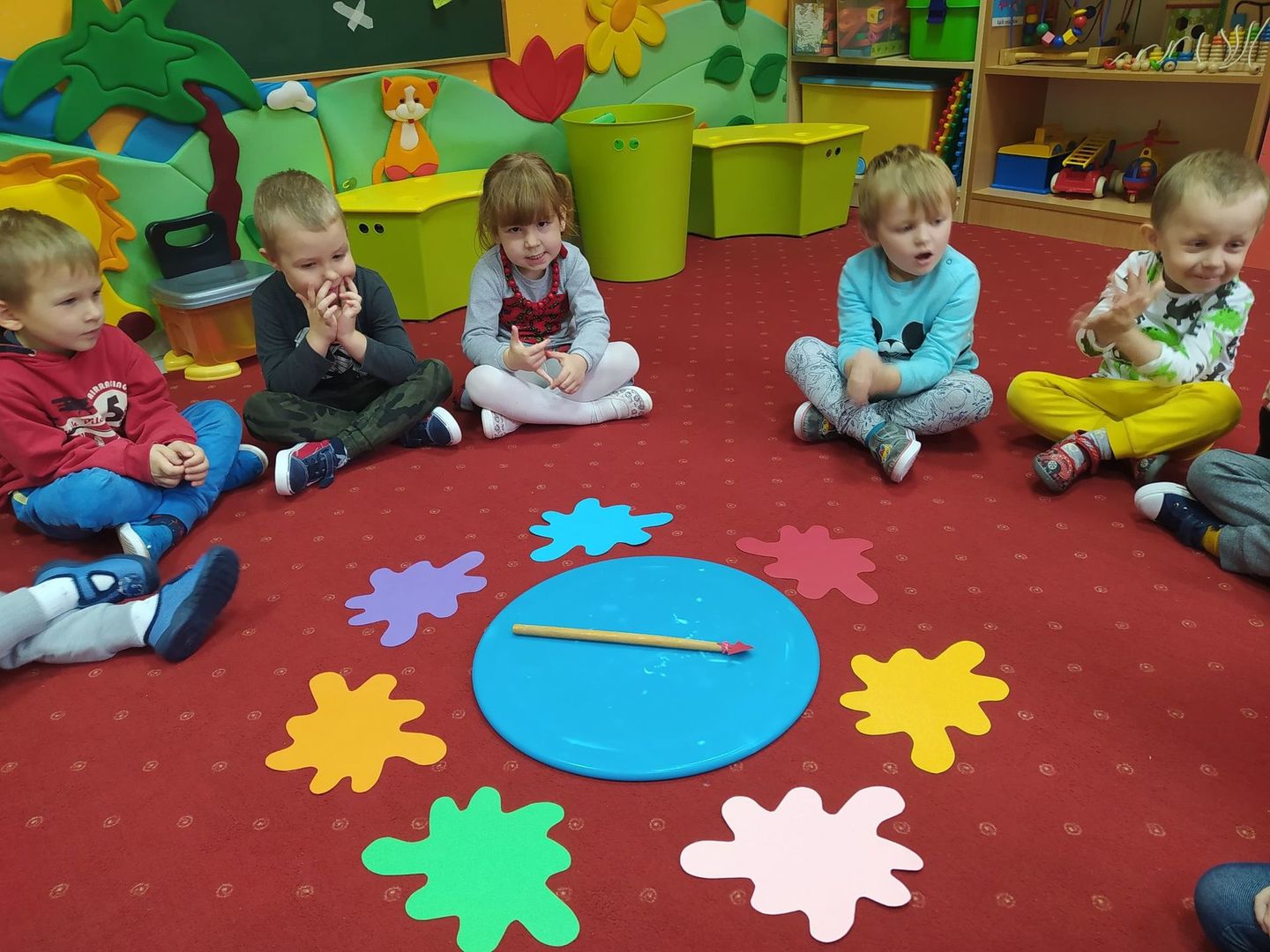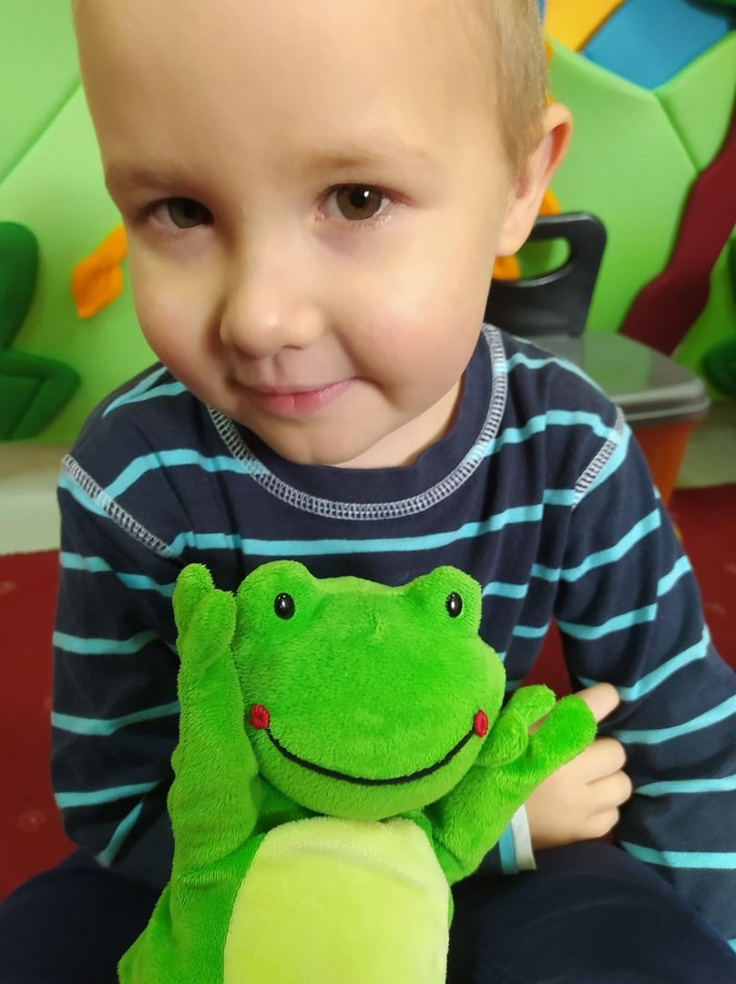 Nowa podstawa programowa wychowania przedszkolnego nakłada na przedszkola obowiązek włączenia zajęć z języka obcego w ramy dnia przedszkolnego. W naszej grupie w świat języka angielskiego dzieci zabiera pacynka żabki Polly. Żabka w każdym miesiącu, zaznajamiać będzie Smerfy z różnymi zwrotami, piosenkami, wyliczankami, zabawami w języku angielskim. Mieszka ona w naszej sali, a dzieci kiedy tylko chcą mogą zaprosić ją do wspólnej zabawy. W miesiącu październiku Polly nauczyła nasze maluszki witać się i żegnać, zaprezentowała im znaczenie kilku czasowników (wstać, siąść, bić brawo, tupać, obracać się, uśmiechać się, przybijać piątkę) lecz przede wszystkim zaprosiła je do świata kolorów.