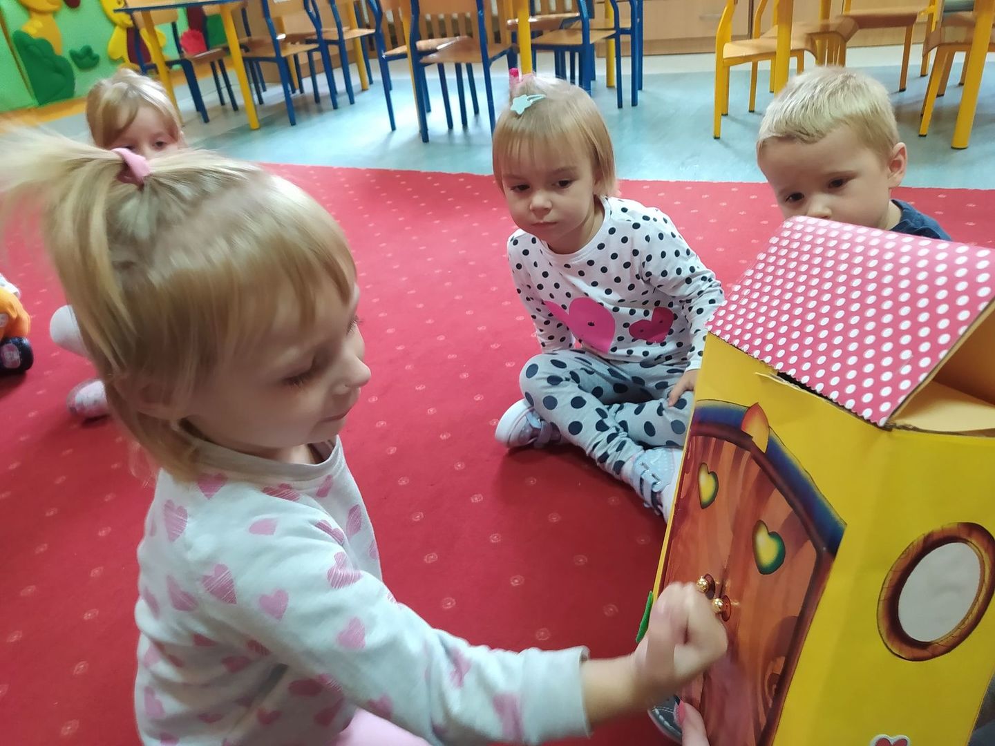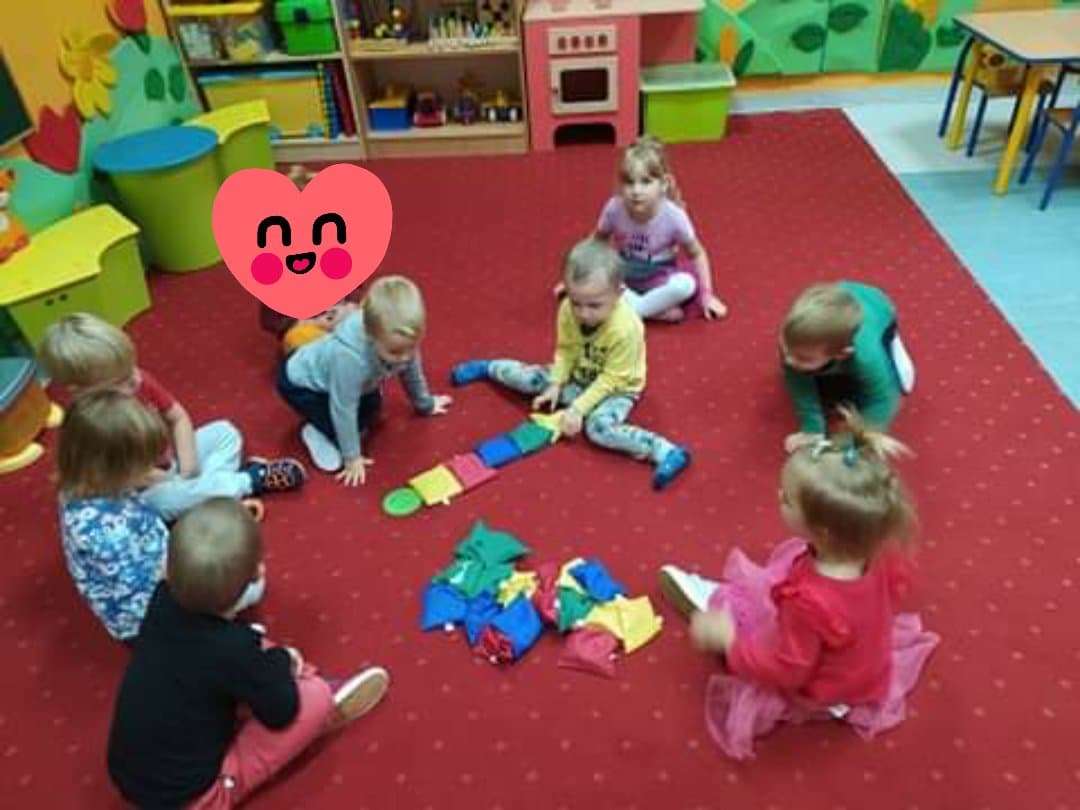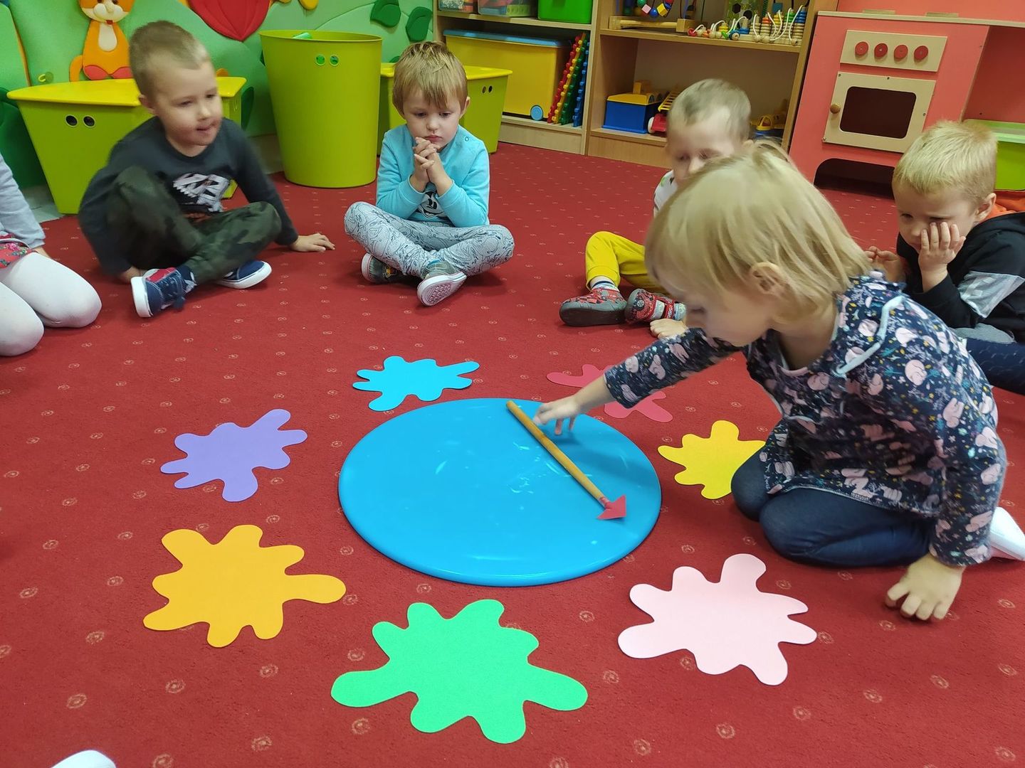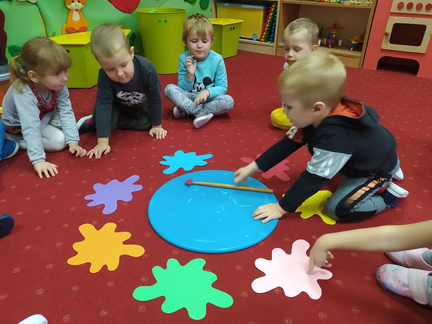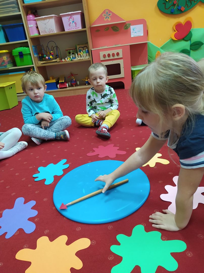 Nowa podstawa programowa wychowania przedszkolnego nakłada na przedszkola obowiązek włączenia zajęć z języka obcego w ramy dnia przedszkolnego. W naszej grupie w świat języka angielskiego dzieci zabiera pacynka żabki Polly. Żabka w każdym miesiącu, zaznajamiać będzie Smerfy z różnymi zwrotami, piosenkami, wyliczankami, zabawami w języku angielskim. Mieszka ona w naszej sali, a dzieci kiedy tylko chcą mogą zaprosić ją do wspólnej zabawy. W miesiącu październiku Polly nauczyła nasze maluszki witać się i żegnać, zaprezentowała im znaczenie kilku czasowników (wstać, siąść, bić brawo, tupać, obracać się, uśmiechać się, przybijać piątkę) lecz przede wszystkim zaprosiła je do świata kolorów.