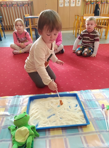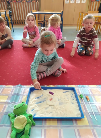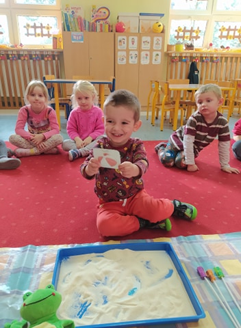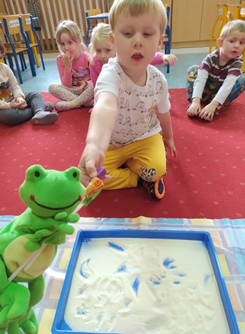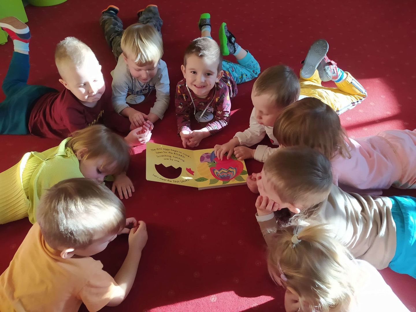 Nasze listopadowe spotkania z żabką Polly, poświęcone były tematyce zabawek. Podczas wspólnie spędzanych z Polly chwil, Smerfy zamieniły się w archeologów, graczy, a także tancerzy, piosenkarzy, czytelników i aktorów. Dzięki pomysłowym zabawom i ciekawym akcesoriom, dzieci w łatwy i przyjemny sposób poznały nazwy swoich ulubionych zabawek (pluszowy miś, lalka, piłka, samochód), nauczyły się śpiewać piosenkę pt. „Open, close”, poznały rymowankę „Teddy bear, teddy bear”, opanowały umiejętność przeliczania elementów w zakresie 3, a także utrwaliły poznane we wrześniu nazwy kolorów. Trochę się działo, a w grudniu będzie jeszcze ciekawiej.