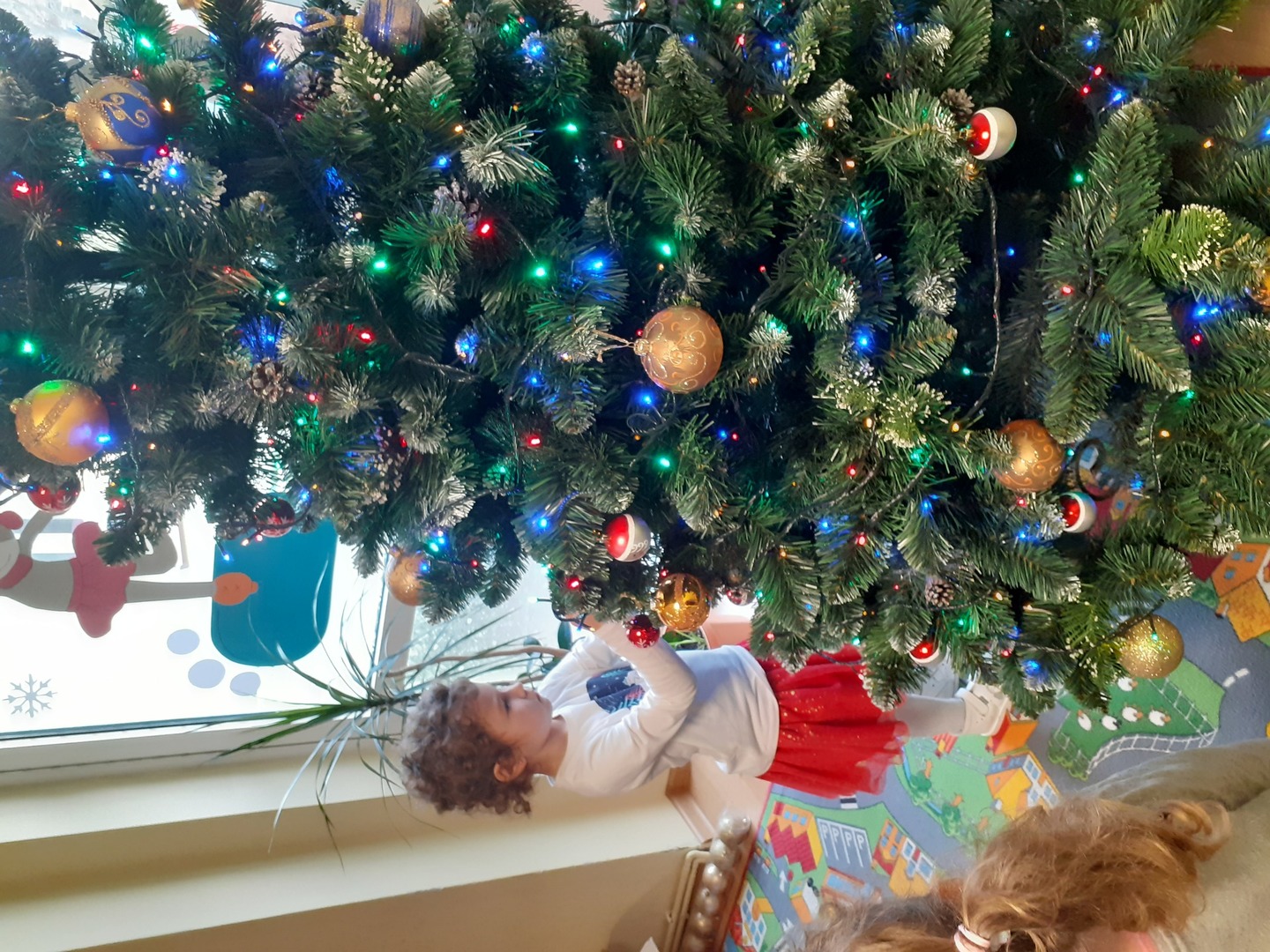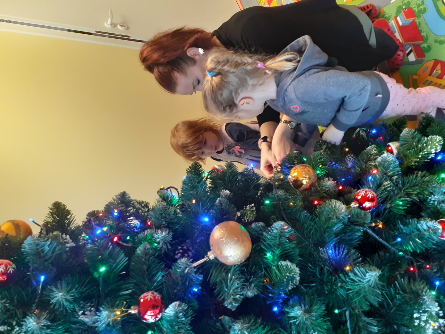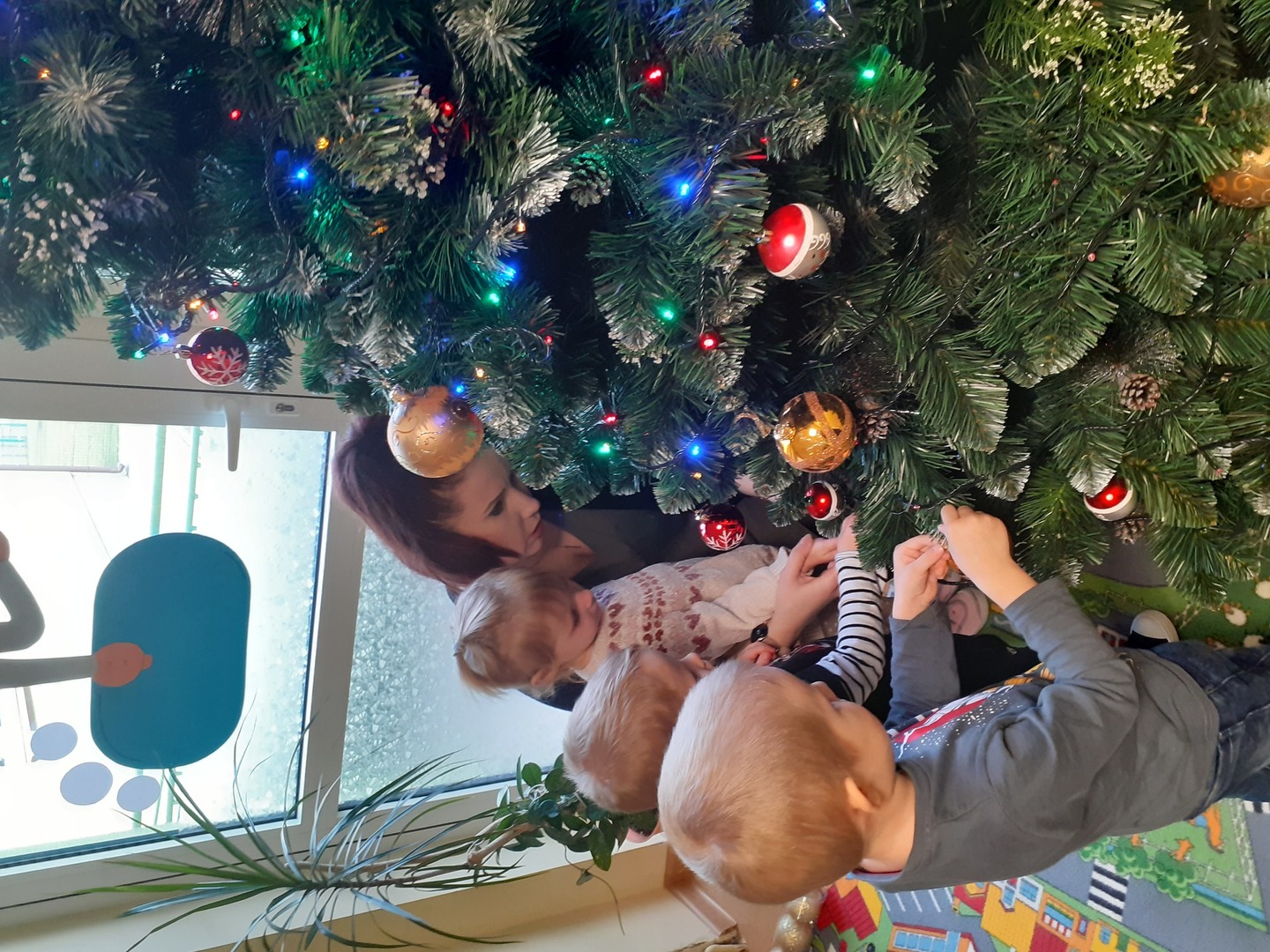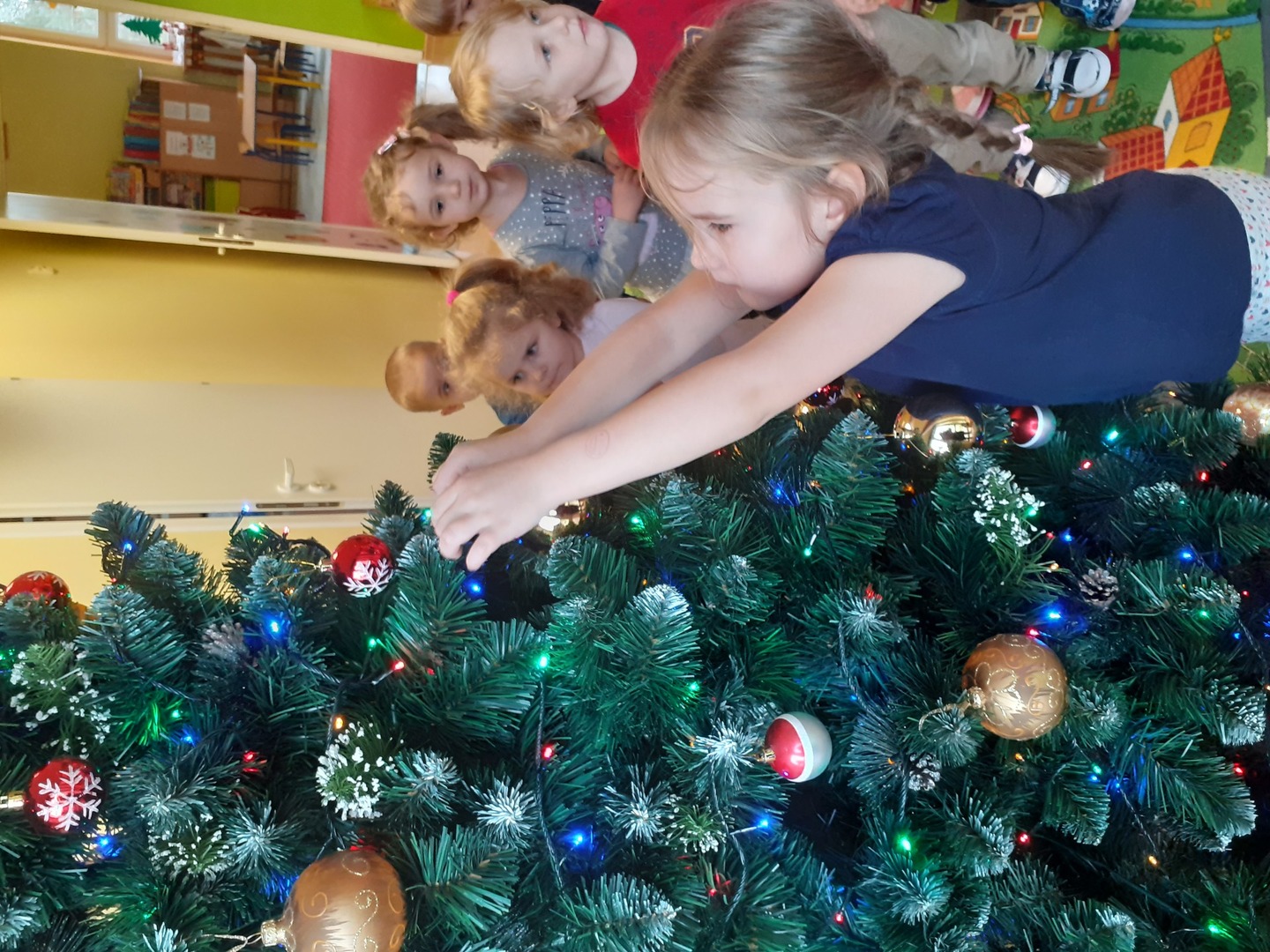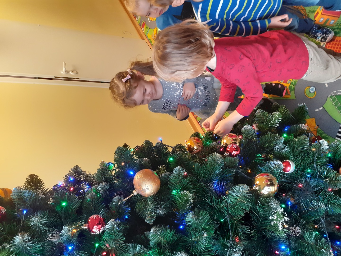 W naszym przedszkolu od dziś (04.12.20) można poczuć magię świąt. Czas Bożego Narodzenia wiąże się z tradycją ubierania choinki. W Akwarelce nie mogło zabraknąć tego zwyczaju. W oczekiwaniu na Św. Mikołaja zabraliśmy się do ozdabiania świątecznego drzewka. Dzieci z grup: Smerfy i Gumisie zawieszały kolorowe bombki, gwiazdki i świecidełka. Choinka wygląda pięknie!