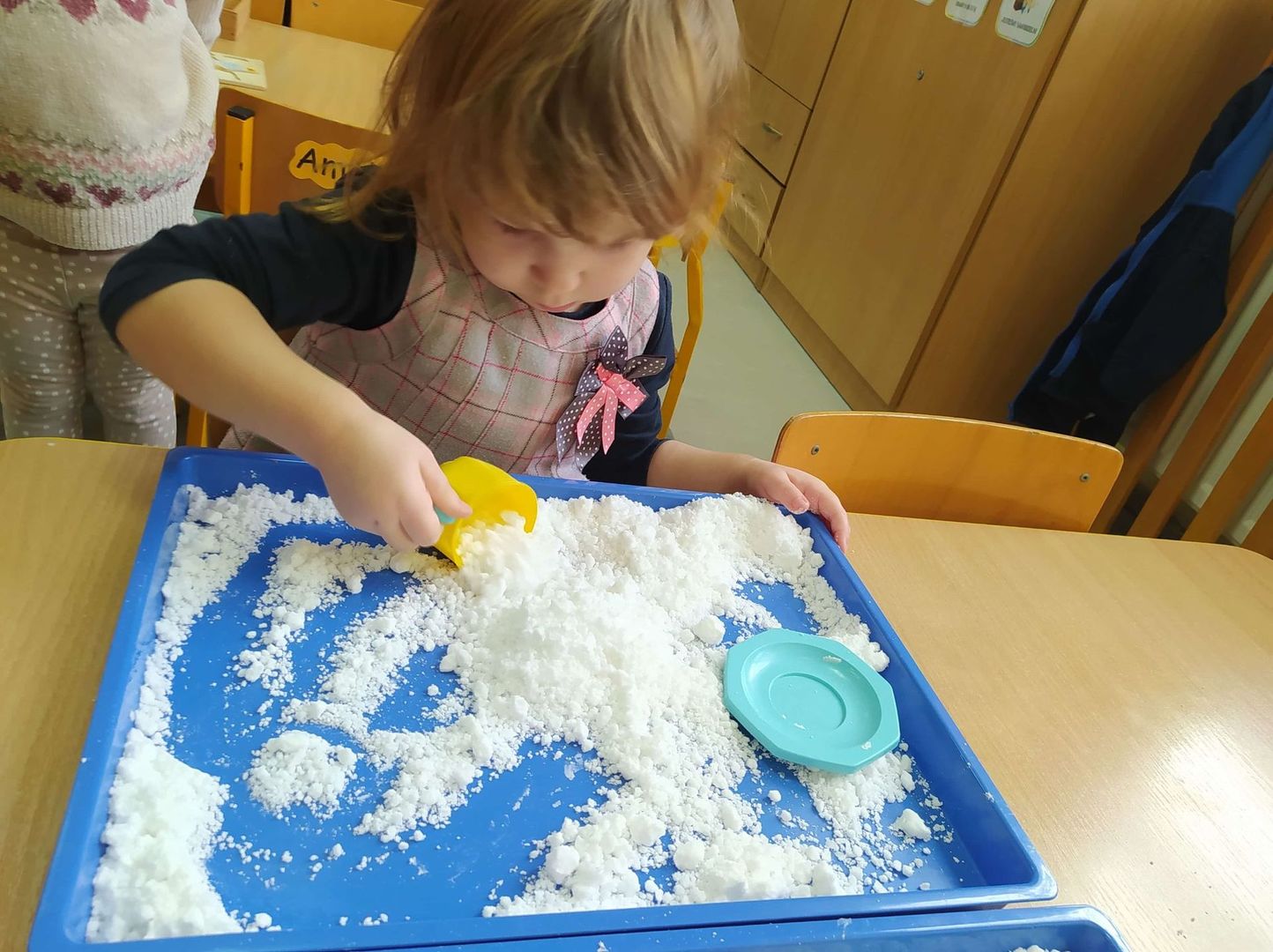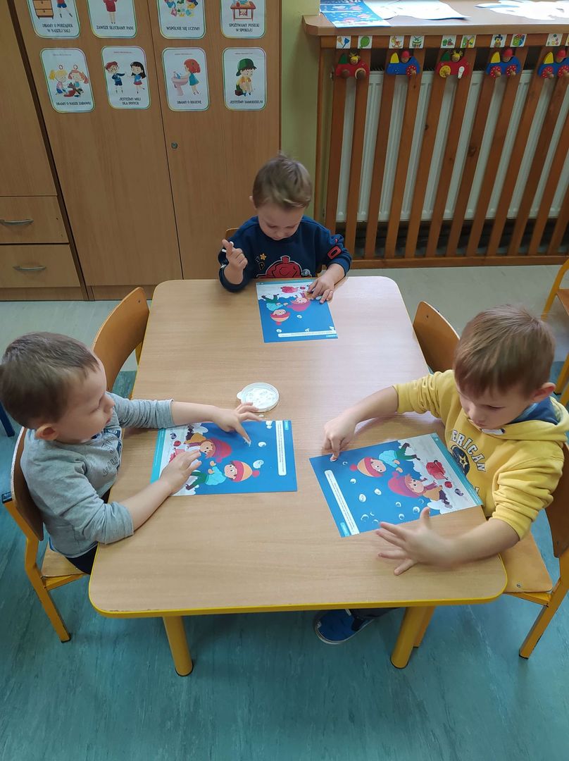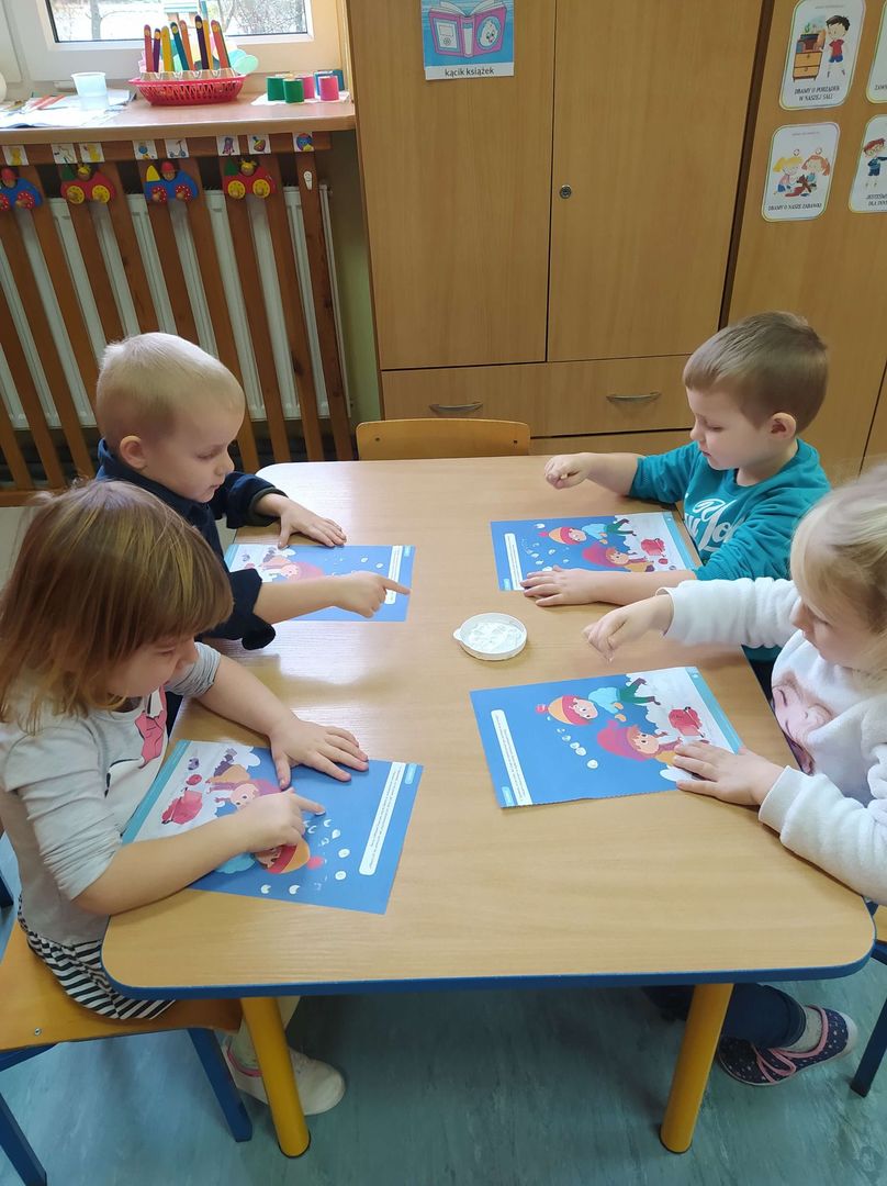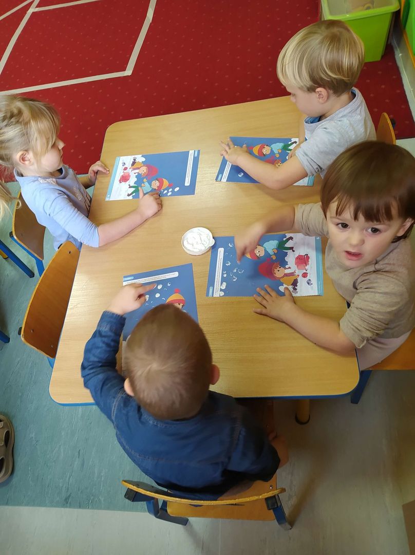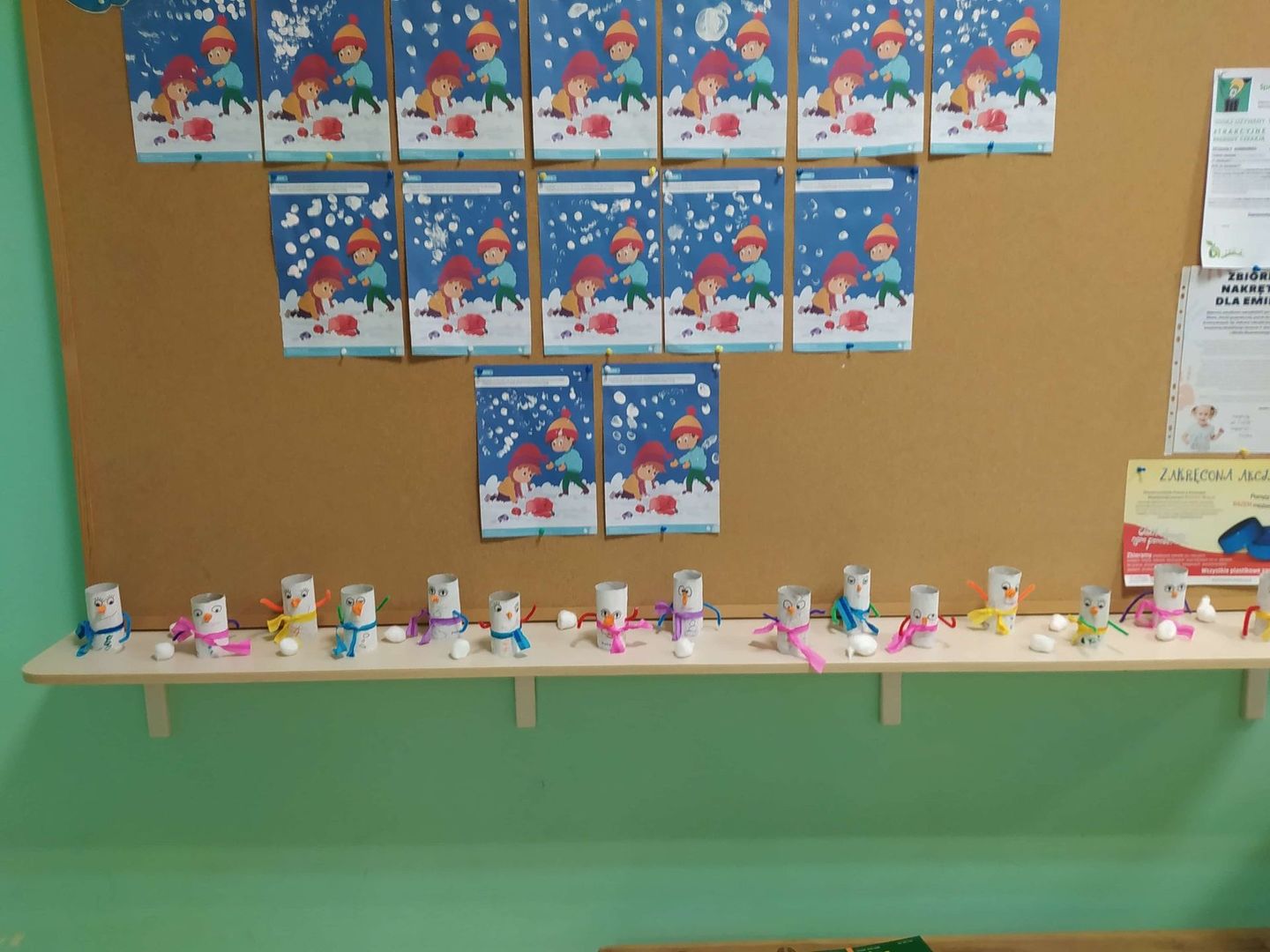 W tym tygodniu dzieci z grupy Smerfy z racji omawianej tematyki „Nadchodzi zima" wykonały przepiękną pracę plastyczną „Bałwanki” z rolek papierowych oraz za pomocą „magicznego” palca zanurzonego w farbie, stemplowały śnieg . Brały udział w wielu zabawach poświęconym zbliżającej się dużymi krokami porze roku – zimie: tańczyły z bibułowymi wstążkami, odbywały niezwykłą przeprawę do Krainy Zimy, a też bawiły się sztucznym śniegiem zrobionym z mąki ziemniaczanej i wody. Przy użyciu kostki atmosferycznej utrwalały informacje na temat poszczególnych pór roku. Jednak nie obyło się również bez „ciężkiej” pracy , a mianowicie wykonywania kart pracy, poznania figur geometrycznych, a także podstaw kodowania. Smerfy dowiedziały się również do czego służy kalendarz adwentowy, dzięki któremu od 01.12 wspólnie odliczamy dni do przyjścia Świętego Mikołaja. :) Nie zapomnieliśmy, także jak ważne jest dotlenianie organizmu dlatego też odwiedziliśmy przedszkolny plac zabaw.