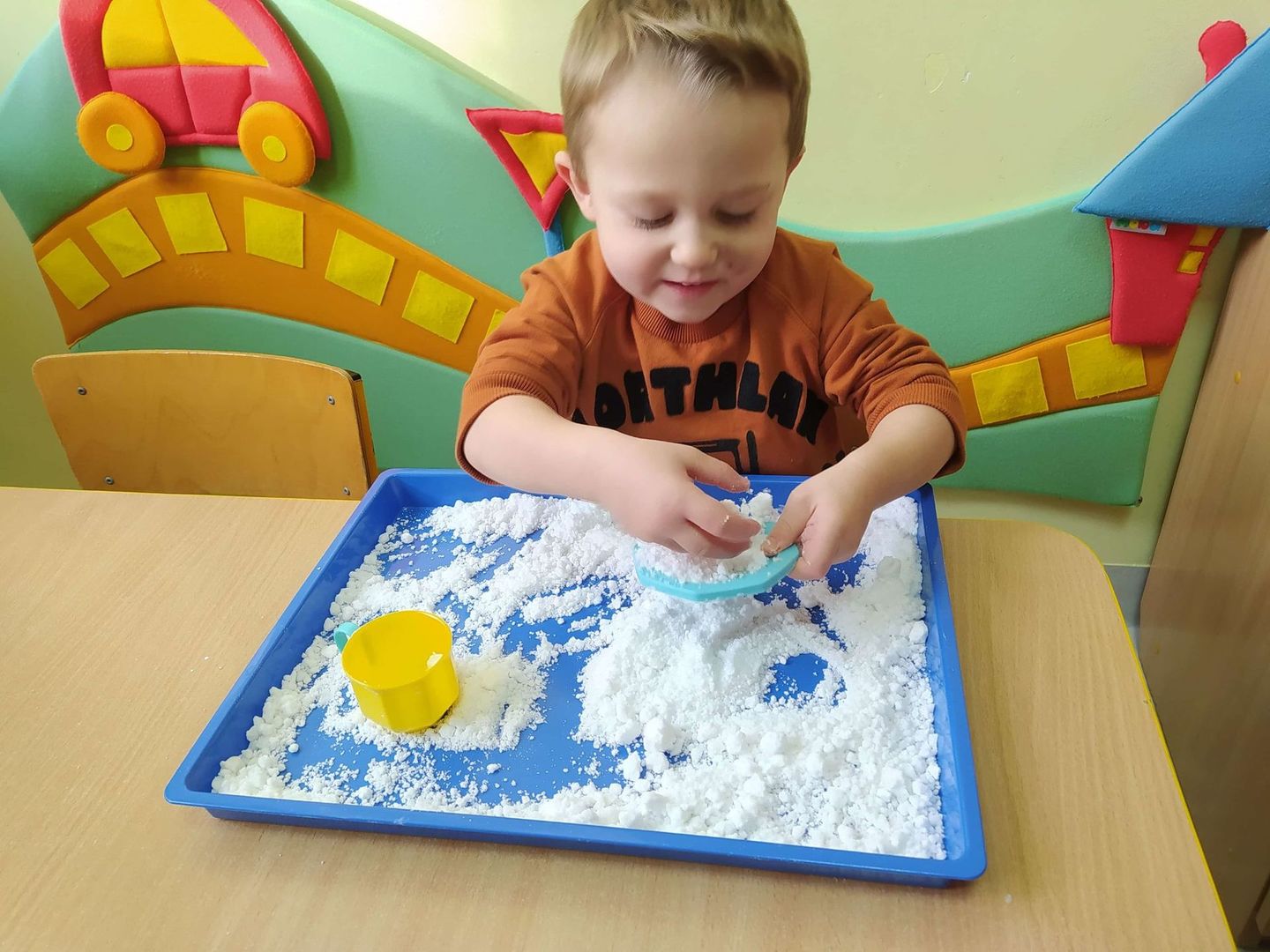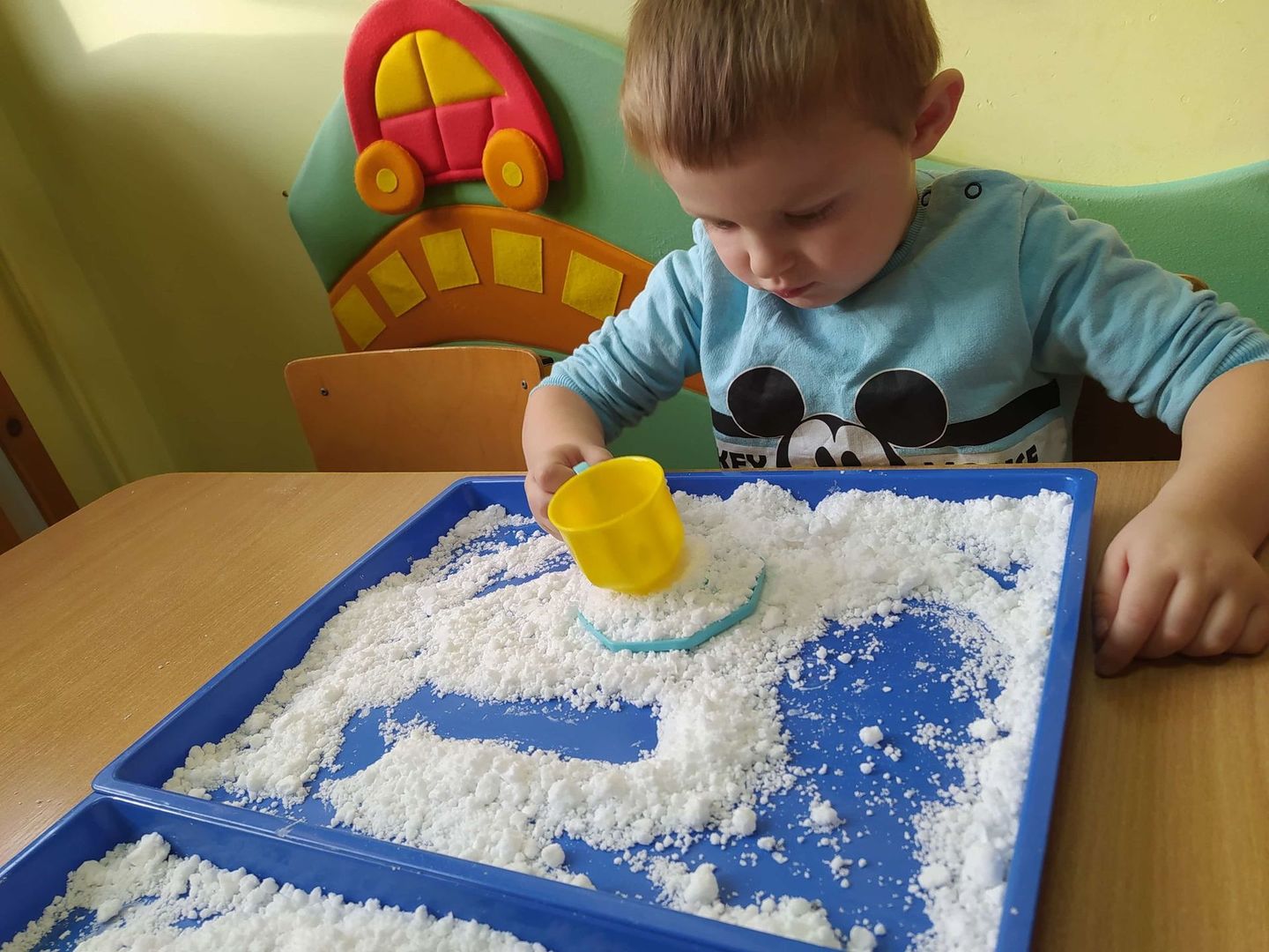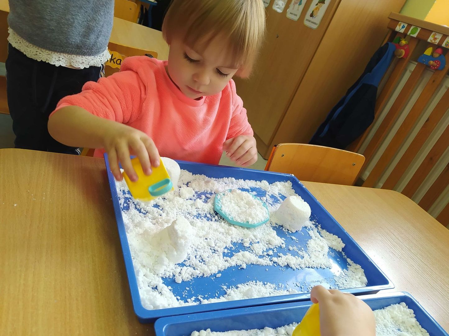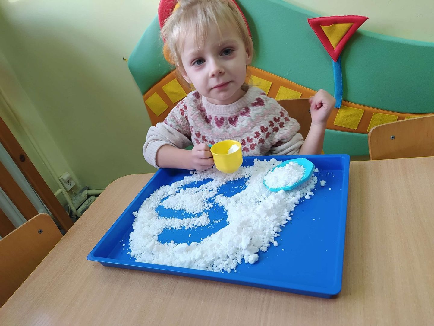 W tym tygodniu dzieci z grupy Smerfy z racji omawianej tematyki „Nadchodzi zima" wykonały przepiękną pracę plastyczną „Bałwanki” z rolek papierowych oraz za pomocą „magicznego” palca zanurzonego w farbie, stemplowały śnieg . Brały udział w wielu zabawach poświęconym zbliżającej się dużymi krokami porze roku – zimie: tańczyły z bibułowymi wstążkami, odbywały niezwykłą przeprawę do Krainy Zimy, a też bawiły się sztucznym śniegiem zrobionym z mąki ziemniaczanej i wody. Przy użyciu kostki atmosferycznej utrwalały informacje na temat poszczególnych pór roku. Jednak nie obyło się również bez „ciężkiej” pracy , a mianowicie wykonywania kart pracy, poznania figur geometrycznych, a także podstaw kodowania. Smerfy dowiedziały się również do czego służy kalendarz adwentowy, dzięki któremu od 01.12 wspólnie odliczamy dni do przyjścia Świętego Mikołaja. :) Nie zapomnieliśmy, także jak ważne jest dotlenianie organizmu dlatego też odwiedziliśmy przedszkolny plac zabaw.