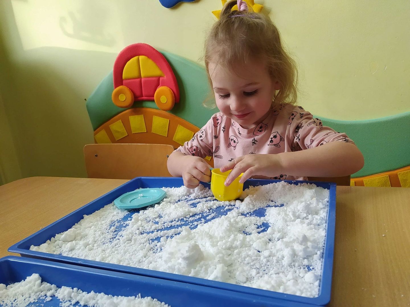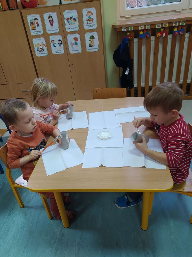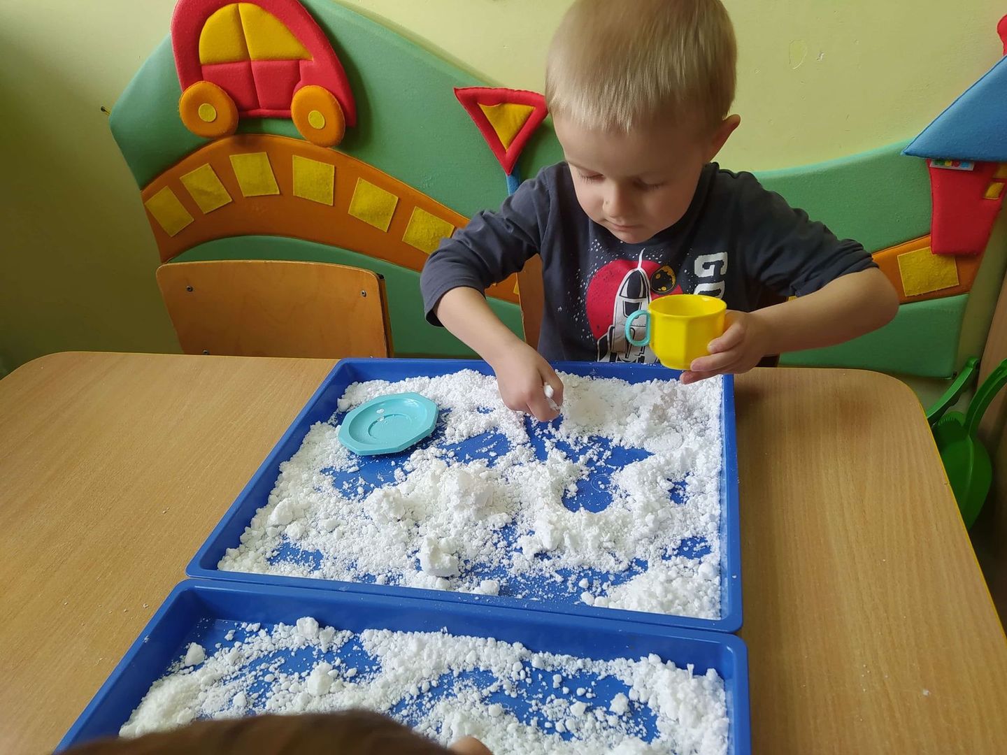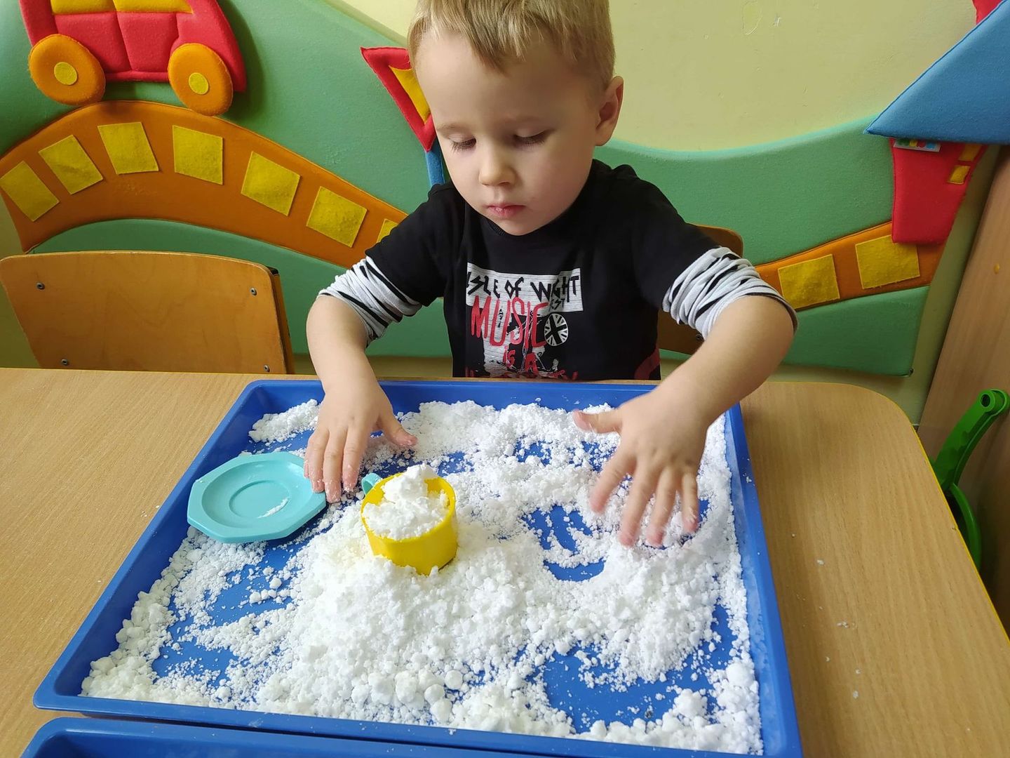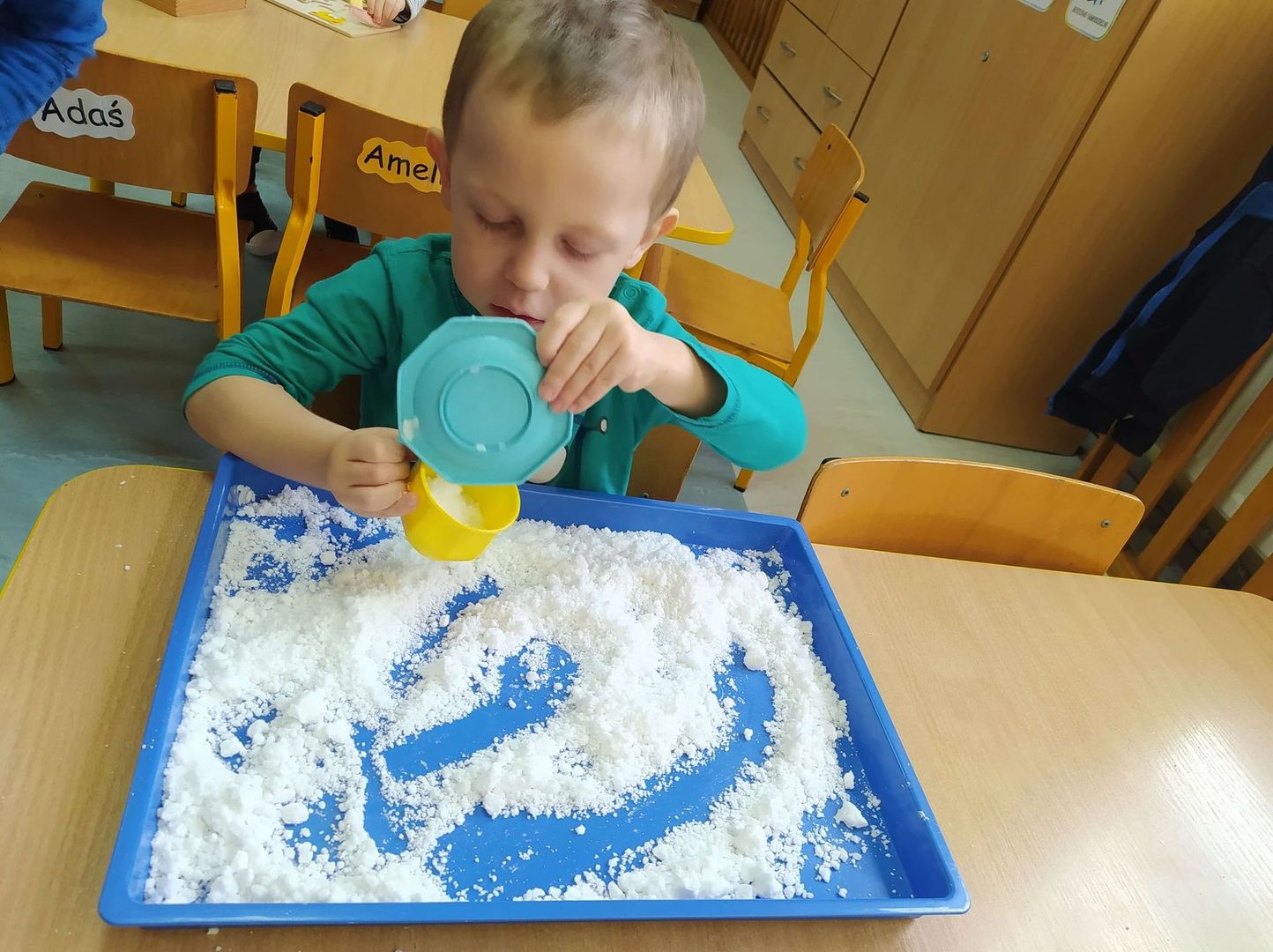 W tym tygodniu dzieci z grupy Smerfy z racji omawianej tematyki „Nadchodzi zima" wykonały przepiękną pracę plastyczną „Bałwanki” z rolek papierowych oraz za pomocą „magicznego” palca zanurzonego w farbie, stemplowały śnieg . Brały udział w wielu zabawach poświęconym zbliżającej się dużymi krokami porze roku – zimie: tańczyły z bibułowymi wstążkami, odbywały niezwykłą przeprawę do Krainy Zimy, a też bawiły się sztucznym śniegiem zrobionym z mąki ziemniaczanej i wody. Przy użyciu kostki atmosferycznej utrwalały informacje na temat poszczególnych pór roku. Jednak nie obyło się również bez „ciężkiej” pracy , a mianowicie wykonywania kart pracy, poznania figur geometrycznych, a także podstaw kodowania. Smerfy dowiedziały się również do czego służy kalendarz adwentowy, dzięki któremu od 01.12 wspólnie odliczamy dni do przyjścia Świętego Mikołaja. :) Nie zapomnieliśmy, także jak ważne jest dotlenianie organizmu dlatego też odwiedziliśmy przedszkolny plac zabaw.