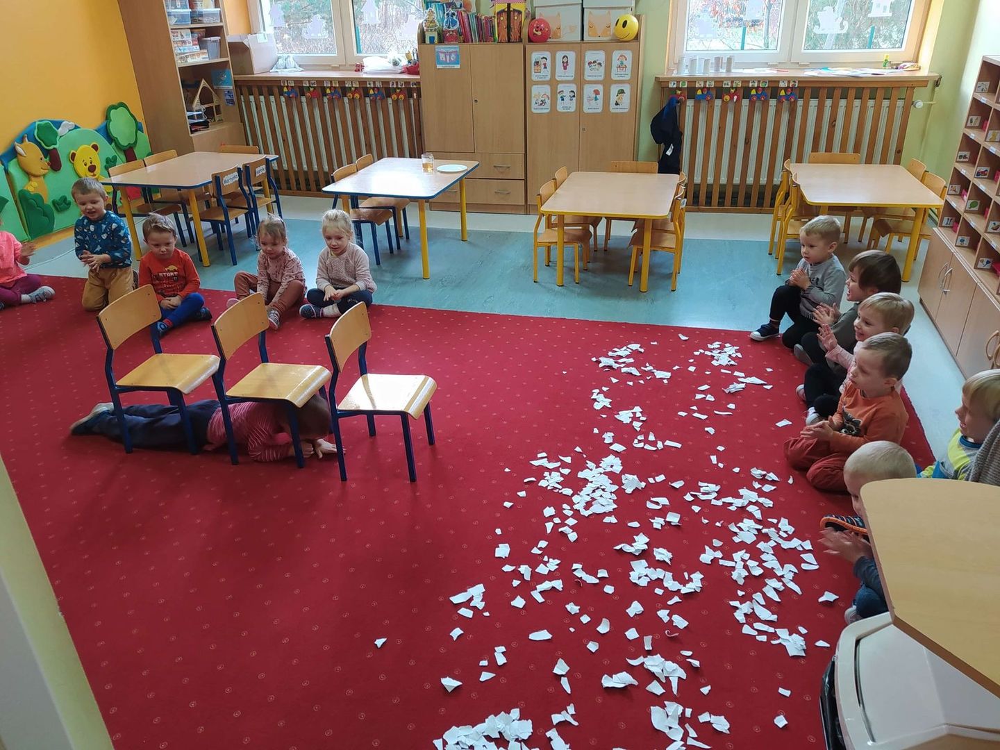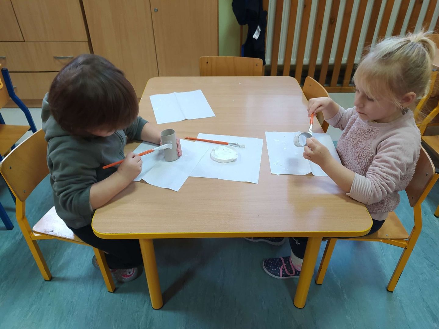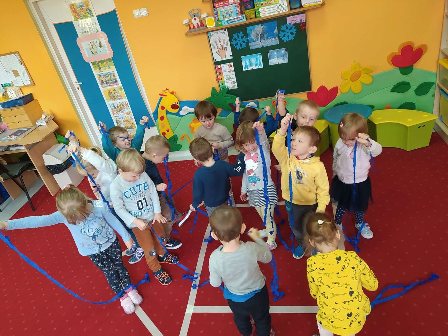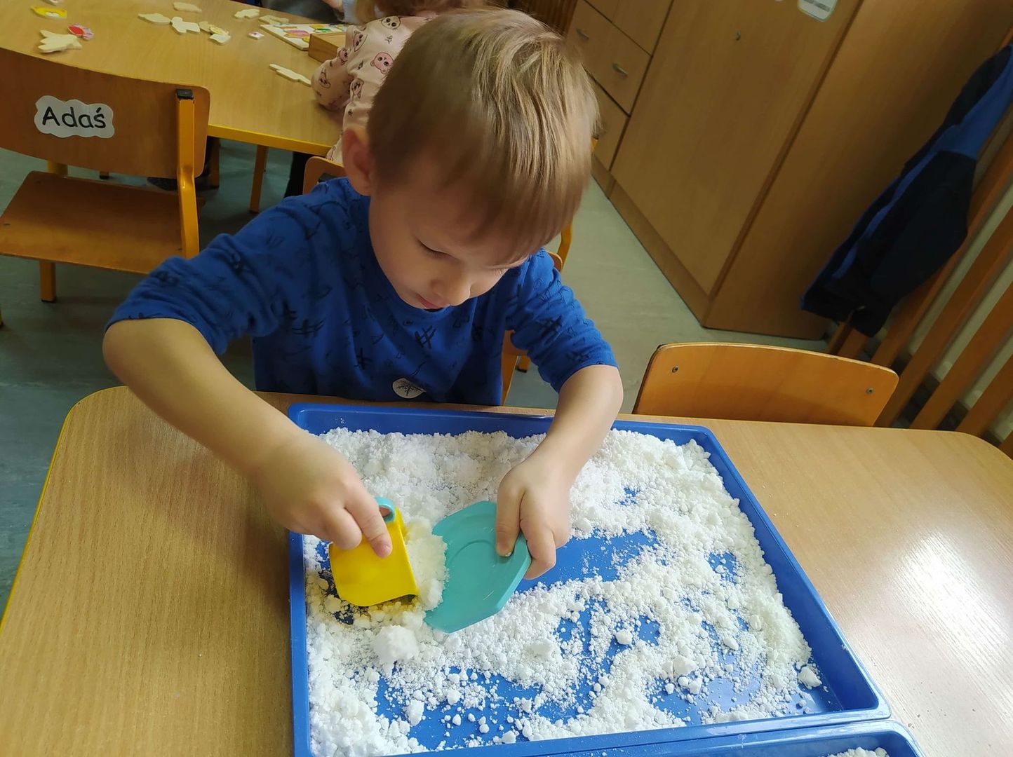 W tym tygodniu dzieci z grupy Smerfy z racji omawianej tematyki „Nadchodzi zima" wykonały przepiękną pracę plastyczną „Bałwanki” z rolek papierowych oraz za pomocą „magicznego” palca zanurzonego w farbie, stemplowały śnieg . Brały udział w wielu zabawach poświęconym zbliżającej się dużymi krokami porze roku – zimie: tańczyły z bibułowymi wstążkami, odbywały niezwykłą przeprawę do Krainy Zimy, a też bawiły się sztucznym śniegiem zrobionym z mąki ziemniaczanej i wody. Przy użyciu kostki atmosferycznej utrwalały informacje na temat poszczególnych pór roku. Jednak nie obyło się również bez „ciężkiej” pracy , a mianowicie wykonywania kart pracy, poznania figur geometrycznych, a także podstaw kodowania. Smerfy dowiedziały się również do czego służy kalendarz adwentowy, dzięki któremu od 01.12 wspólnie odliczamy dni do przyjścia Świętego Mikołaja. :) Nie zapomnieliśmy, także jak ważne jest dotlenianie organizmu dlatego też odwiedziliśmy przedszkolny plac zabaw.