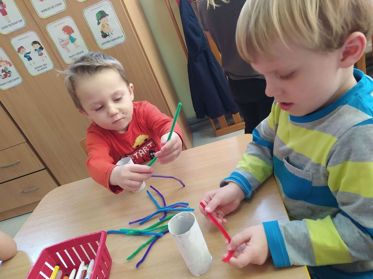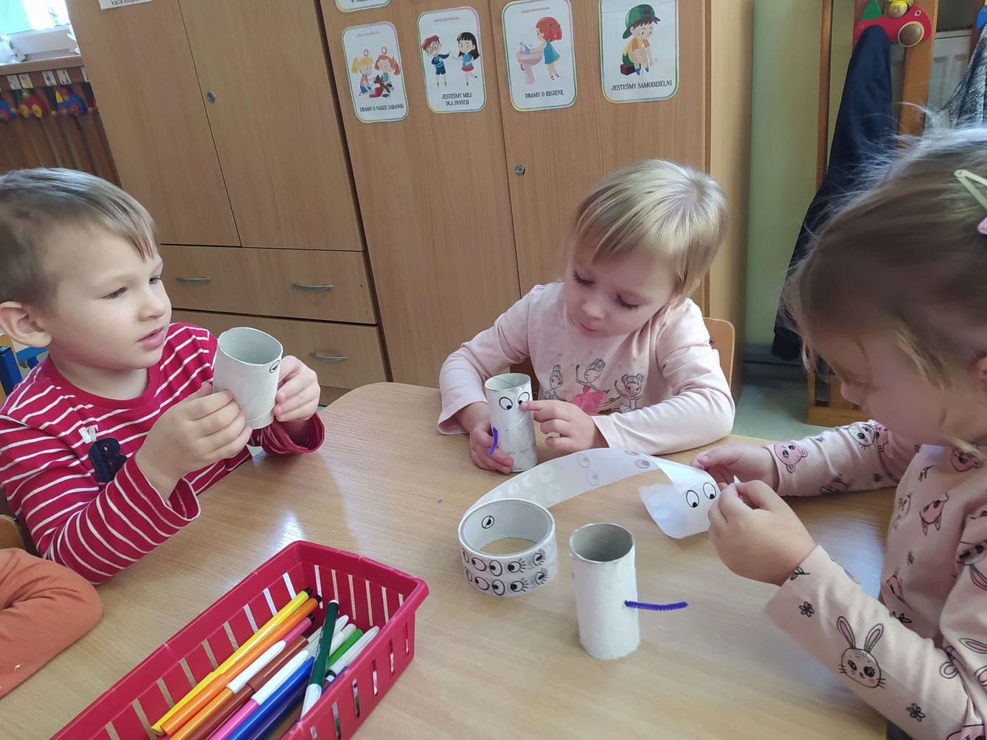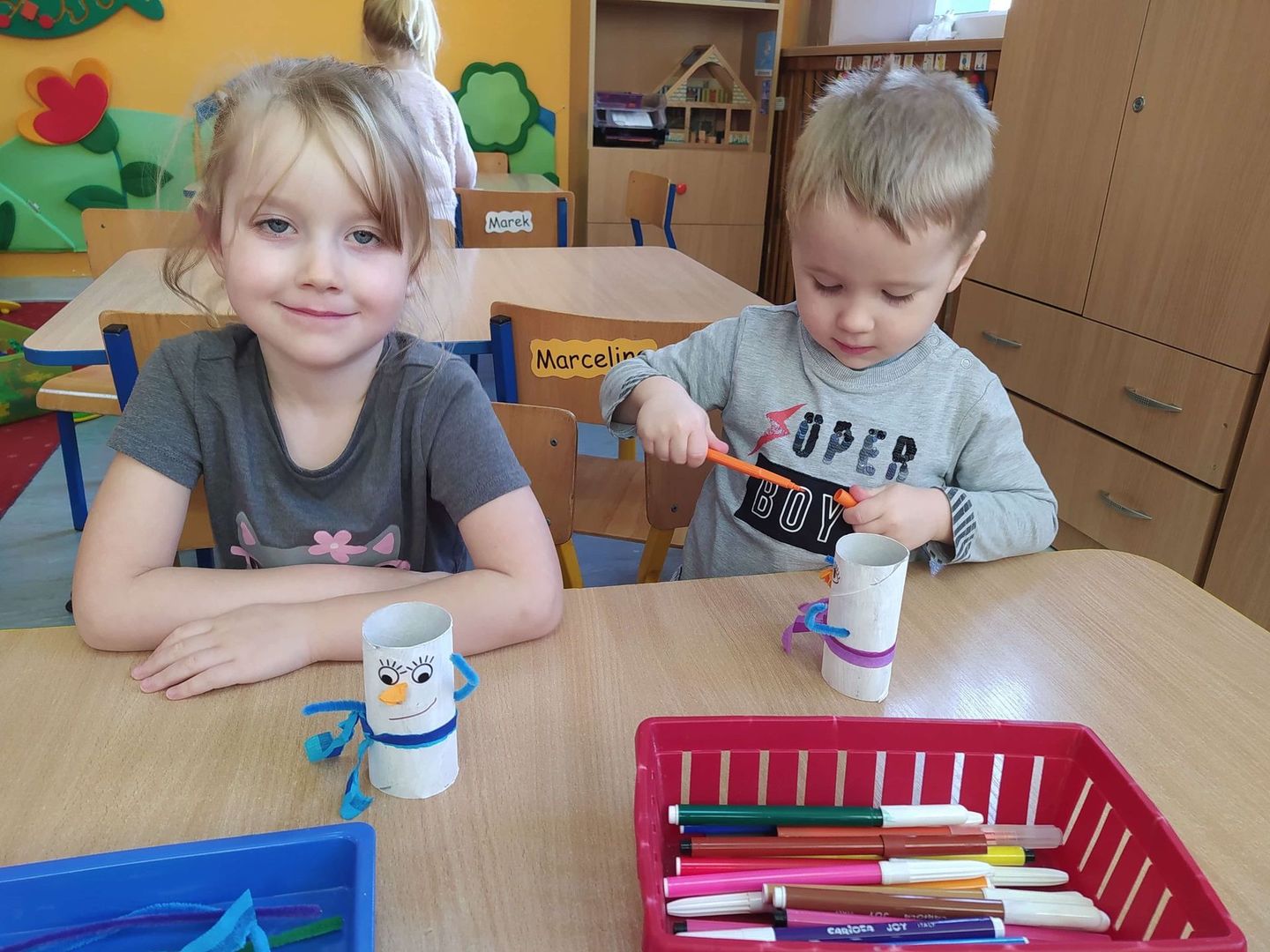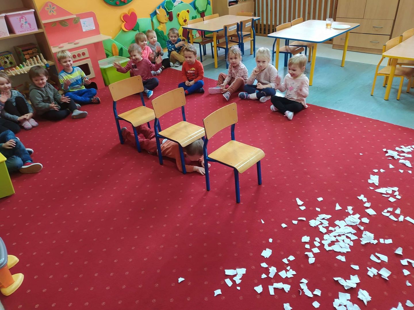 W tym tygodniu dzieci z grupy Smerfy z racji omawianej tematyki „Nadchodzi zima" wykonały przepiękną pracę plastyczną „Bałwanki” z rolek papierowych oraz za pomocą „magicznego” palca zanurzonego w farbie, stemplowały śnieg . Brały udział w wielu zabawach poświęconym zbliżającej się dużymi krokami porze roku – zimie: tańczyły z bibułowymi wstążkami, odbywały niezwykłą przeprawę do Krainy Zimy, a też bawiły się sztucznym śniegiem zrobionym z mąki ziemniaczanej i wody. Przy użyciu kostki atmosferycznej utrwalały informacje na temat poszczególnych pór roku. Jednak nie obyło się również bez „ciężkiej” pracy , a mianowicie wykonywania kart pracy, poznania figur geometrycznych, a także podstaw kodowania. Smerfy dowiedziały się również do czego służy kalendarz adwentowy, dzięki któremu od 01.12 wspólnie odliczamy dni do przyjścia Świętego Mikołaja. :) Nie zapomnieliśmy, także jak ważne jest dotlenianie organizmu dlatego też odwiedziliśmy przedszkolny plac zabaw.