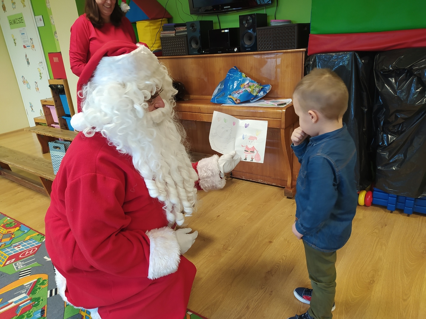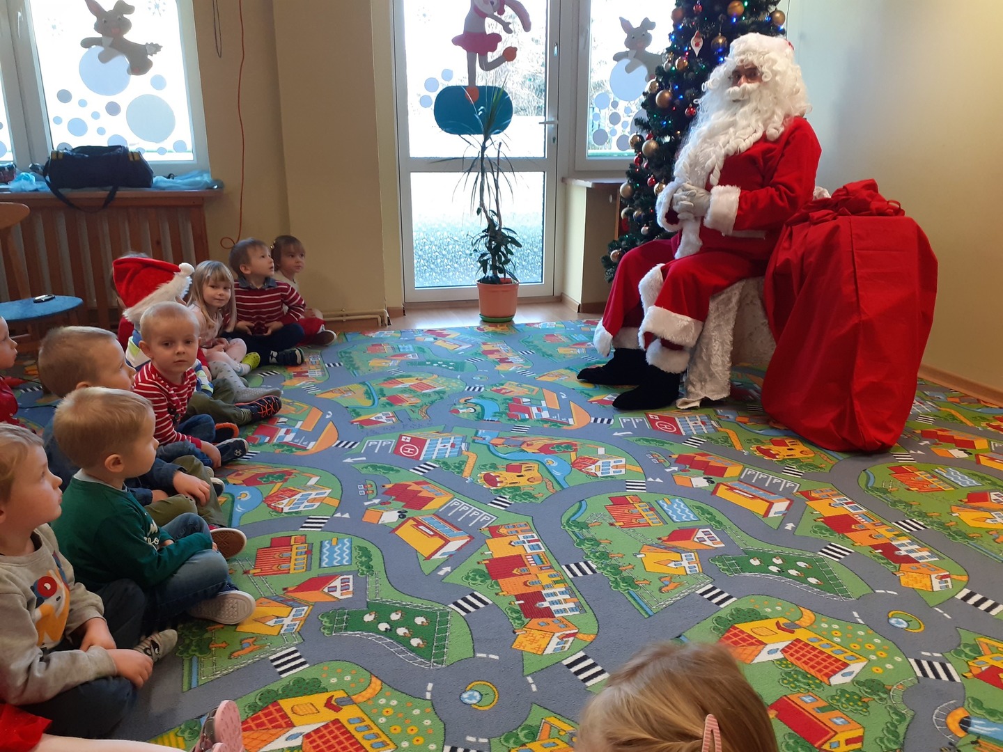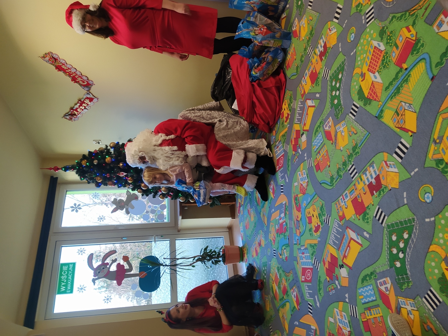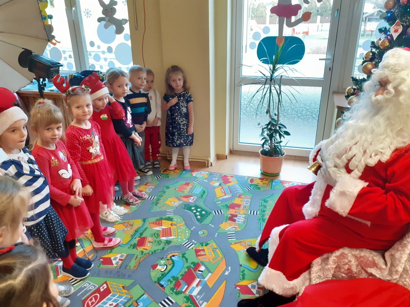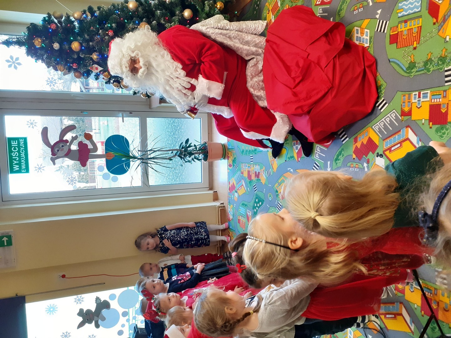 Wszystkie grupy bardzo serdecznie przyjęły Świętego Mikołaja obdarowując go laurkami, piosenkami i wierszykami. Miło spędzony czas upłynął na wykonaniu zdjęć oraz wręczeniu dzieciom paczek z prezentami. Na koniec wizyty życzliwy i sympatyczny Mikołaj nie zapomniał o złożeniu obietnicy, że odwiedzi nas za rok.
