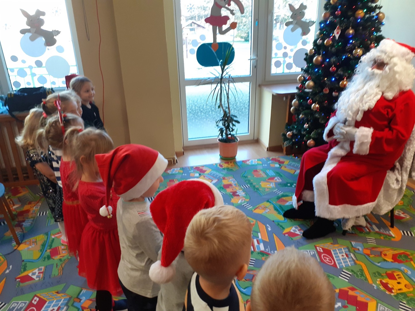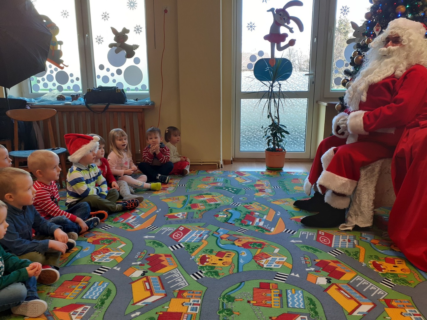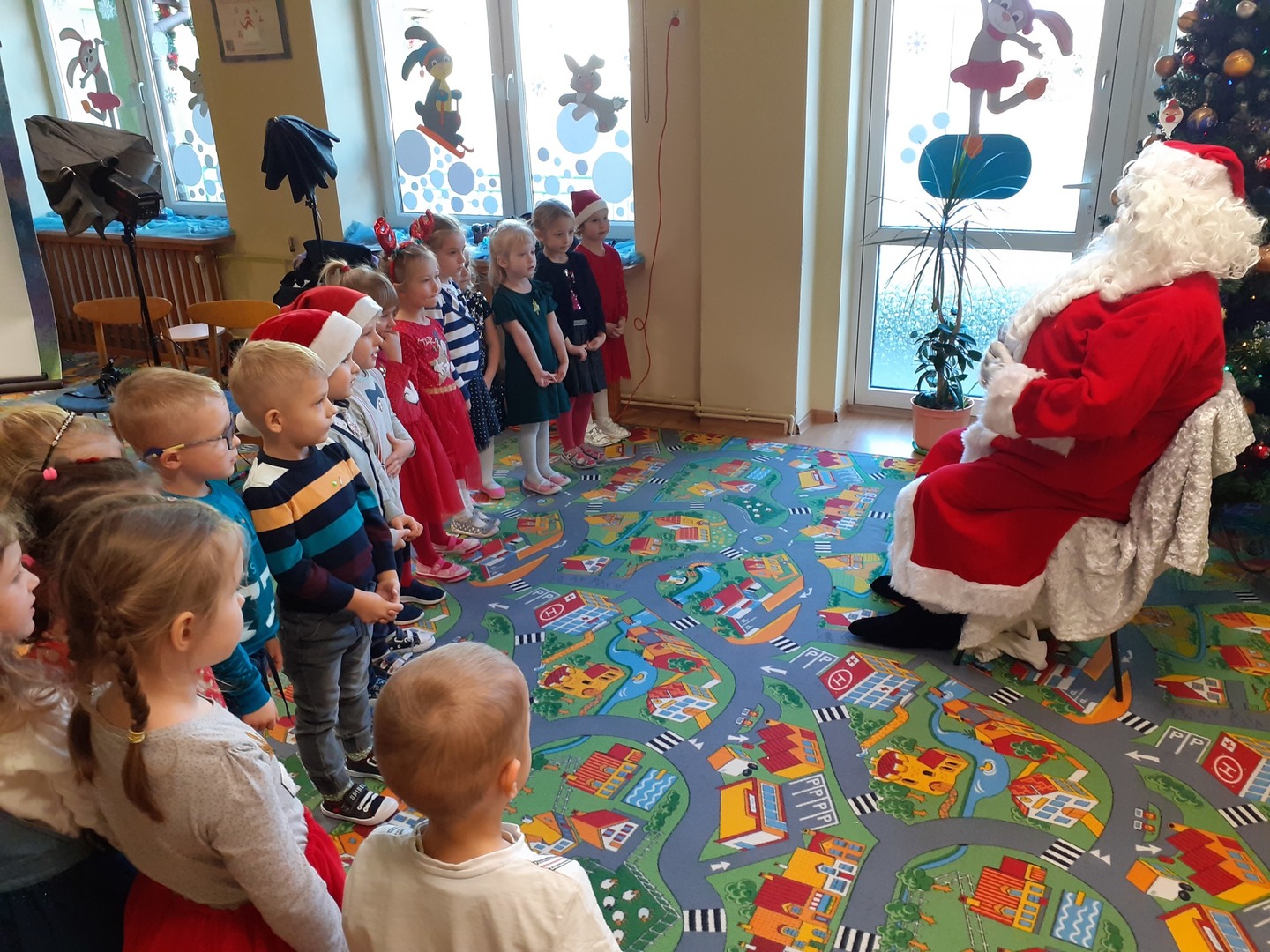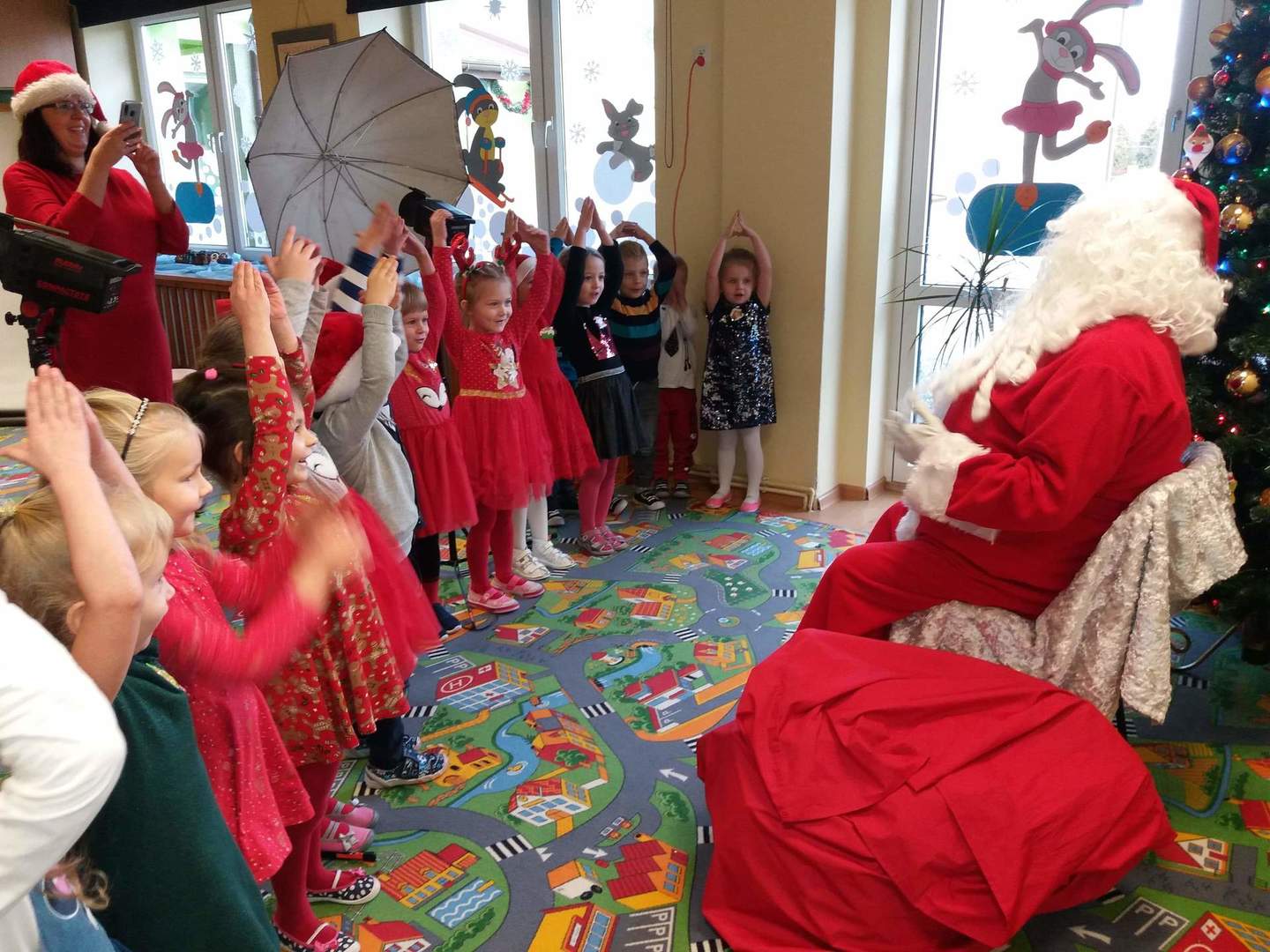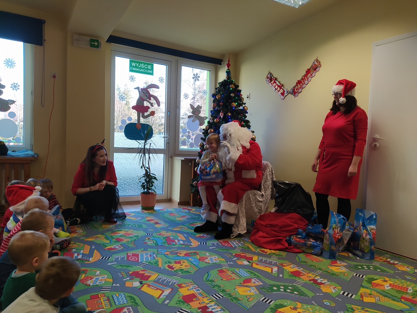 Wszystkie grupy bardzo serdecznie przyjęły Świętego Mikołaja obdarowując go laurkami, piosenkami i wierszykami. Miło spędzony czas upłynął na wykonaniu zdjęć oraz wręczeniu dzieciom paczek z prezentami. Na koniec wizyty życzliwy i sympatyczny Mikołaj nie zapomniał o złożeniu obietnicy, że odwiedzi nas za rok.