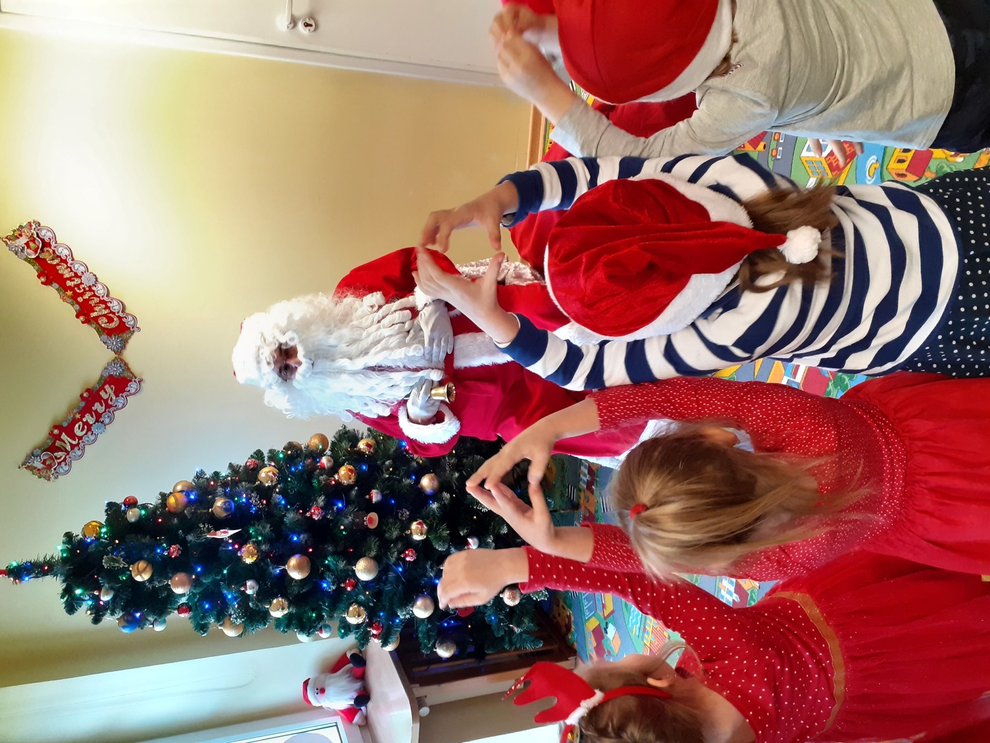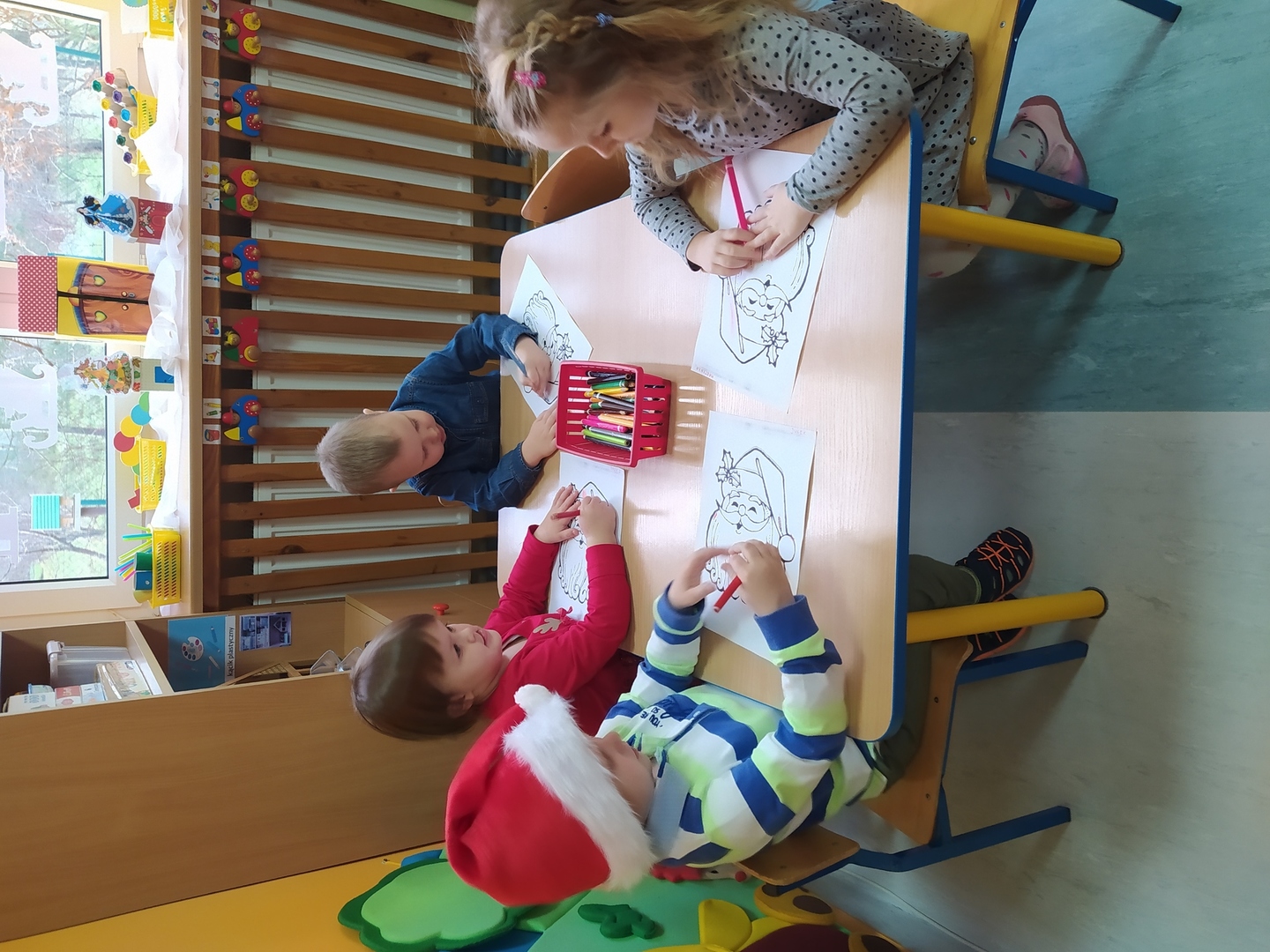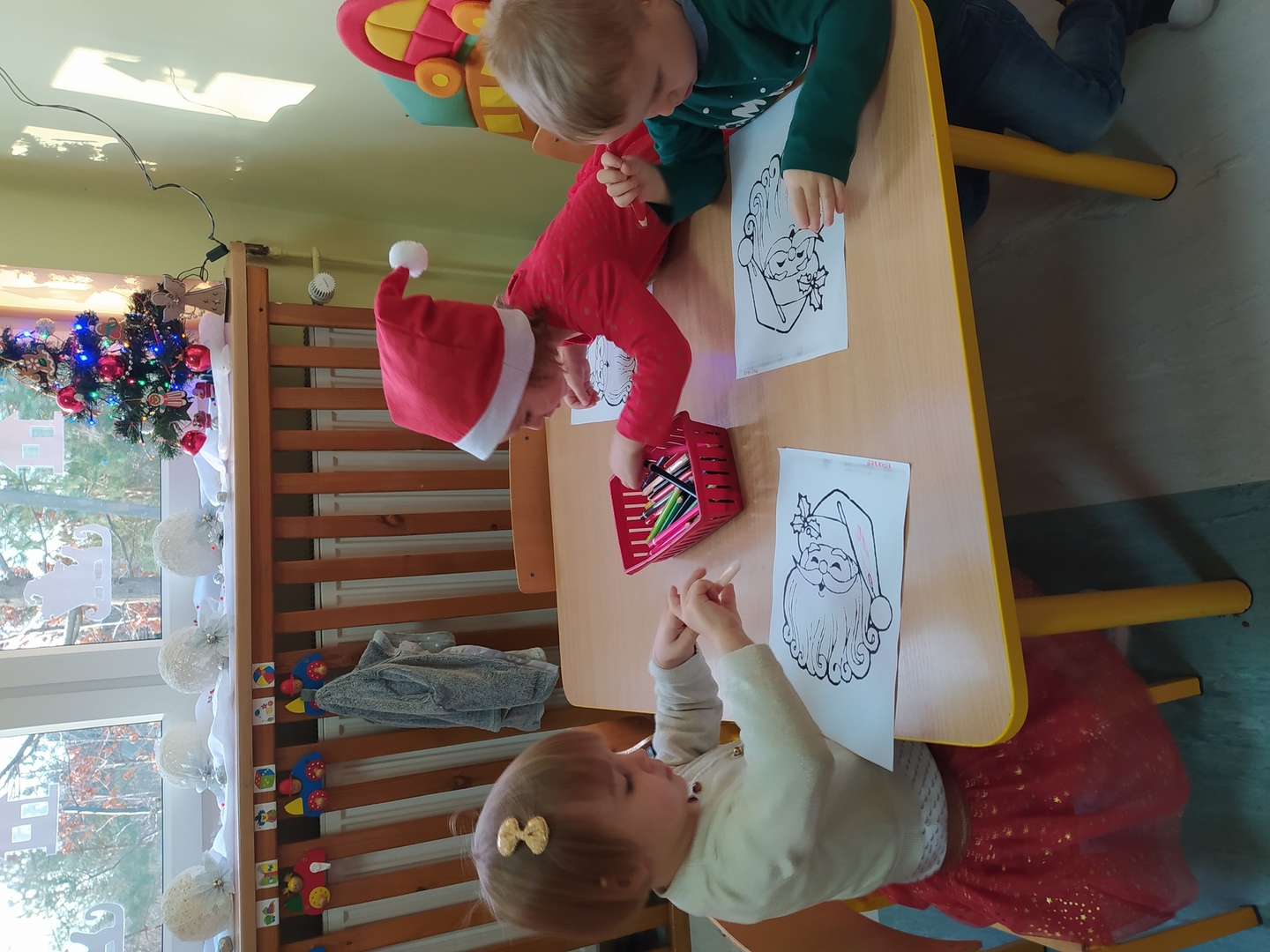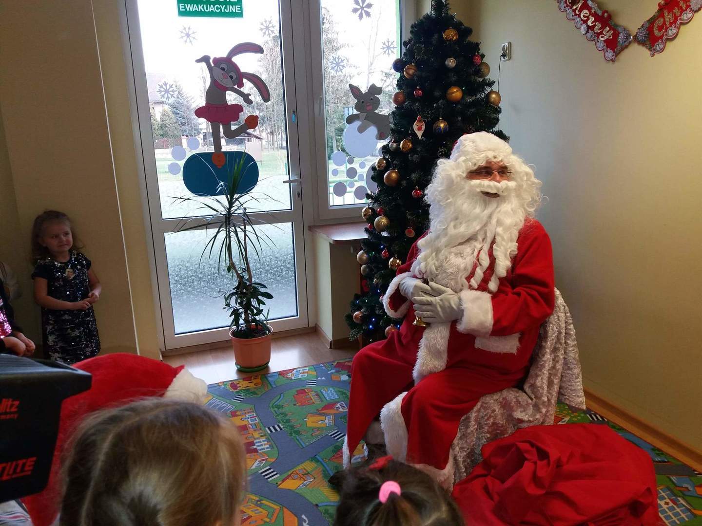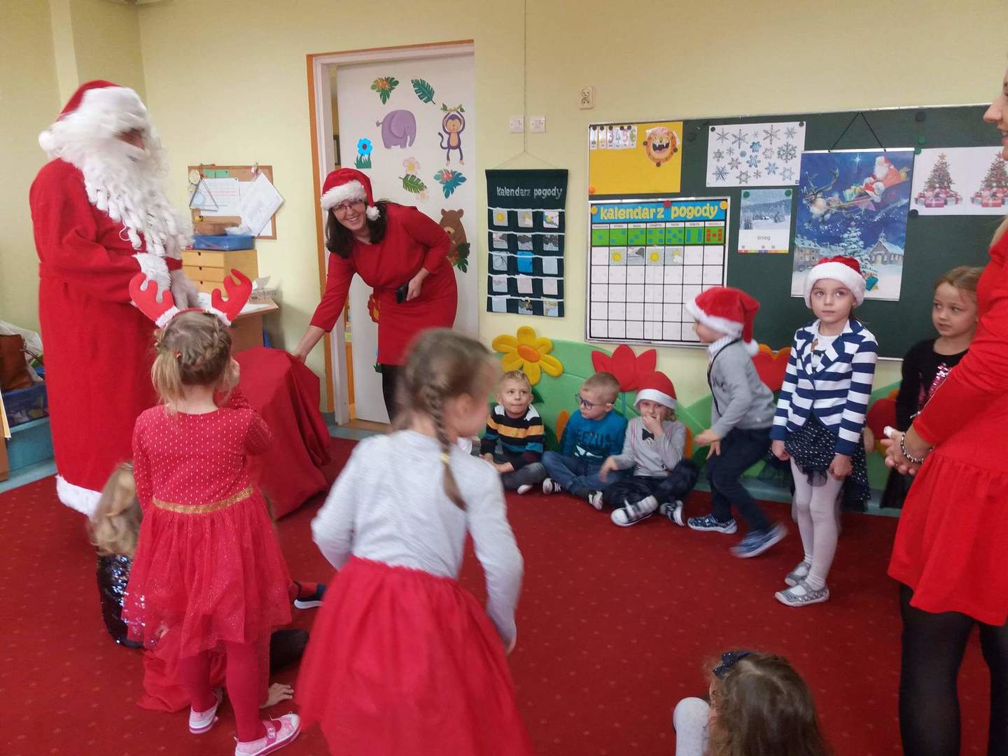 Wszystkie grupy bardzo serdecznie przyjęły Świętego Mikołaja obdarowując go laurkami, piosenkami i wierszykami. Miło spędzony czas upłynął na wykonaniu zdjęć oraz wręczeniu dzieciom paczek z prezentami. Na koniec wizyty życzliwy i sympatyczny Mikołaj nie zapomniał o złożeniu obietnicy, że odwiedzi nas za rok.