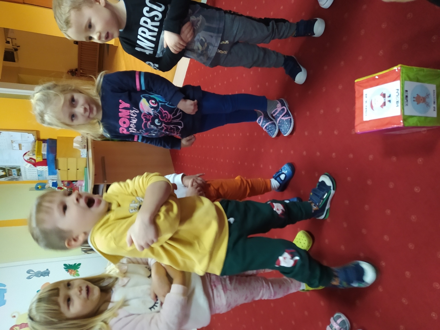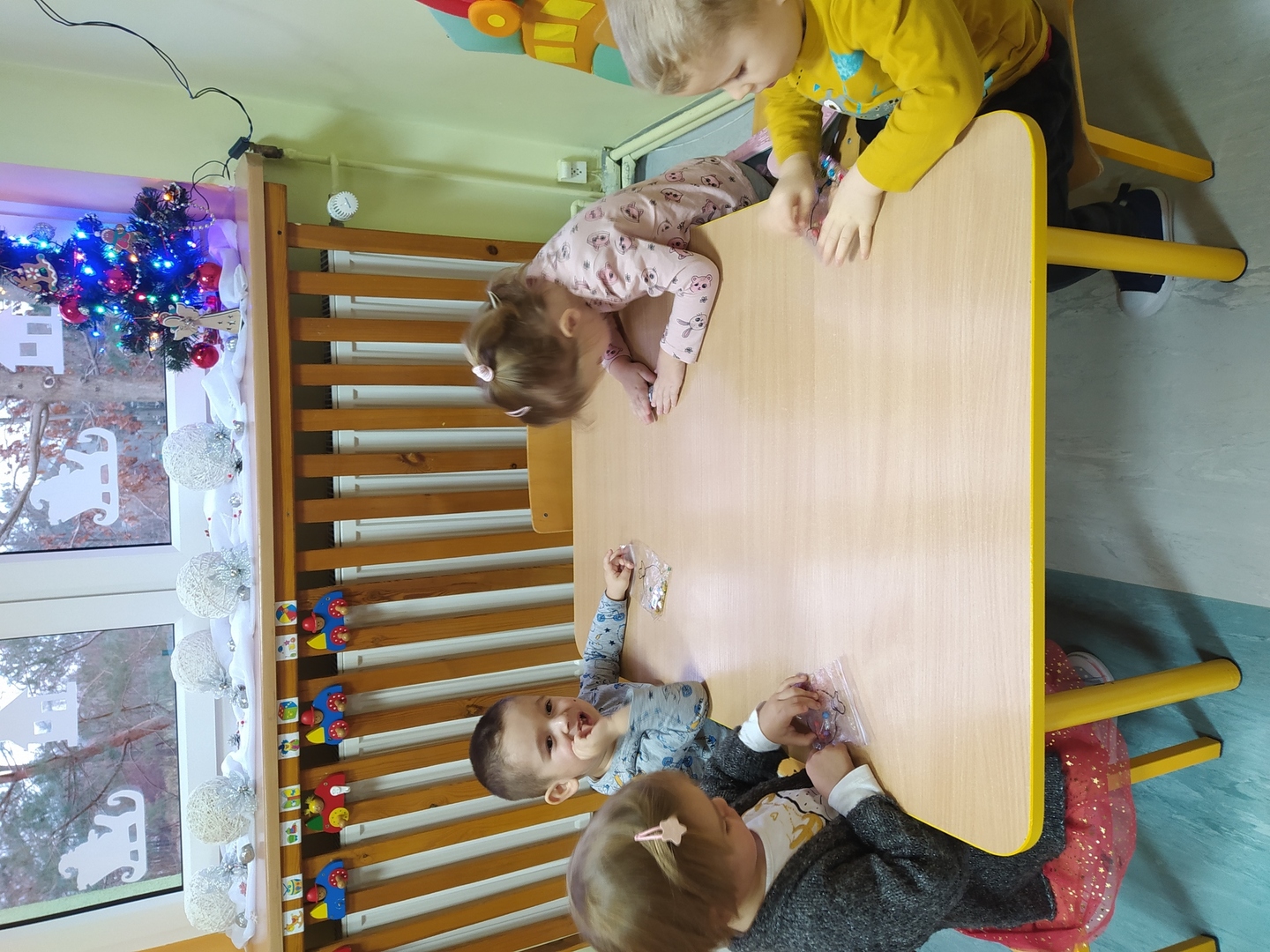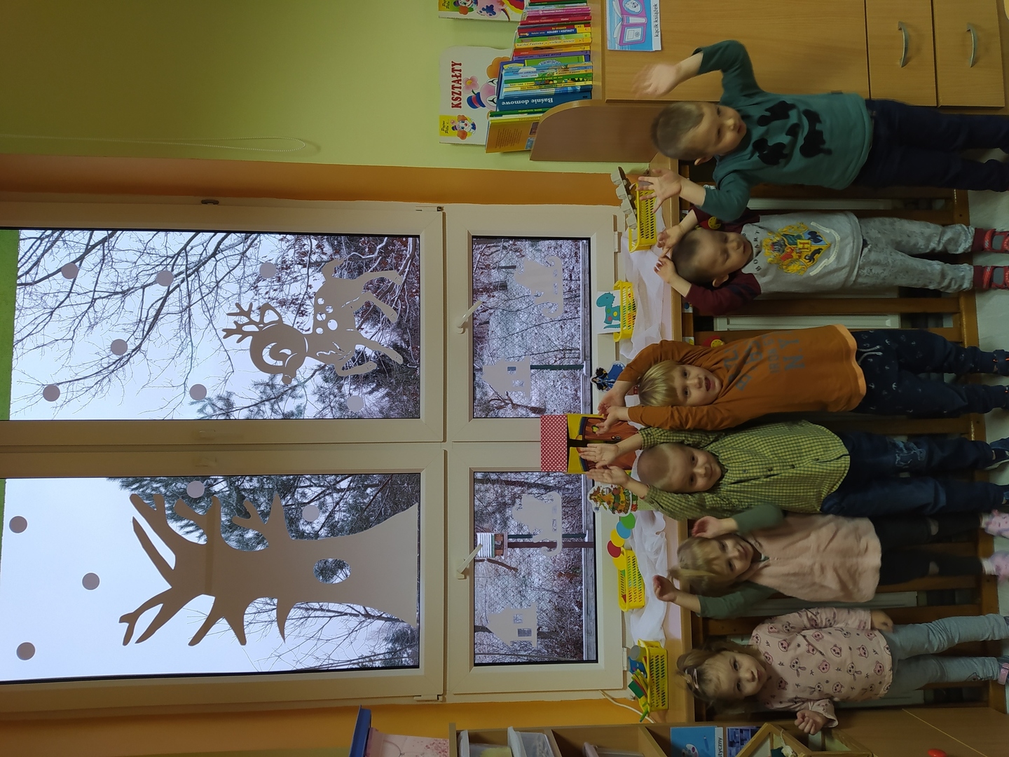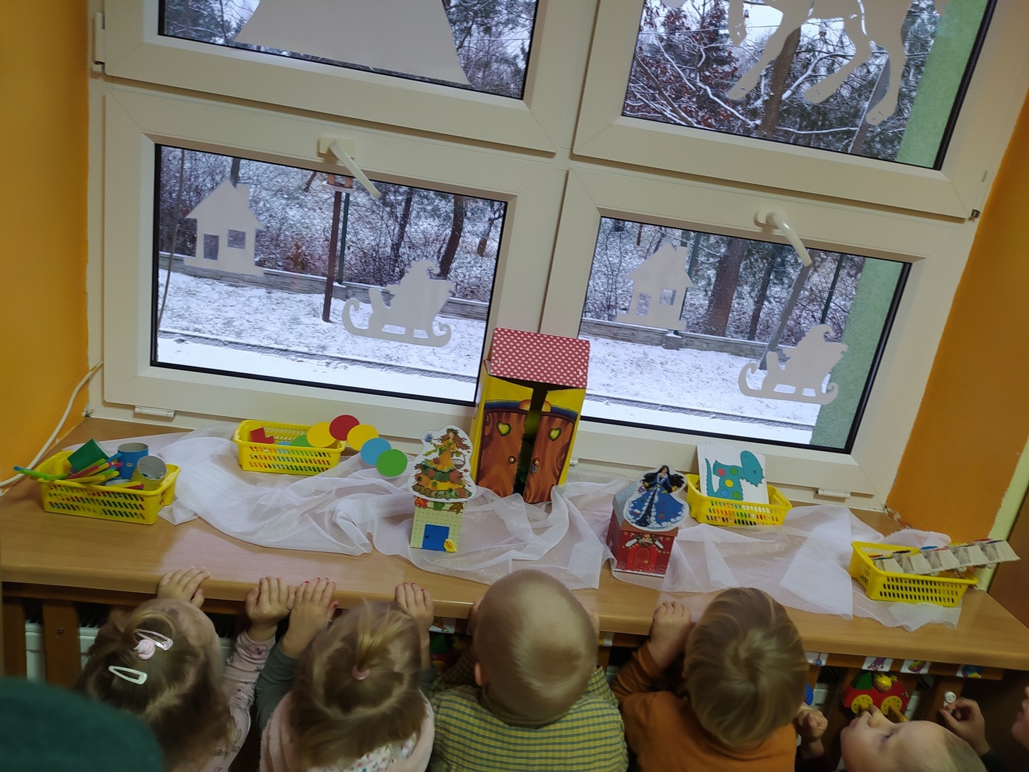 Hurrrraaaaaaaa!!! Już jest! W tym tygodniu do naszej sali zawitała nowa pora roku - zima. Rozgościła się ona na oknach, a następnie zamieszkała w swoim domku na parapecie, obok domku żabki Polly i Pani Jesieni. Jakby tego było mało, przyniosła nam ze sobą własnoręcznie przygotowane zabawki do utrwalania nazw kolorów oraz ćwiczenia sprawności paluszków. Już od pierwszych chwil polubiliśmy się z Panią Zimą. Co prawda sprawiła że na dworze zrobiło się zimniej, ale to dzięki Niej dowiedzieliśmy się wielu nowych rzeczy: jak dbać zimą o czworonożnych pupili, jak samodzielnie zrobić pokarm dla ptaków, jak wygląda i nazywa się zimowy domek dla ptaków, jak powstaje lód i jak należy bezpiecznie się nim bawić. Ze względu na zbliżające się Święta Bożego Narodzenia nie zabrakło też związanych z nimi akcentów, w postaci nowych zabaw ruchowych oraz plastycznych. A w między czasie troje dzieci z naszej grupy wykonało prace plastyczne na gminny konkurs plastyczny. Brawo pracowite Smerfiki!