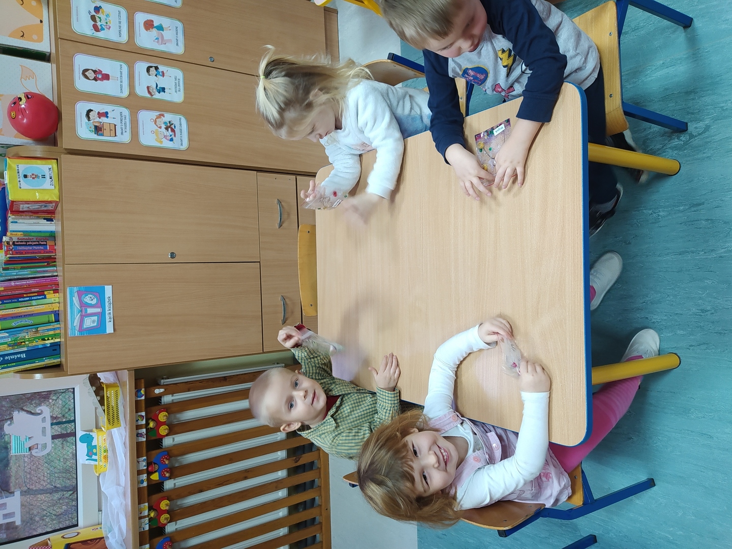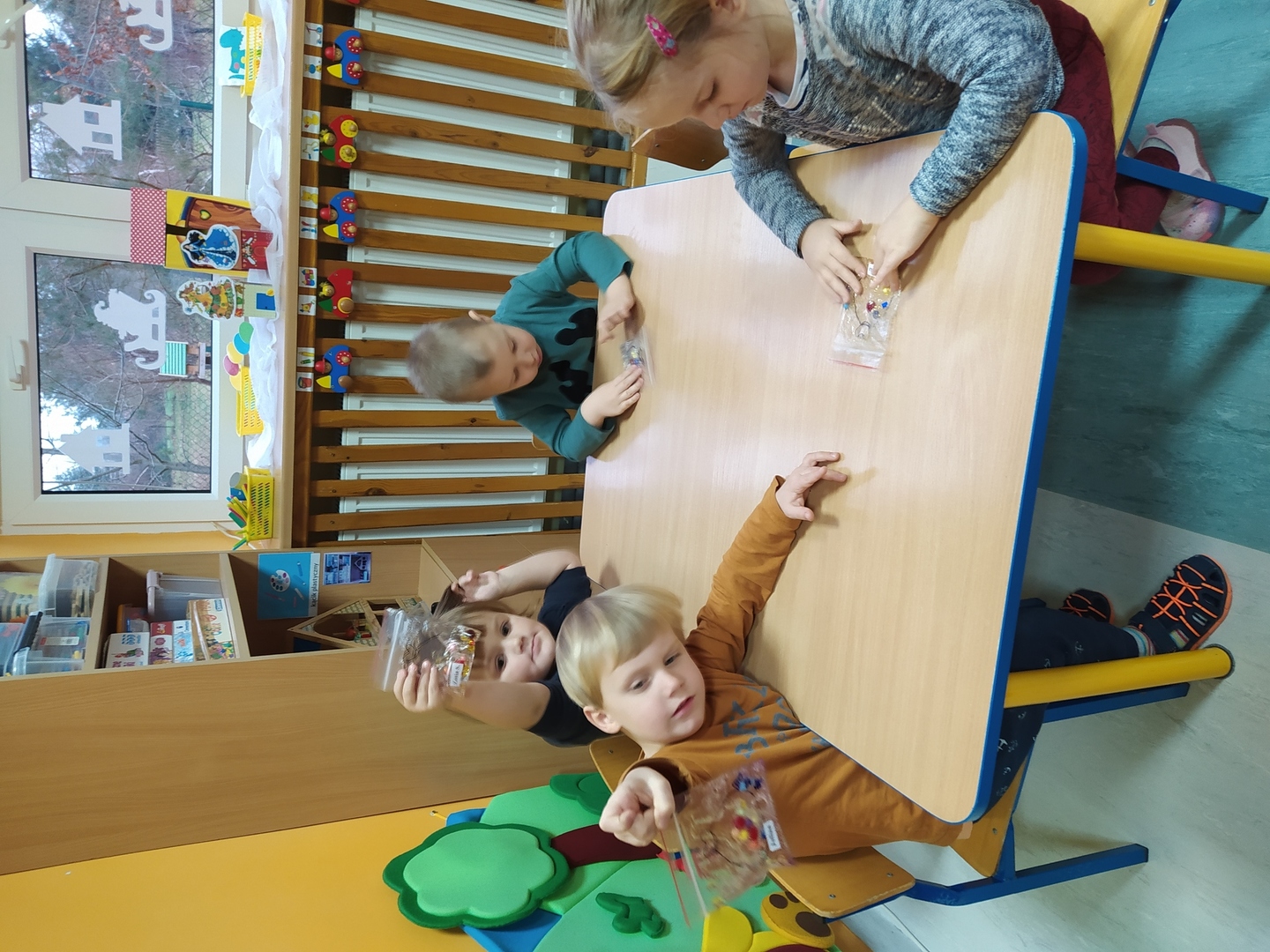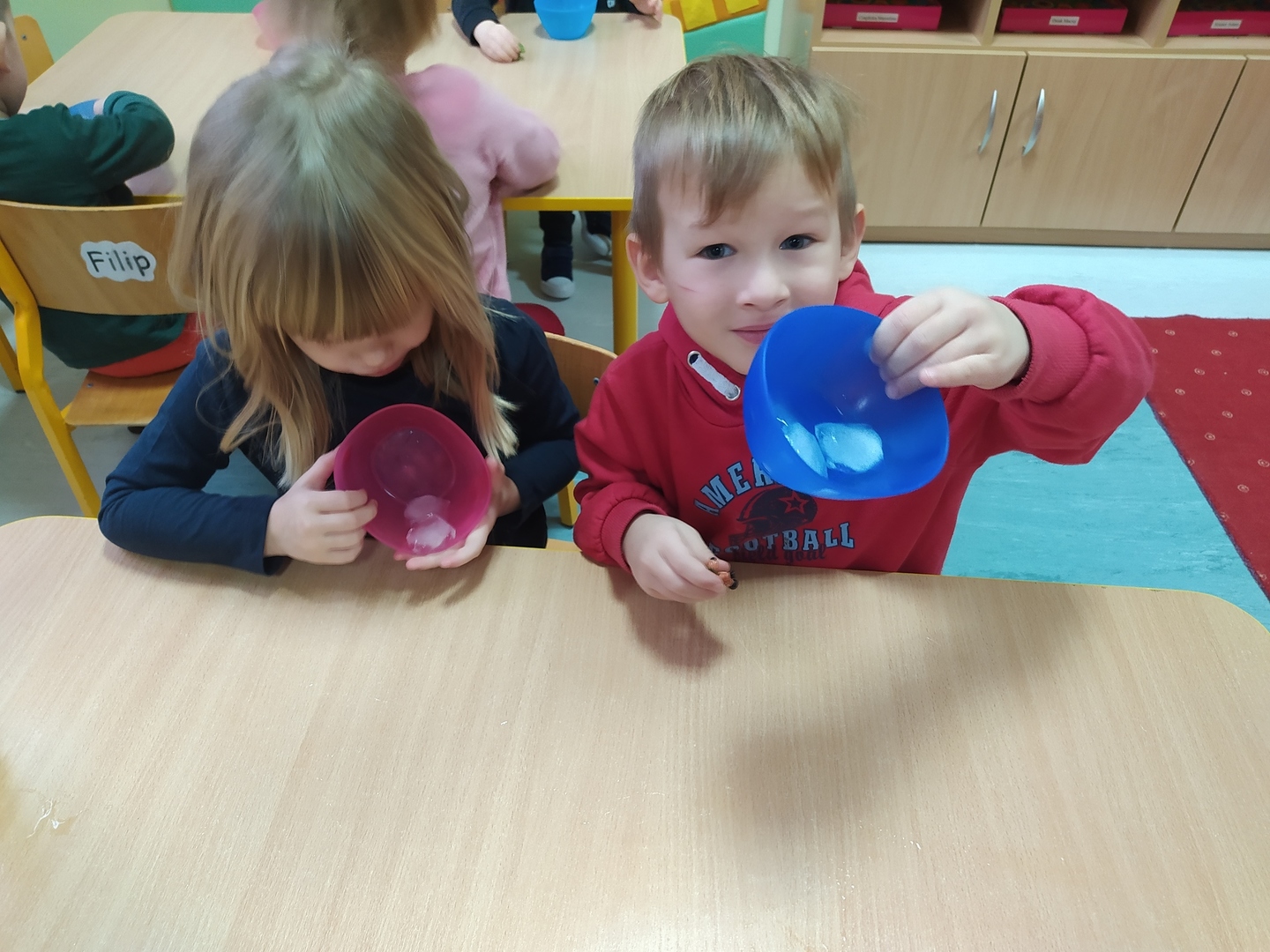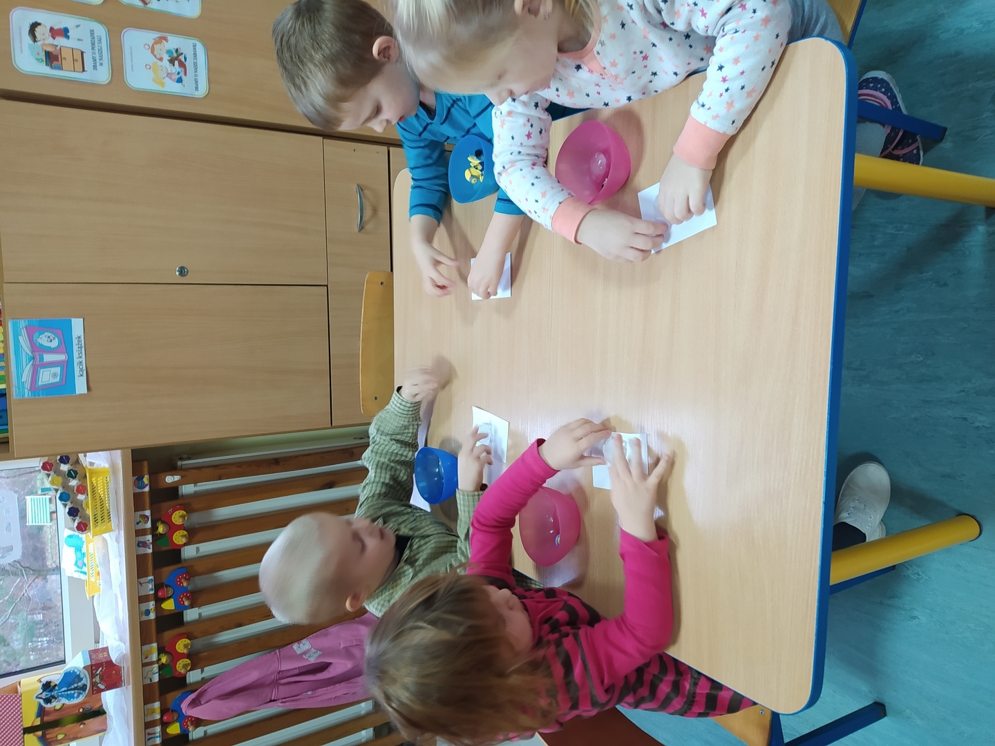 Hurrrraaaaaaaa!!! Już jest! W tym tygodniu do naszej sali zawitała nowa pora roku - zima. Rozgościła się ona na oknach, a następnie zamieszkała w swoim domku na parapecie, obok domku żabki Polly i Pani Jesieni. Jakby tego było mało, przyniosła nam ze sobą własnoręcznie przygotowane zabawki do utrwalania nazw kolorów oraz ćwiczenia sprawności paluszków. Już od pierwszych chwil polubiliśmy się z Panią Zimą. Co prawda sprawiła że na dworze zrobiło się zimniej, ale to dzięki Niej dowiedzieliśmy się wielu nowych rzeczy: jak dbać zimą o czworonożnych pupili, jak samodzielnie zrobić pokarm dla ptaków, jak wygląda i nazywa się zimowy domek dla ptaków, jak powstaje lód i jak należy bezpiecznie się nim bawić. Ze względu na zbliżające się Święta Bożego Narodzenia nie zabrakło też związanych z nimi akcentów, w postaci nowych zabaw ruchowych oraz plastycznych. A w między czasie troje dzieci z naszej grupy wykonało prace plastyczne na gminny konkurs plastyczny. Brawo pracowite Smerfiki!