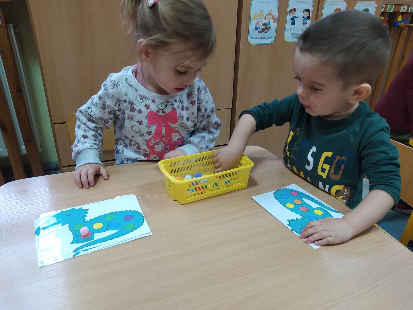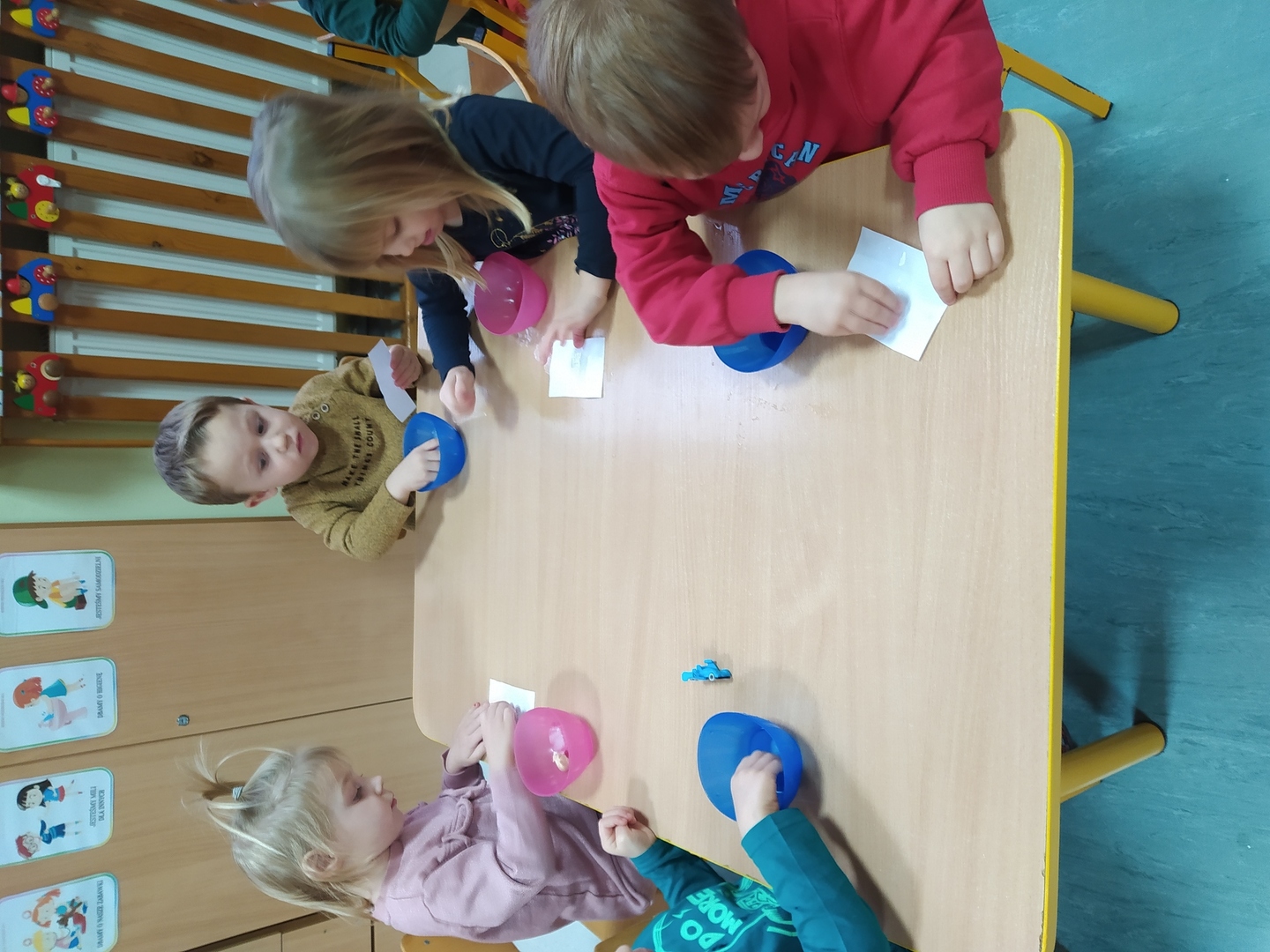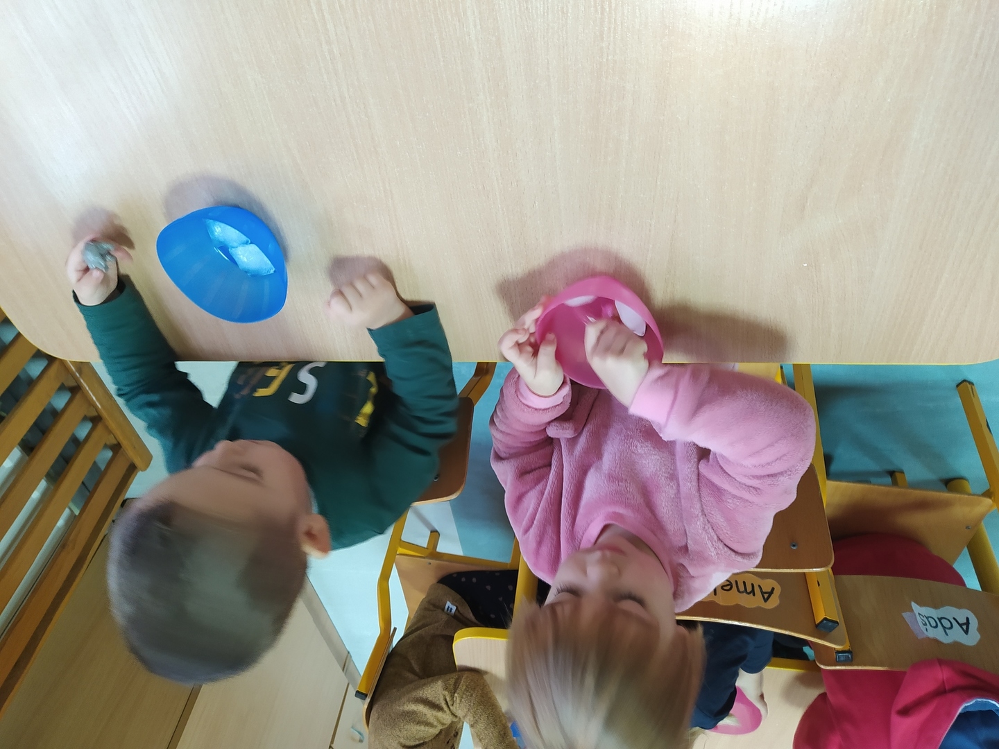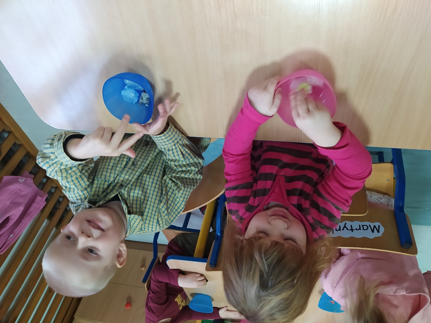 Hurrrraaaaaaaa!!! Już jest! W tym tygodniu do naszej sali zawitała nowa pora roku - zima. Rozgościła się ona na oknach, a następnie zamieszkała w swoim domku na parapecie, obok domku żabki Polly i Pani Jesieni. Jakby tego było mało, przyniosła nam ze sobą własnoręcznie przygotowane zabawki do utrwalania nazw kolorów oraz ćwiczenia sprawności paluszków. Już od pierwszych chwil polubiliśmy się z Panią Zimą. Co prawda sprawiła że na dworze zrobiło się zimniej, ale to dzięki Niej dowiedzieliśmy się wielu nowych rzeczy: jak dbać zimą o czworonożnych pupili, jak samodzielnie zrobić pokarm dla ptaków, jak wygląda i nazywa się zimowy domek dla ptaków, jak powstaje lód i jak należy bezpiecznie się nim bawić. Ze względu na zbliżające się Święta Bożego Narodzenia nie zabrakło też związanych z nimi akcentów, w postaci nowych zabaw ruchowych oraz plastycznych. A w między czasie troje dzieci z naszej grupy wykonało prace plastyczne na gminny konkurs plastyczny. Brawo pracowite Smerfiki!