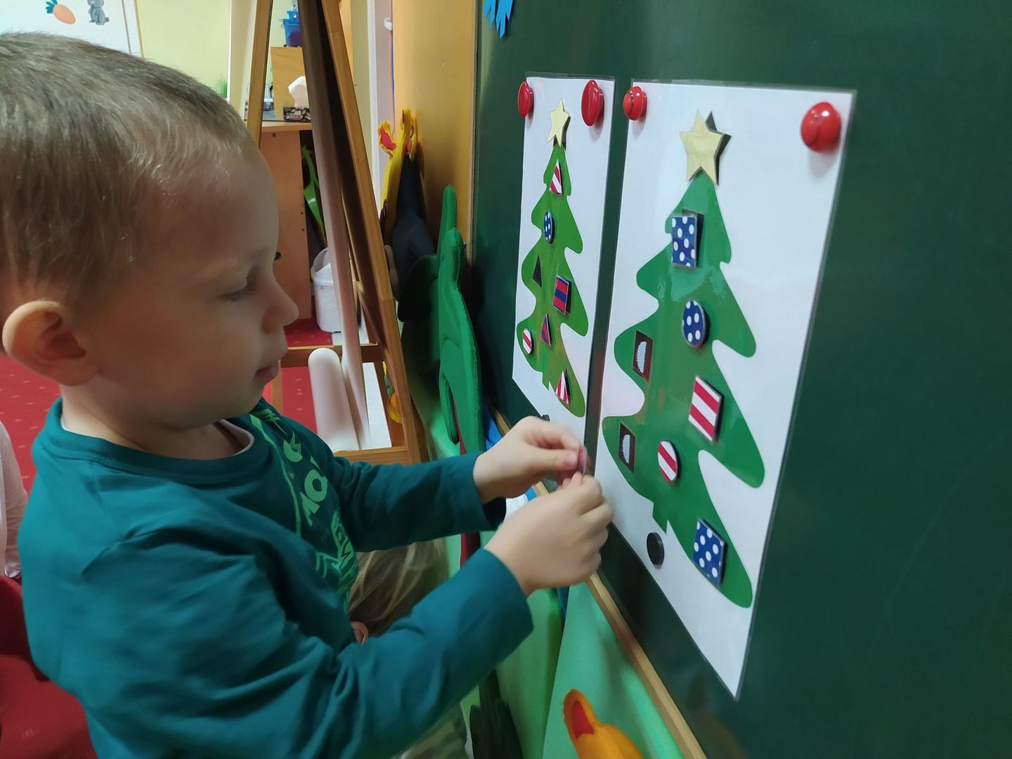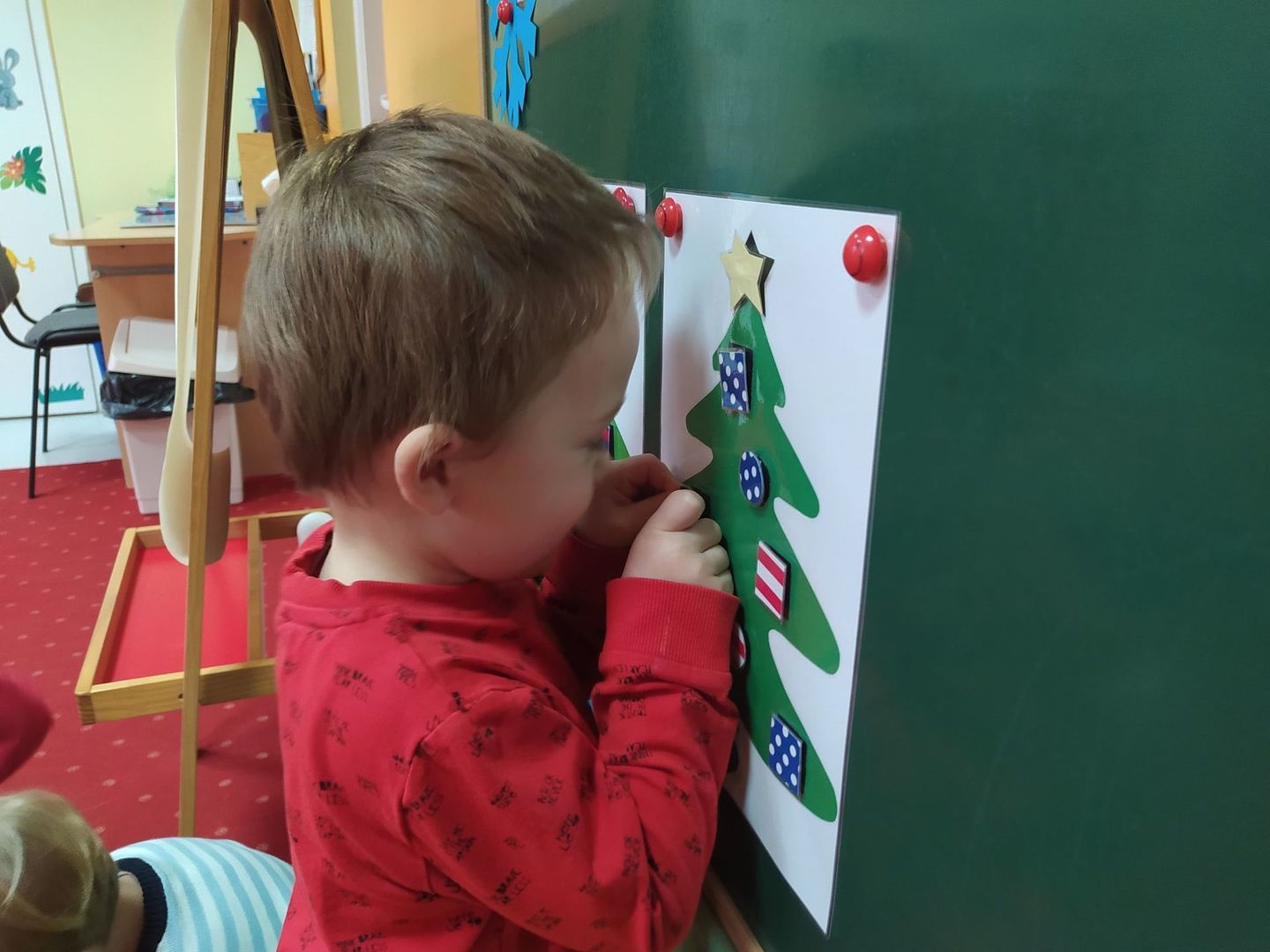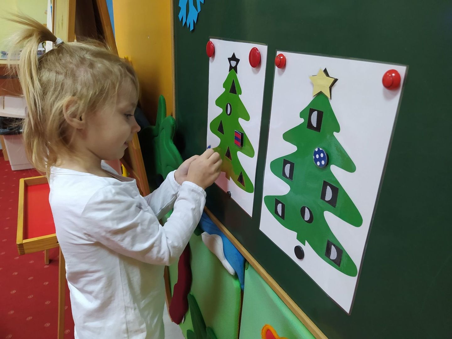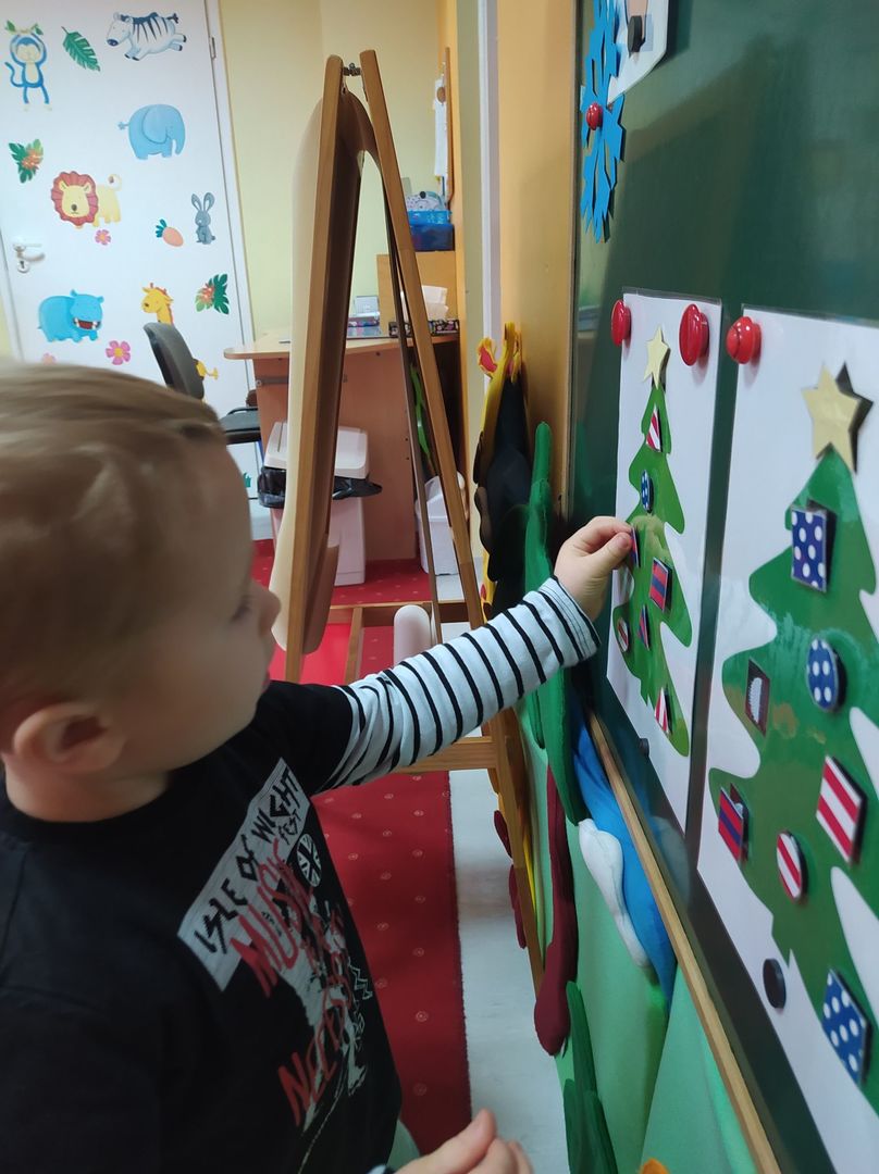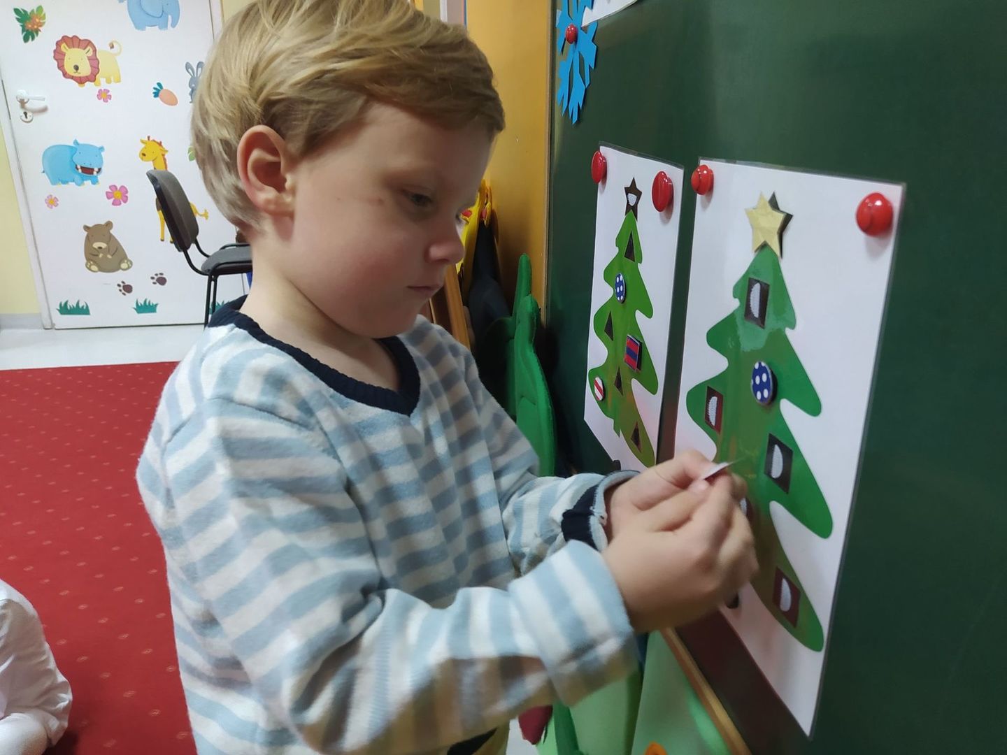 „Świąteczne przygotowania” to właśnie pod tym hasłem upłynęły ostatnie dni dzieciom z grupy Smerfy. W związku z tym nie mogło obyć się bez pieczenia i dekorowania pierników, które oczywiście nie tylko wyglądały apetycznie, ale również smakowały. :) Jednakże oprócz działań kulinarnych Smerfy wykonały wiele innych zadań. Należały do nich: zabawy z naklejkami, ozdabianie pierniczków (tym razem w formie papierowej), samodzielne tworzenie bombek, ubieranie choinki za pomocą ozdób przyczepianych na rzepy połączone z jednoczesnym przypomnieniem nazw figur geometrycznych, wykonanie reniferów (pieczątki ze stopy pomalowanej farbą) , rysowanie kartek dla Świętego Mikołaja oraz przygotowanie przedstawienia świątecznego pt. "Świąteczne bałwanki", w formie filmiku dla rodziców. Jako że pogoda sprzyja postanowiliśmy wybrać się także na Nasz pierwszy (ale nie ostatni) wspólny spacer po okolicy.