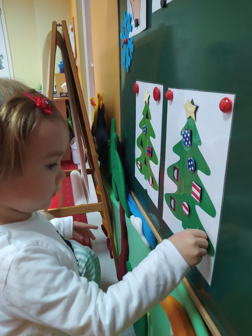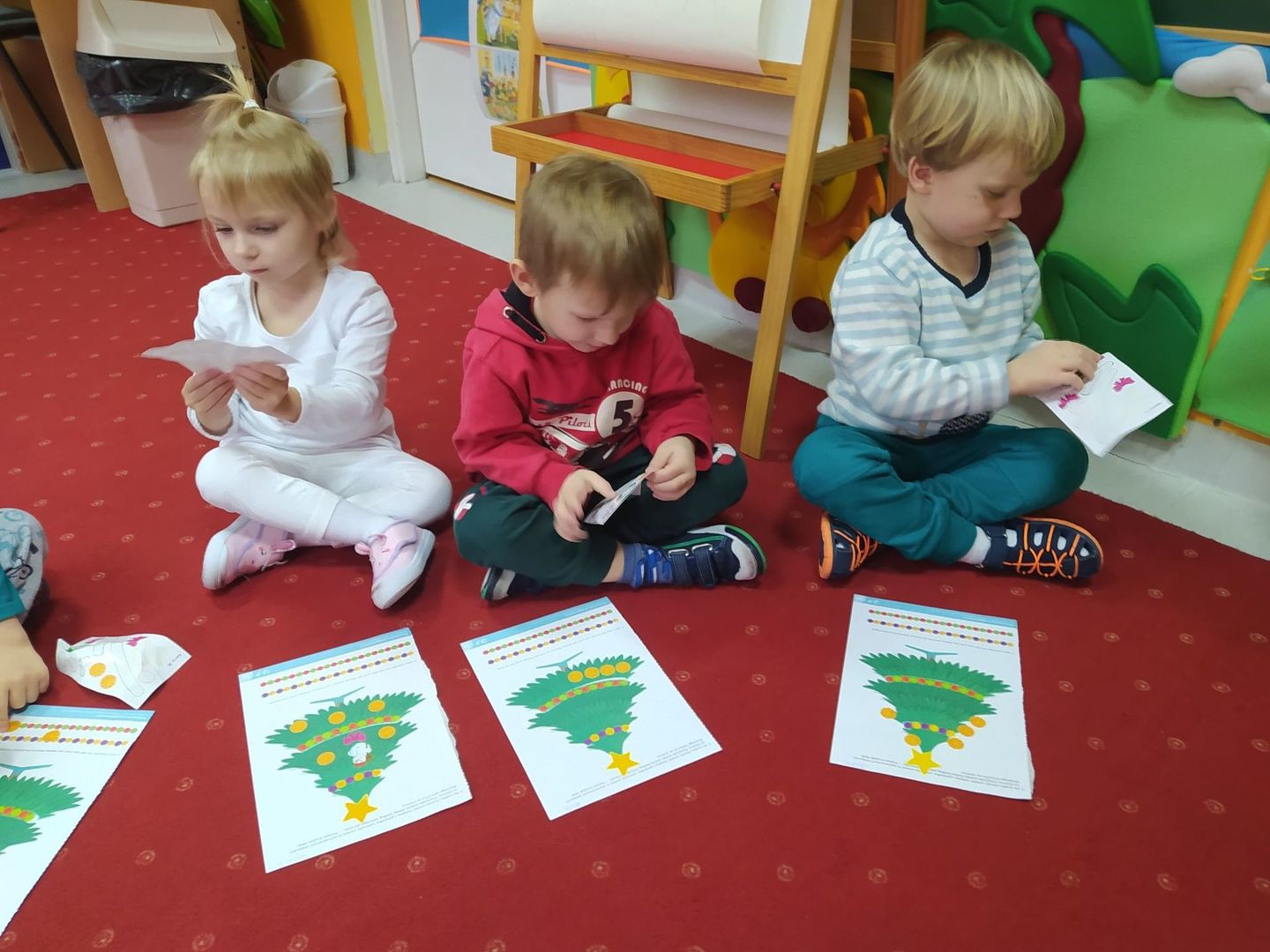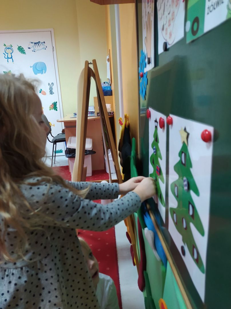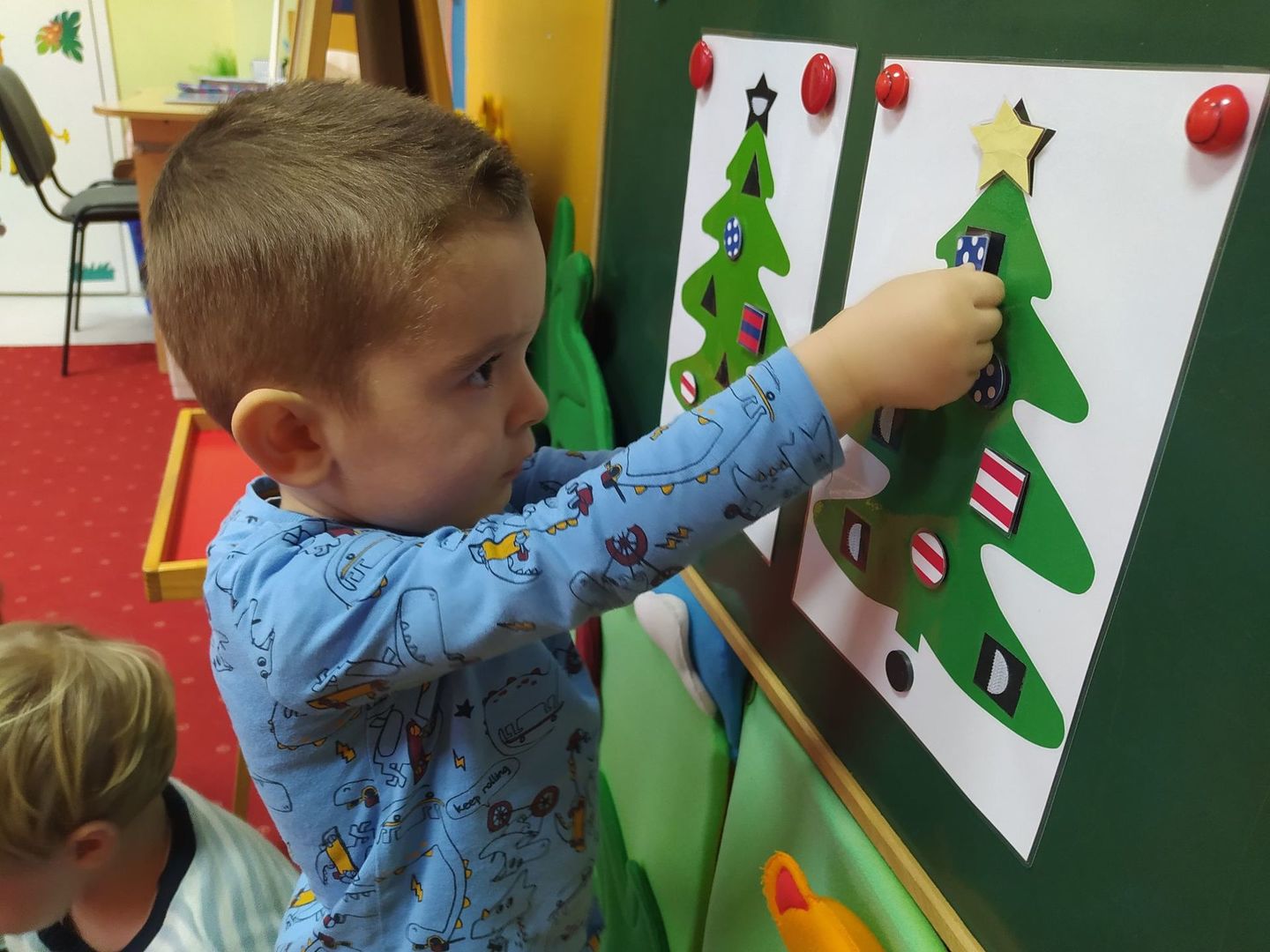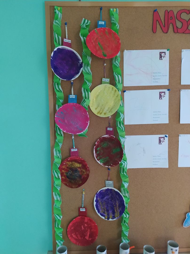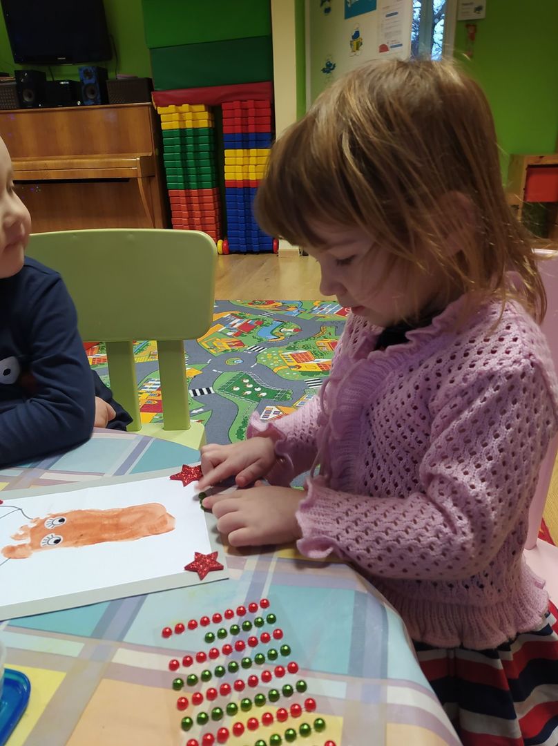 „Świąteczne przygotowania” to właśnie pod tym hasłem upłynęły ostatnie dni dzieciom z grupy Smerfy. W związku z tym nie mogło obyć się bez pieczenia i dekorowania pierników, które oczywiście nie tylko wyglądały apetycznie, ale również smakowały. :) Jednakże oprócz działań kulinarnych Smerfy wykonały wiele innych zadań. Należały do nich: zabawy z naklejkami, ozdabianie pierniczków (tym razem w formie papierowej), samodzielne tworzenie bombek, ubieranie choinki za pomocą ozdób przyczepianych na rzepy połączone z jednoczesnym przypomnieniem nazw figur geometrycznych, wykonanie reniferów (pieczątki ze stopy pomalowanej farbą) , rysowanie kartek dla Świętego Mikołaja oraz przygotowanie przedstawienia świątecznego pt. "Świąteczne bałwanki", w formie filmiku dla rodziców. Jako że pogoda sprzyja postanowiliśmy wybrać się także na Nasz pierwszy (ale nie ostatni) wspólny spacer po okolicy.