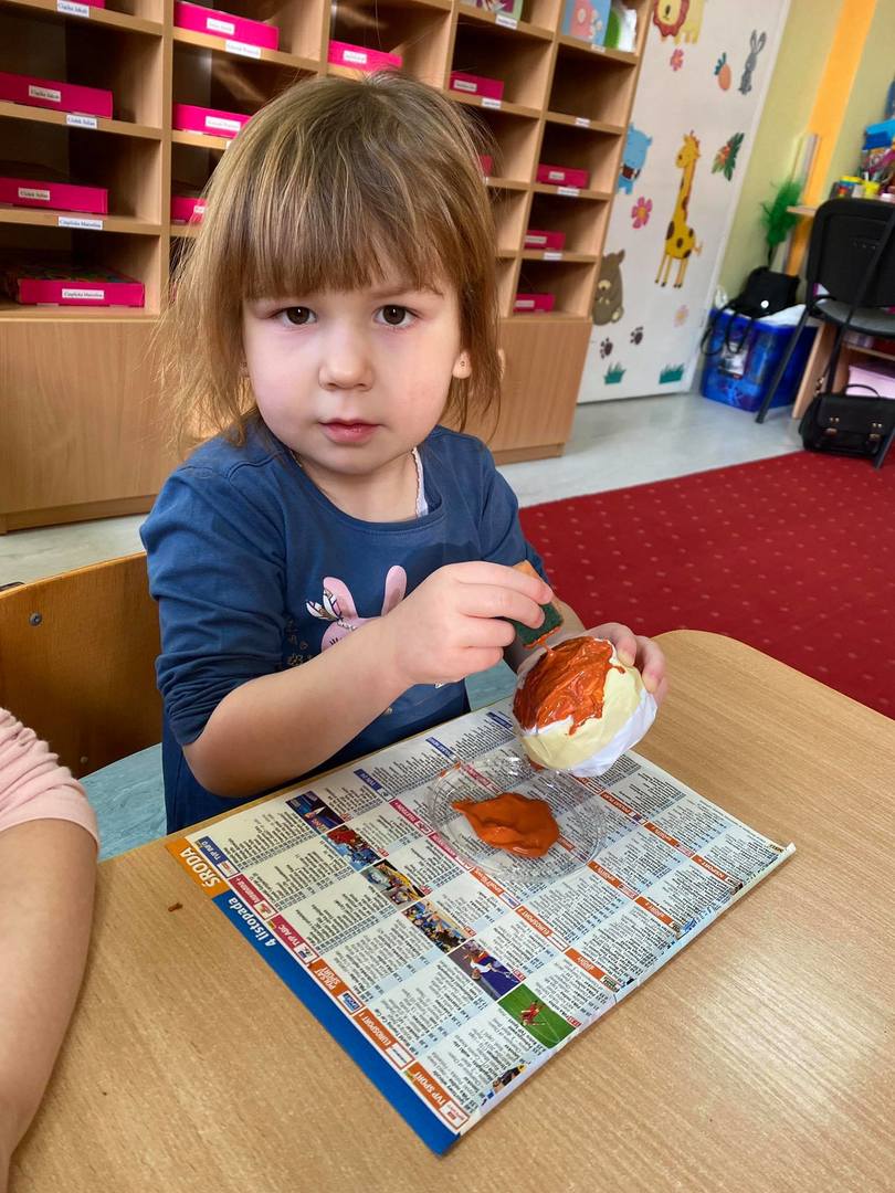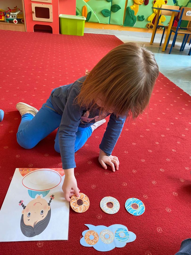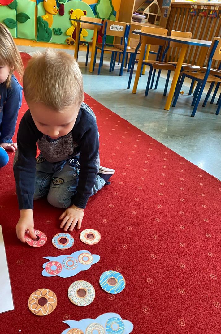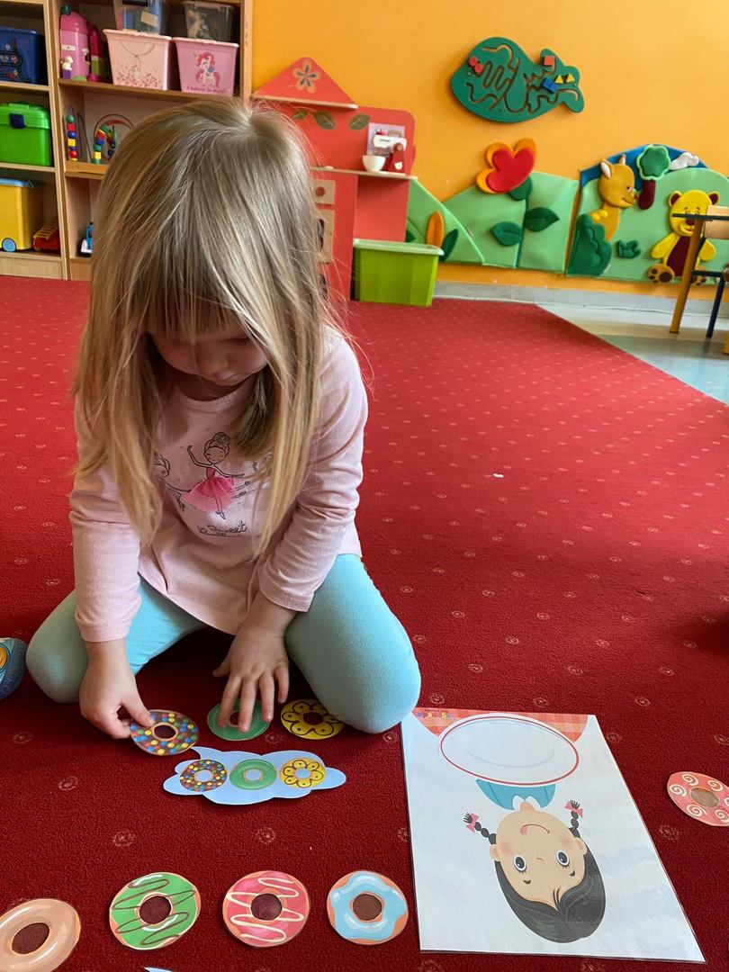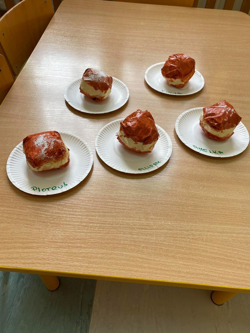 Tak też zrobiły dzieci z grupy Smerfy. Uśmiechy towarzyszyły im przez cały dzień. I nawet mała frekwencja nie przeszkodziła w świetnej zabawie. Dzieci poznały różne rodzaje pączków, odwzorowywały pączkowe rytmy, a także własnoręcznie wykonały piękne pączki. Na koniec dnia odbyła się słodka uczta, której bohaterem był oczywiście lukrowany, pudrowany, nadziewany pączek. Przedszkolaki z ogromną radością spałaszowały pyszne pączki z dżemem.