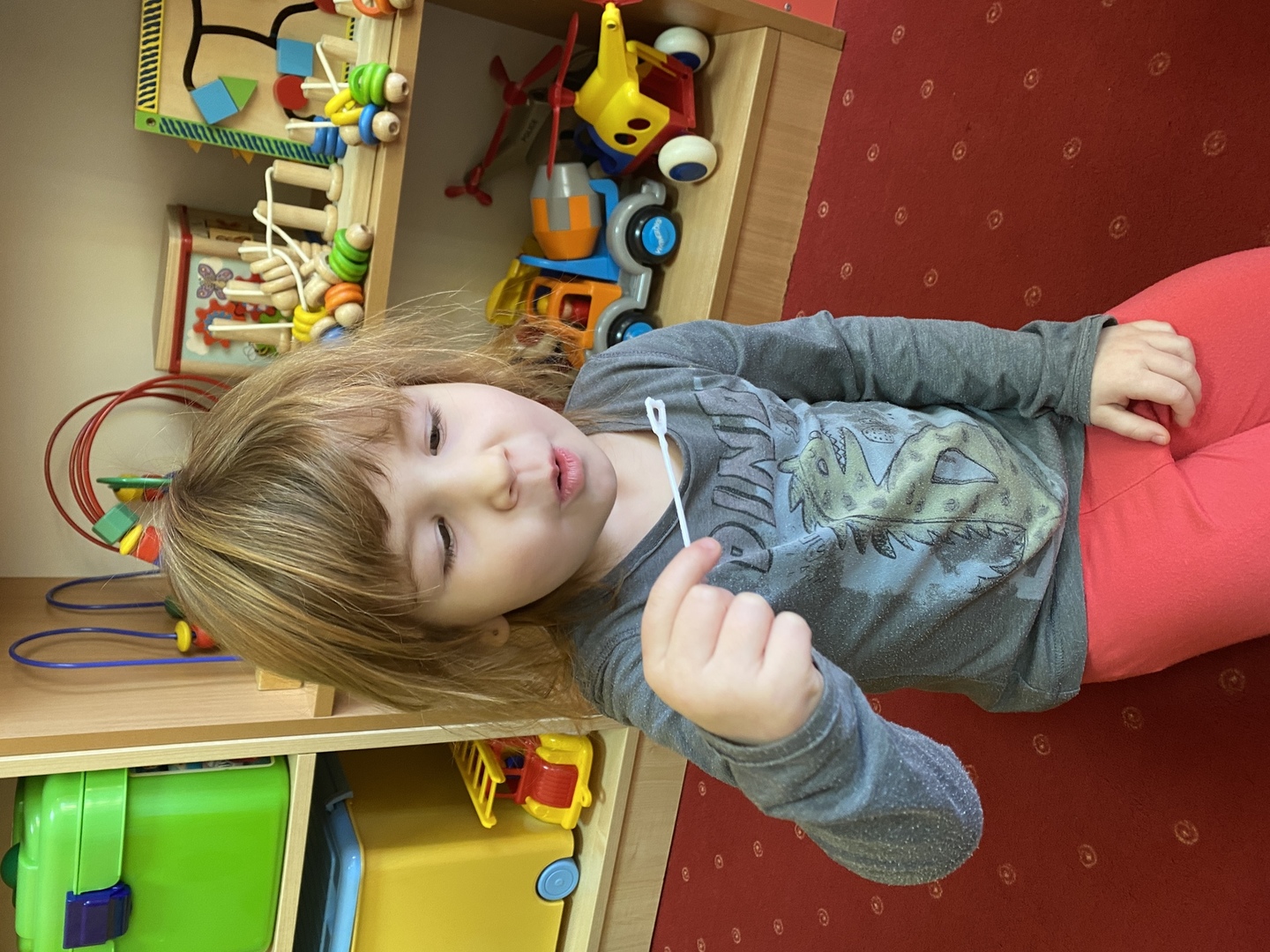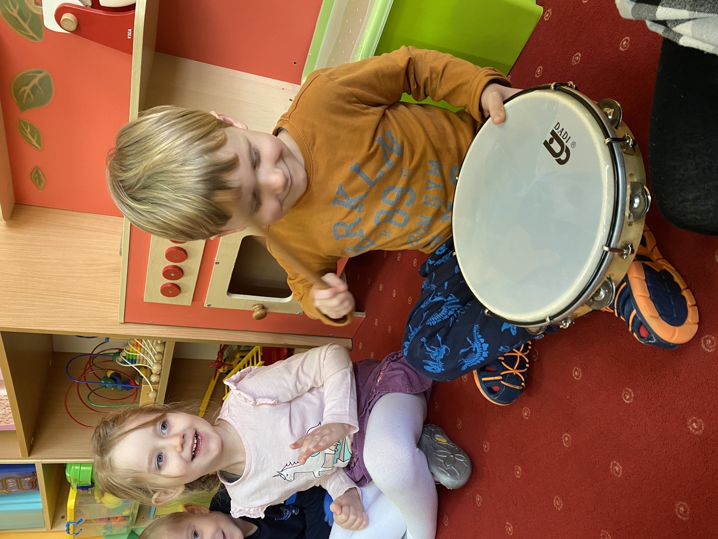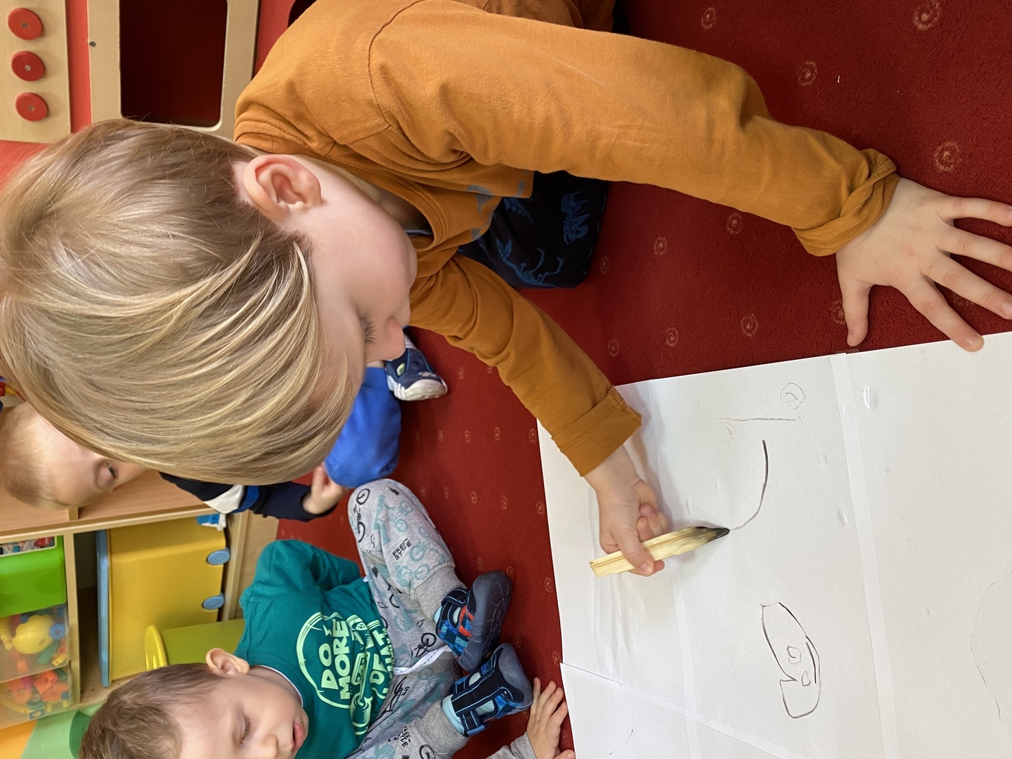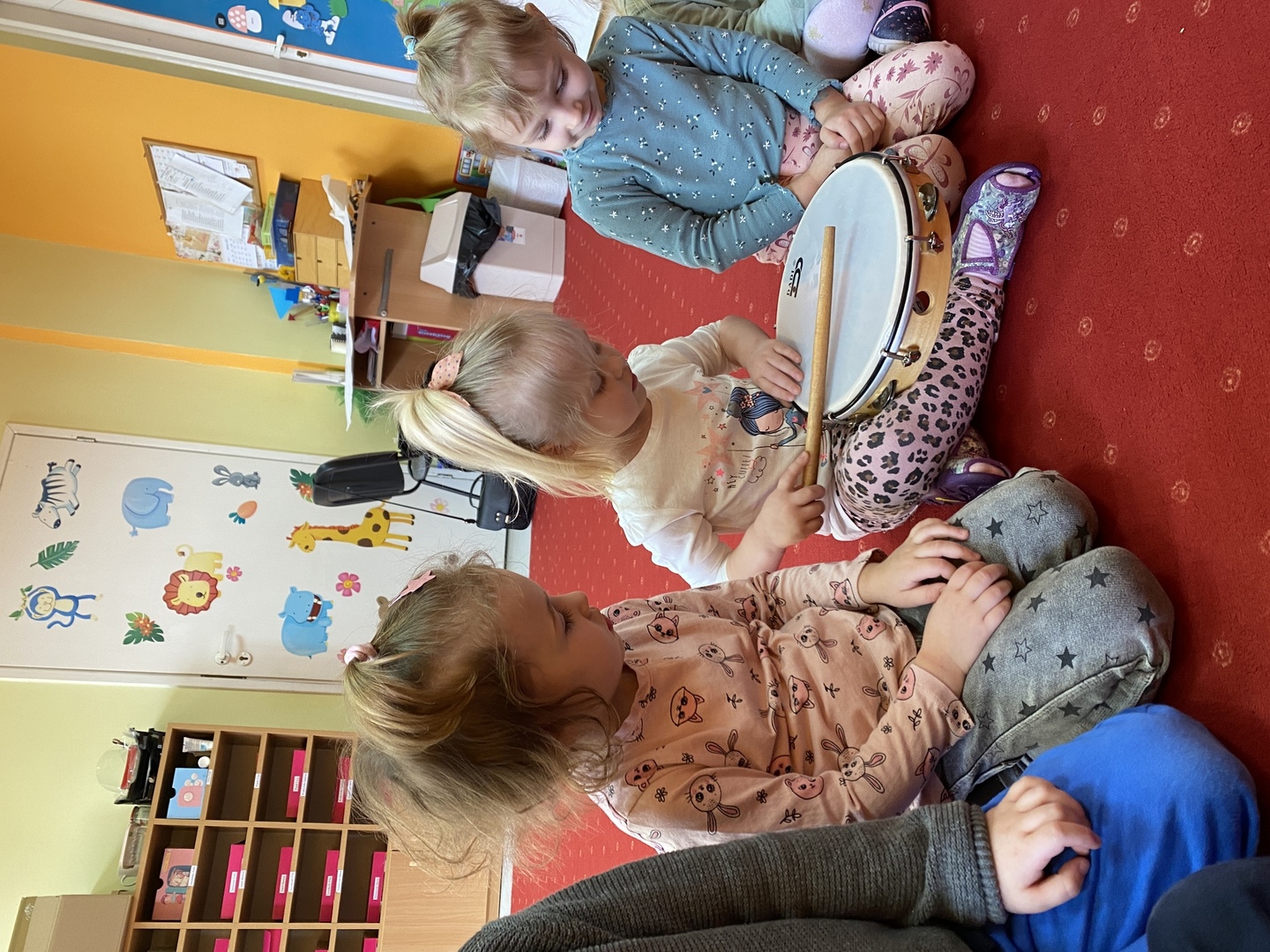 Nie obyło się również bez tak potrzebnych w wieku przedszkolnym zabaw ruchowych i gimnastycznych. Maluchy miały możliwość wcielić się w strażaków gaszących „ogień”. Brały udział w zabawach: w kole, z chustą animacyjną oraz muzyczno-ruchowych do znanych piosenek dziecięcych. Poruszały się po ścieżce sensorycznej stymulującej zmysł dotyku. Ćwiczyły z woreczkami wypełnionymi ziarenkami rozwijającymi skoczność, zwinność i równowagę.