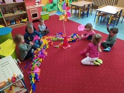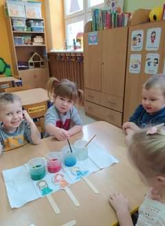 Kolejny zimowy miesiąc w przedszkolu upłynął na zabawach i ćwiczeniach rozwijających motorykę małą i dużą, percepcje wzrokową, pamięć oraz uwagę. Dzieci z grupy Smerfy poznały cztery żywioły, do których należy: ziemia, woda, ogień, powietrze. W jak najlepszym zrozumieniu ich znaczenia oraz właściwości pomogły im liczne eksperymenty („Siła wiatru”, „Wędrująca woda”, „Świeca też potrzebuje powietrza”, „Czary mary octu i sody”, „Burza, wichura, tornado”, „Jak zobaczyć powietrze?”, „Woda”), oglądanie książeczek o żywiołach, zabawy tematyczne (rozdmuchiwanie bibuły i piórek, rysowanie wodą i opalonym drewnem, puszczanie i robienie baniek mydlanych, gra „Żywioły”- memory, układanie rytmów, puszczanie łódek na wodzie, łowienie rybek, poznanie instrumentów muzycznych połączone z łączeniem skojarzeń usłyszanych dźwięków z żywiołami). Wprowadzone zostały plansze do kodowania rozwijające umiejętność rozumienia i posługiwania się pojęciami: na górze, na dole, nad, obok, pod. Dzieci miały możliwość obejrzenia różnych rodzajów świec i świeczek. Zapoznania z zasadami bezpieczeństwa w przypadku zagrożeń związanych z żywiołami. Smerfy poznały również nowe techniki plastyczne, rozwijając w ten sposób sprawność manualną oraz wyobraźnie. Wykonały prace pt. „Żywioły” poprzez rozdmuchiwanie słomką farby i samodzielne tworzenie stworków. Dużą radość sprawiła dzieciom możliwość wykonania butelek sensorycznych, wypełnionych wodą, brokatem i cekinami. Nie obyło się również bez tak potrzebnych w wieku przedszkolnym zabaw ruchowych i gimnastycznych. Maluchy miały możliwość wcielić się w strażaków gaszących „ogień”. Brały udział w zabawach: w kole, z chustą animacyjną oraz muzyczno-ruchowych do znanych piosenek dziecięcych. Poruszały się po ścieżce sensorycznej stymulującej zmysł dotyku. Ćwiczyły z woreczkami wypełnionymi ziarenkami rozwijającymi skoczność, zwinność i równowagę. Luty w przedszkolu już za nami. Był to czas pełen ciekawostek, kreatywności oraz radości z wykonywanych czynności. Ciekawe co przyniesie kolejny miesiąc – marzec...Jednak o tym się dowiemy się wkrótce. :)