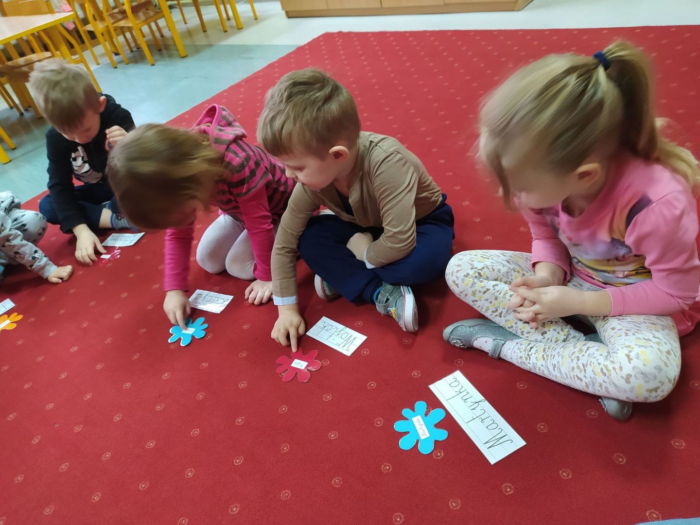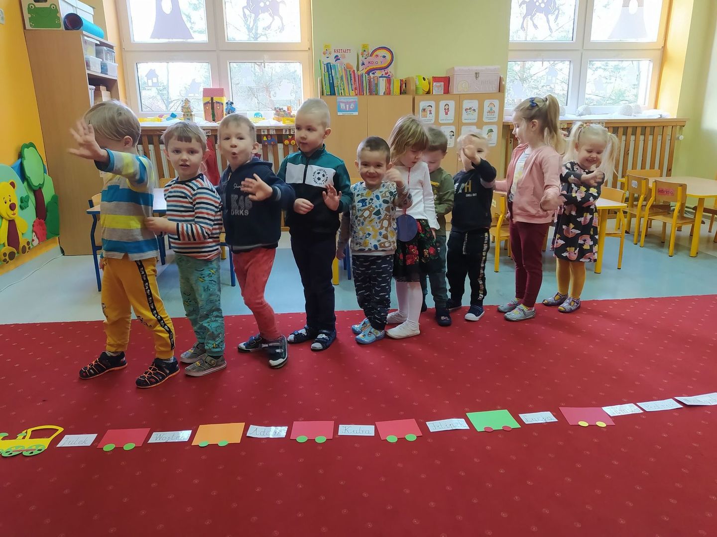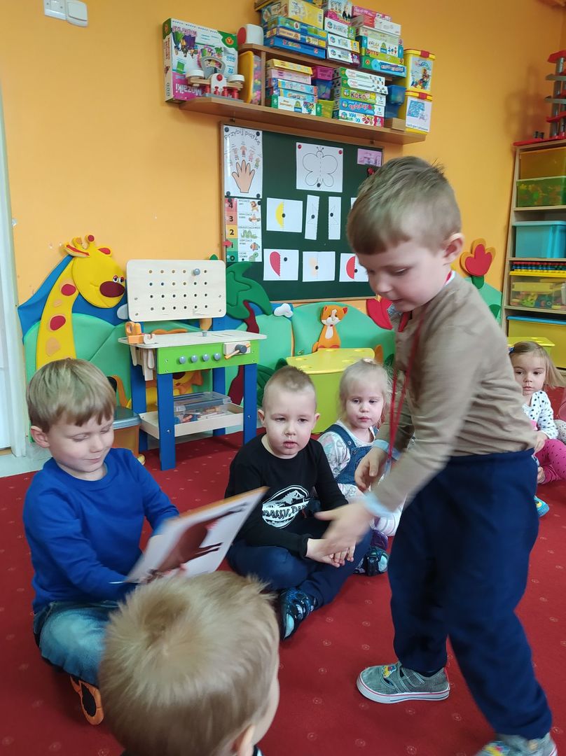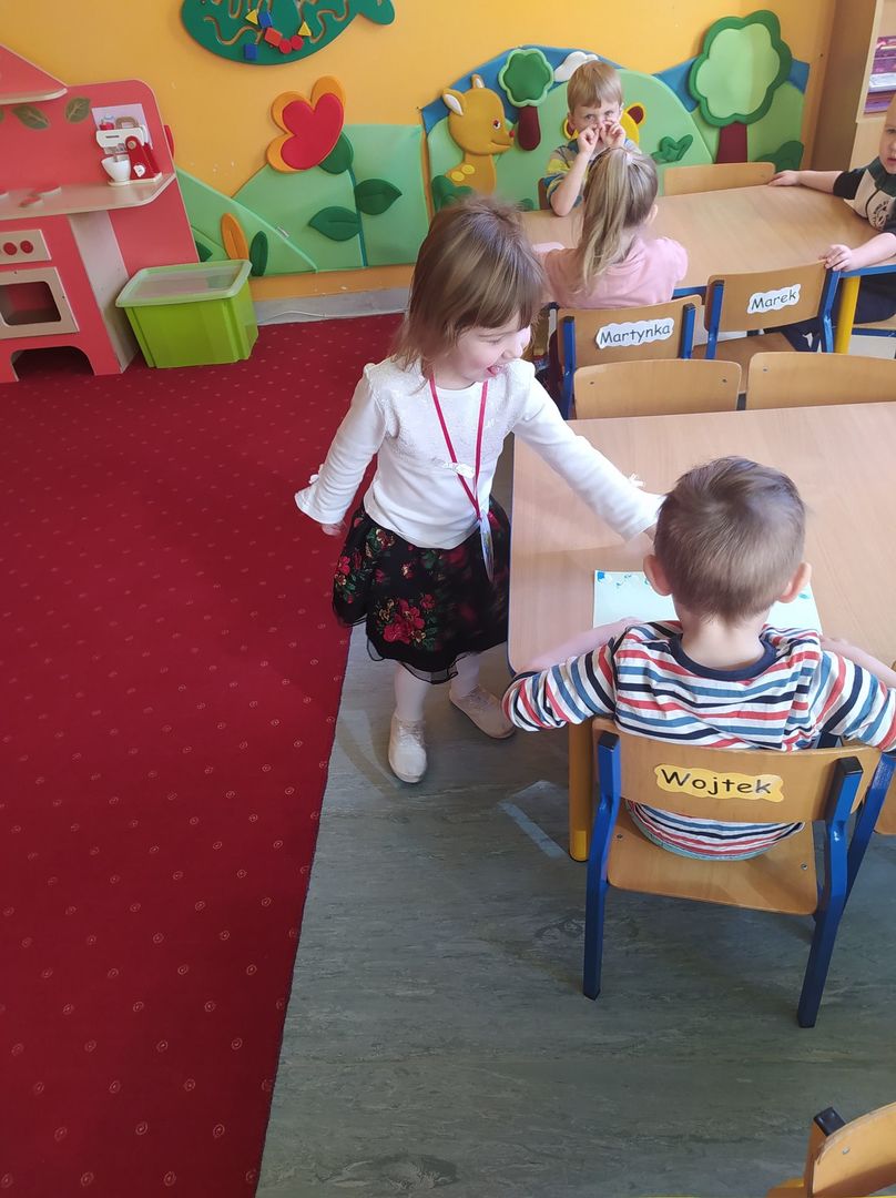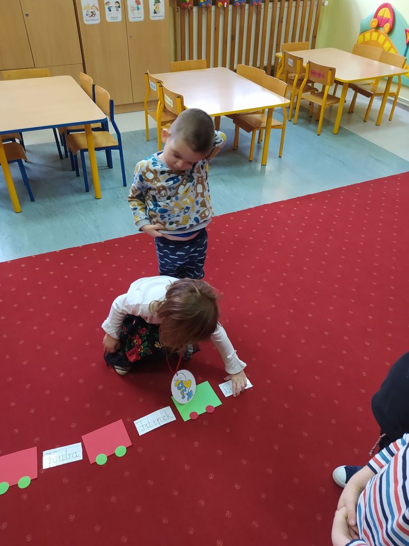 Ma okazję przyjrzenia się charakterystycznej formie każdej litery jak również rysunkowi całego imienia. Metoda ta ma kilka charakterystycznych etapów, które Smerfy będą realizować również w kolejnych latach uczęszczania do przedszkola. Póki co, wszystkie Smerfy otrzymały wizytówki ze swoim imieniem, wspólnie wymyśliły i wykonały pojemnik na wizytówki oraz uczestniczą w zabawach, które stanowią trening rozpoznawania wizytówki z własnym imieniem i wizytówek z imionami kolegów i koleżanek z grupy. Dodatkowo, dzięki znajomości zapisu graficznego swojego imienia, samodzielnie oznaczają objęcie funkcji „pomocnika nauczyciela” na specjalnie przygotowanej tablicy. Brawo Smerfy!