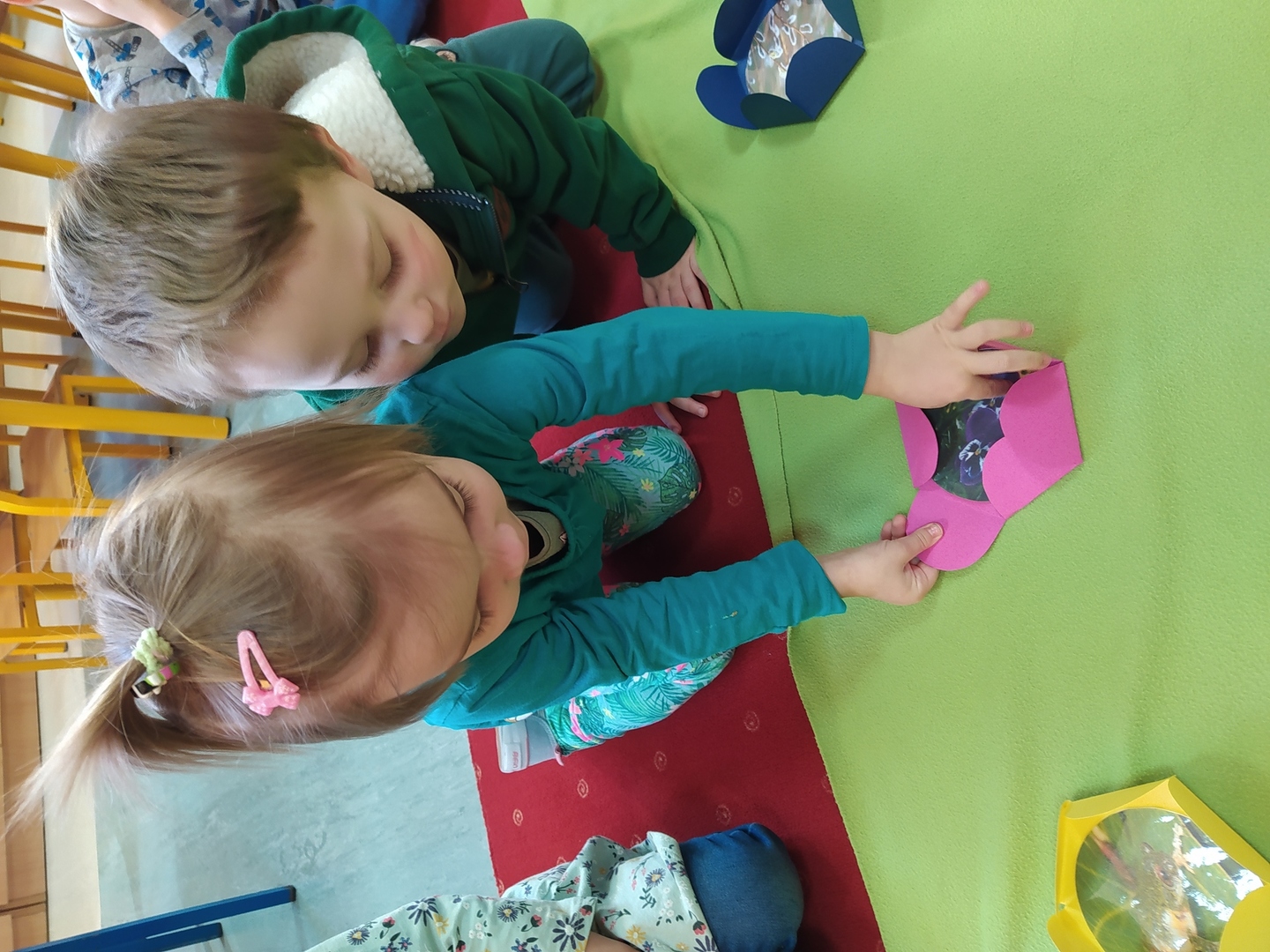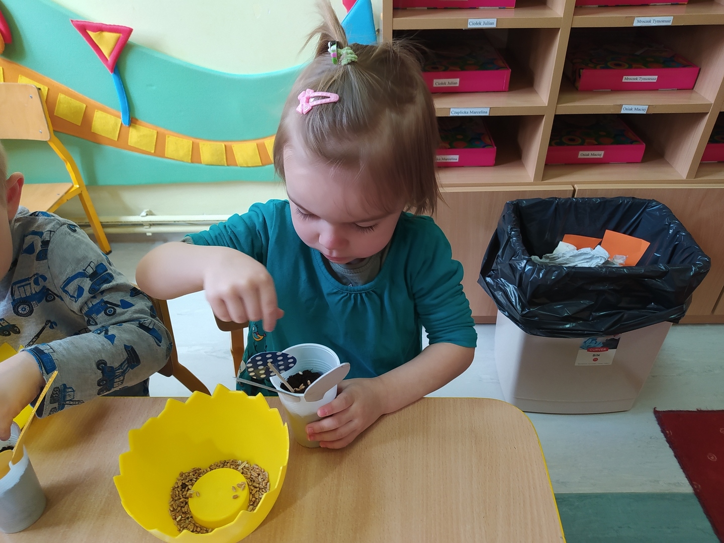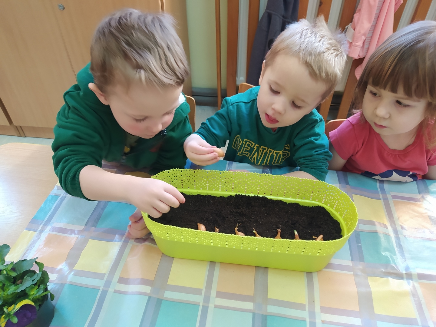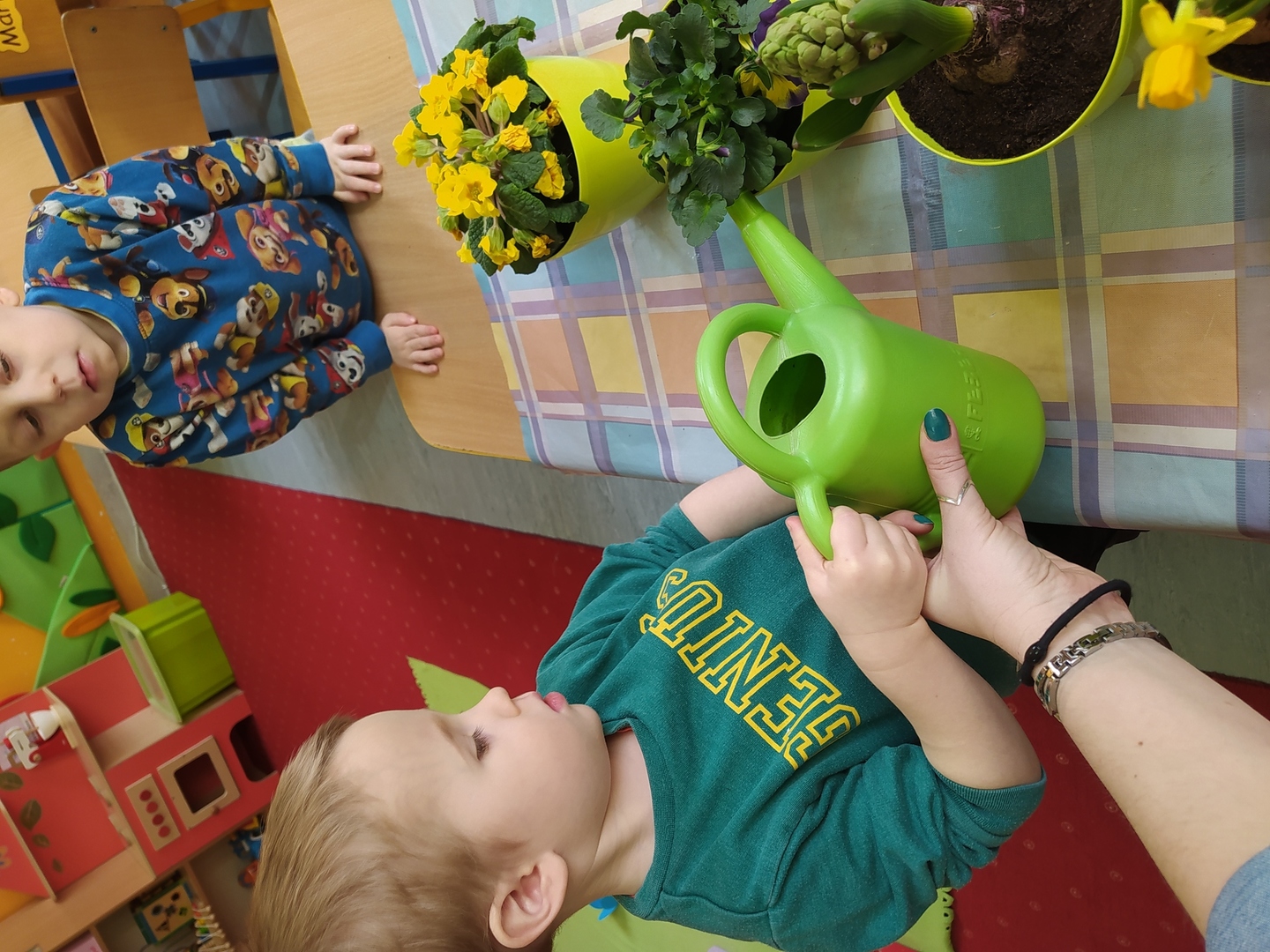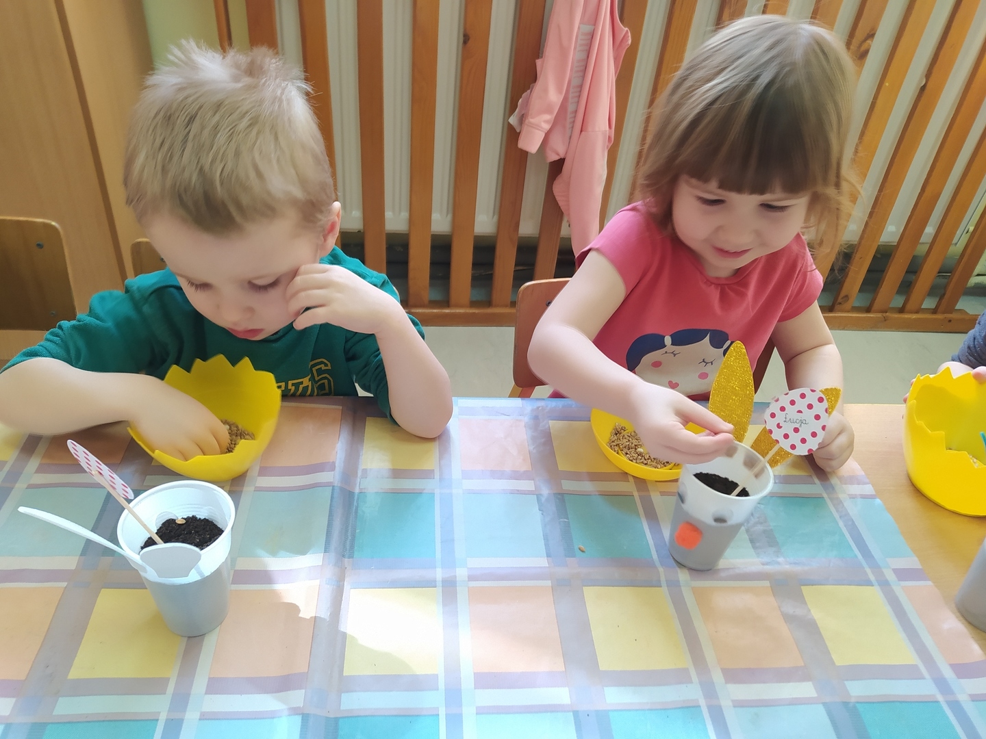 W naszym przedszkolu Smerfne przygotowania do pożegnania zimy i powitania wiosny zaczęły się już kilka dni wcześniej. Zmieniła się dekoracja przedszkola z zimowej na wiosenną, wspólnie przygotowaliśmy kolorowe gałązki, a i w serduszkach zrobiło się jakby cieplej. W dniu 22 marca zaś, zgodnie z tradycją, Smerfy świętowały Pierwszy Dzień Wiosny. Aby podkreślić charakter tego dnia, Przedszkolaki przyszły ubrane w kolorze wiosny, czyli na zielono. Już od rana w sali czekała na nie piękna i barwna niespodzianka od Pani Wiosny- kosz pełen kwiatów. Z ukrytego w nim listu, dowiedzieliśmy się jakie są pierwsze zwiastuny wiosny, a za sprawą „wycieczki” na zieloną łąkę obejrzeliśmy zdjęcia tych że zwiastunów i rozwiązaliśmy zagadki na ich temat. Następnie, przy dźwiękach wiosennych piosenek, wspólnie założyliśmy nasz pierwszy ogródek, w którym zasadziliśmy przyniesione przez Panią Wiosnę kwiaty, a także posialiśmy owies (p.s. pamiętaliśmy o chorujących kolegach i koleżankach i dla nich również zasialiśmy owies). Dzieci głośnym okrzykiem: "Witaj Wiosno, jak się masz, wszyscy Cię witamy, bądź wśród nas" oraz kolorowymi patyczkami witały wiosnę, zaś podczas spaceru wokół przedszkola sprawdzały, gdzie schowała się Wiosna i czy Zima już na dobre pożegnała się z przedszkolem. Wspólnej zabawie towarzyszyło wiele radości i uśmiechu, co wyraziliśmy kolorując portret Pani Wiosny. A teraz już tylko czekamy na cieplejsze wiosenne dni …