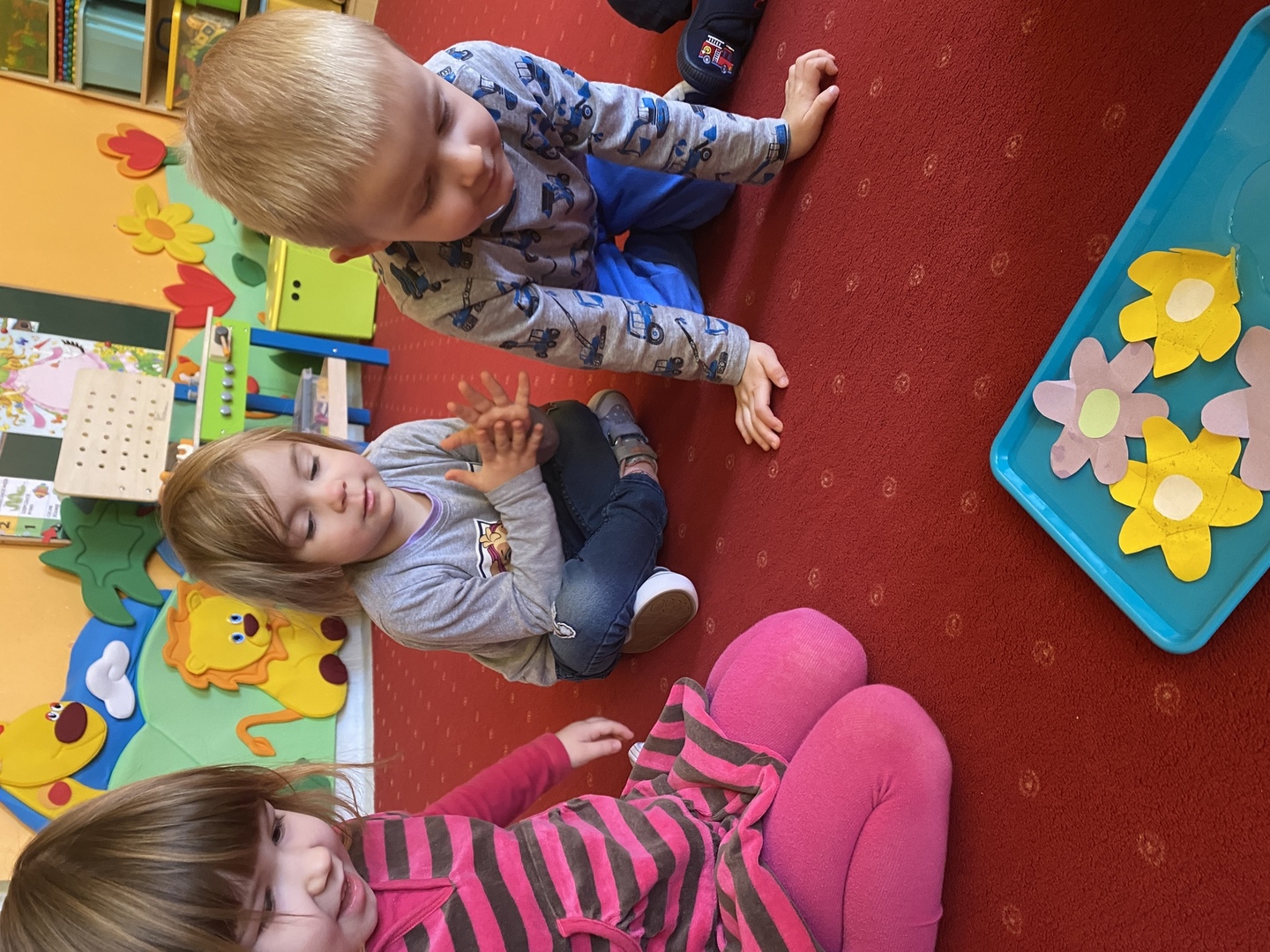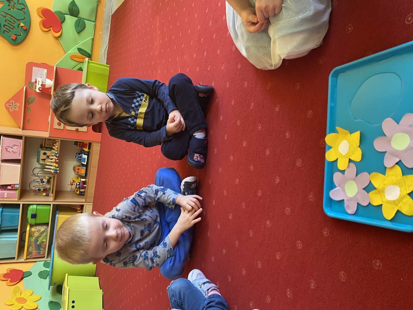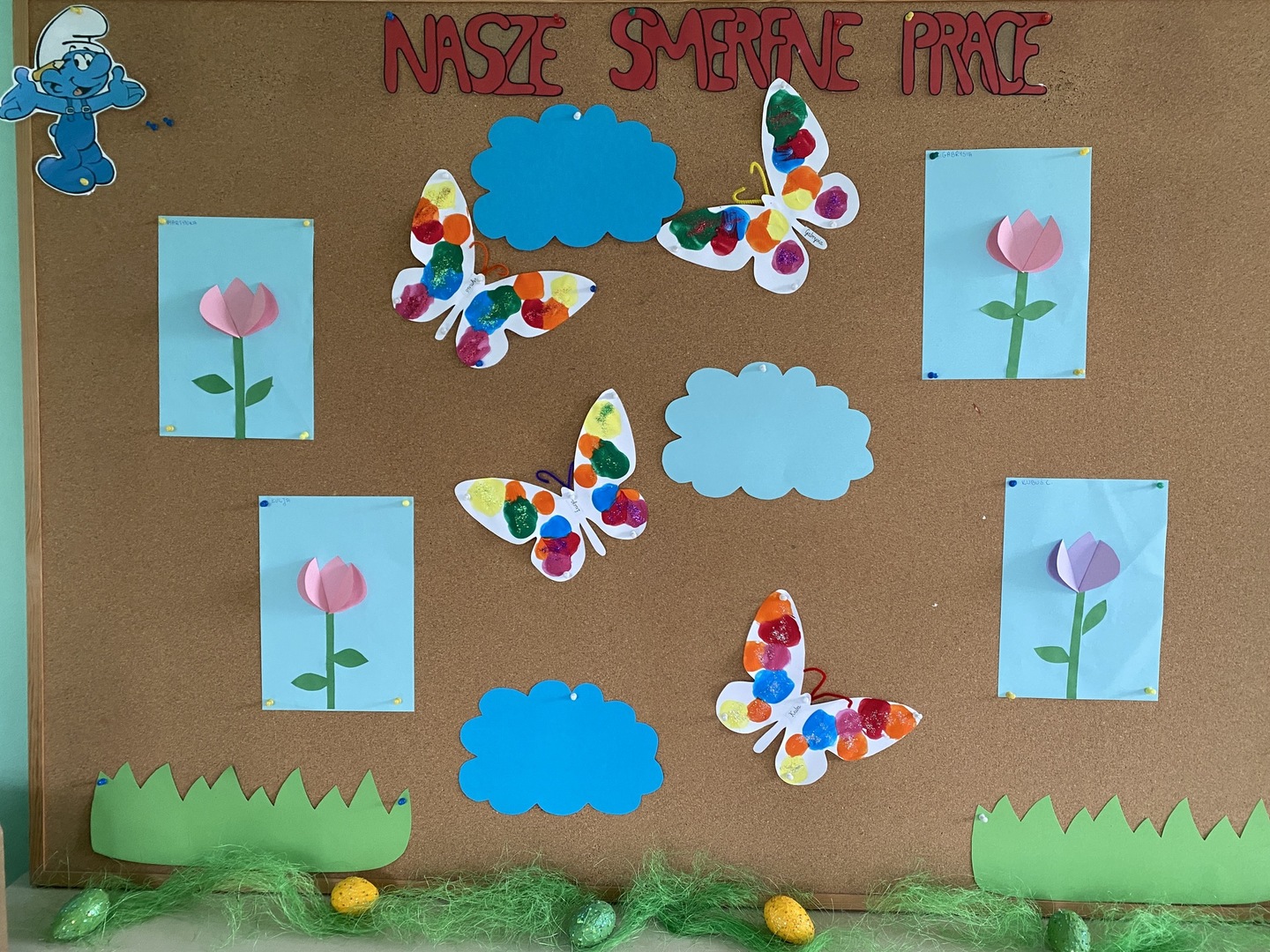 Przyjście nowej pory roku – wiosny jest świetną okazją do tego, aby wyjaśnić dzieciom, jak duże bogactwo niesie ze sobą budząca się do życia przyroda. Dzieci miały okazje obserwować zmiany zachodzące w najbliższym otoczeniu oraz poznać kwiaty wiosenne, zwierzęta budzące się ze snu zimowego oraz ptaki wracające do Polski wraz z nastaniem cieplejszych dni. Zmieniła się również dekoracja przedszkola z zimowej na wiosenną. W salach przedszkolnych pojawiły się kąciki przyrody z kwiatami wiosennymi oraz posadzonym przez dzieci owsem. Jednak to nie wszystko, ponieważ w przeciągu ostatnich dwóch tygodni Smerfy nauczyły się wielu zabaw paluszkowych, brały udział w różnorodnych formach aktywności ruchowych i zabawach rozwijających percepcje wzrokową oraz słuchową, które związane były z wiosennymi zjawiskami pogodowymi oraz kwiatami i zwierzętami wiosennymi. Oglądały bajkę dotyczącą marcowej pogody. Dowiedziały się, jak wygląda cykl rozwojowy motyla, a także układały historyjkę obrazkową dotycząca ich rozwoju. Nie zabrakło, także prac plastycznych, dotyczących zbliżającej się dużymi krokami wiosny („W marcu jak