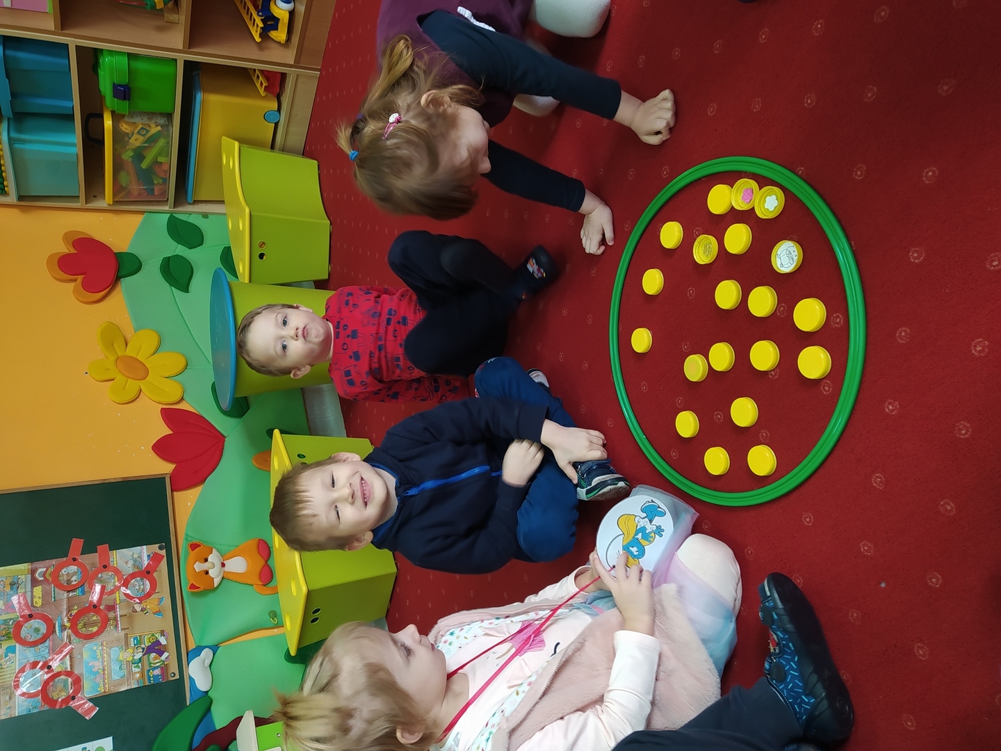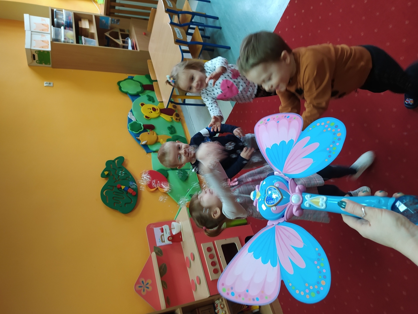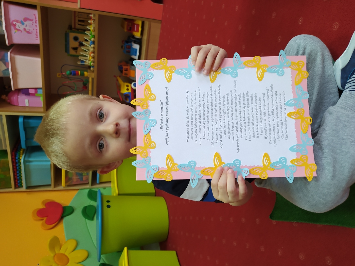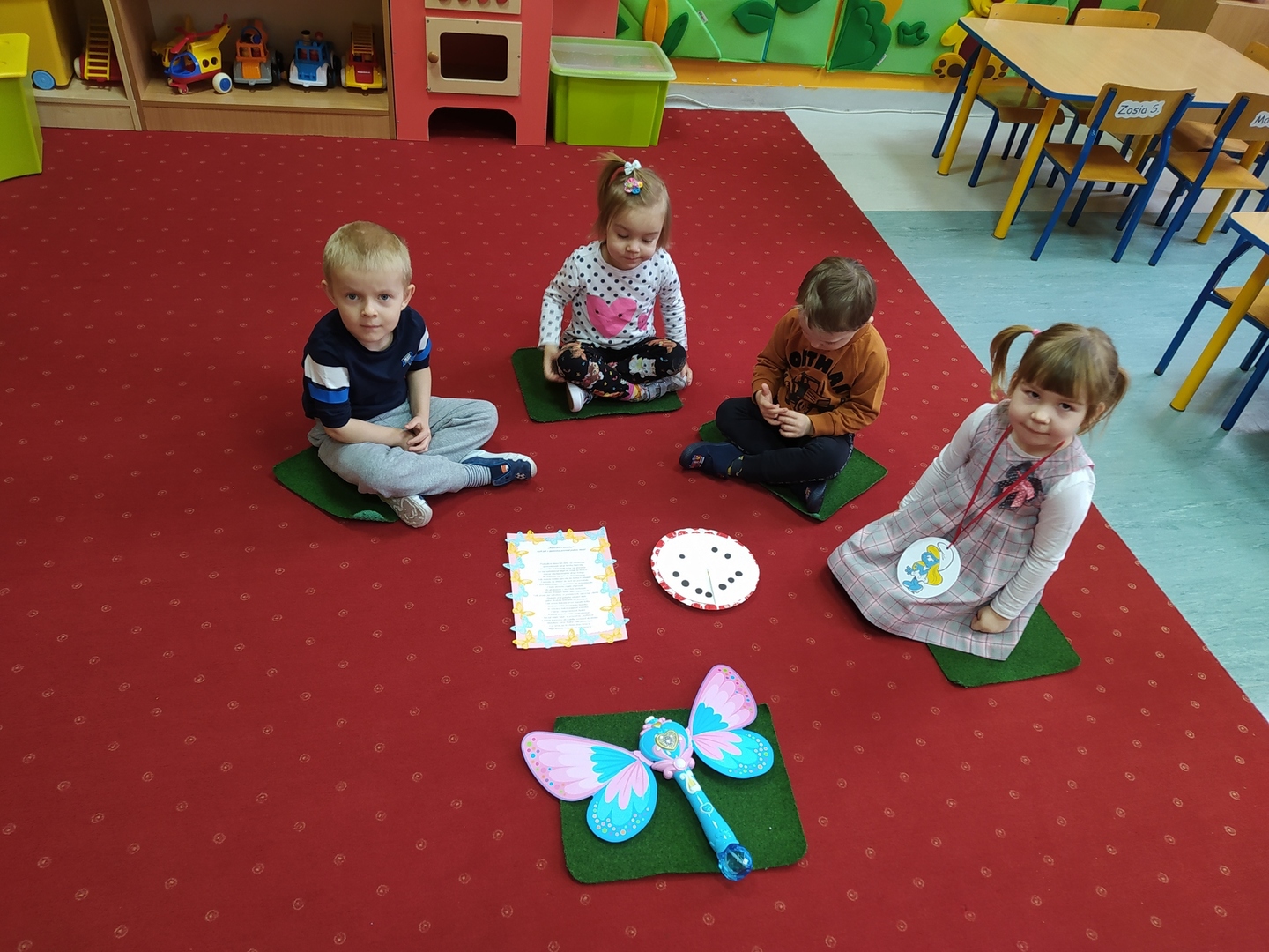 Przyjście nowej pory roku – wiosny jest świetną okazją do tego, aby wyjaśnić dzieciom, jak duże bogactwo niesie ze sobą budząca się do życia przyroda. Dzieci miały okazje obserwować zmiany zachodzące w najbliższym otoczeniu oraz poznać kwiaty wiosenne, zwierzęta budzące się ze snu zimowego oraz ptaki wracające do Polski wraz z nastaniem cieplejszych dni. Zmieniła się również dekoracja przedszkola z zimowej na wiosenną. W salach przedszkolnych pojawiły się kąciki przyrody z kwiatami wiosennymi oraz posadzonym przez dzieci owsem. Jednak to nie wszystko, ponieważ w przeciągu ostatnich dwóch tygodni Smerfy nauczyły się wielu zabaw paluszkowych, brały udział w różnorodnych formach aktywności ruchowych i zabawach rozwijających percepcje wzrokową oraz słuchową, które związane były z wiosennymi zjawiskami pogodowymi oraz kwiatami i zwierzętami wiosennymi. Oglądały bajkę dotyczącą marcowej pogody. Dowiedziały się, jak wygląda cykl rozwojowy motyla, a także układały historyjkę obrazkową dotycząca ich rozwoju. Nie zabrakło, także prac plastycznych, dotyczących zbliżającej się dużymi krokami wiosny („W marcu jak w garncu”, „Kolorowe motylki”, „Tulipany”).