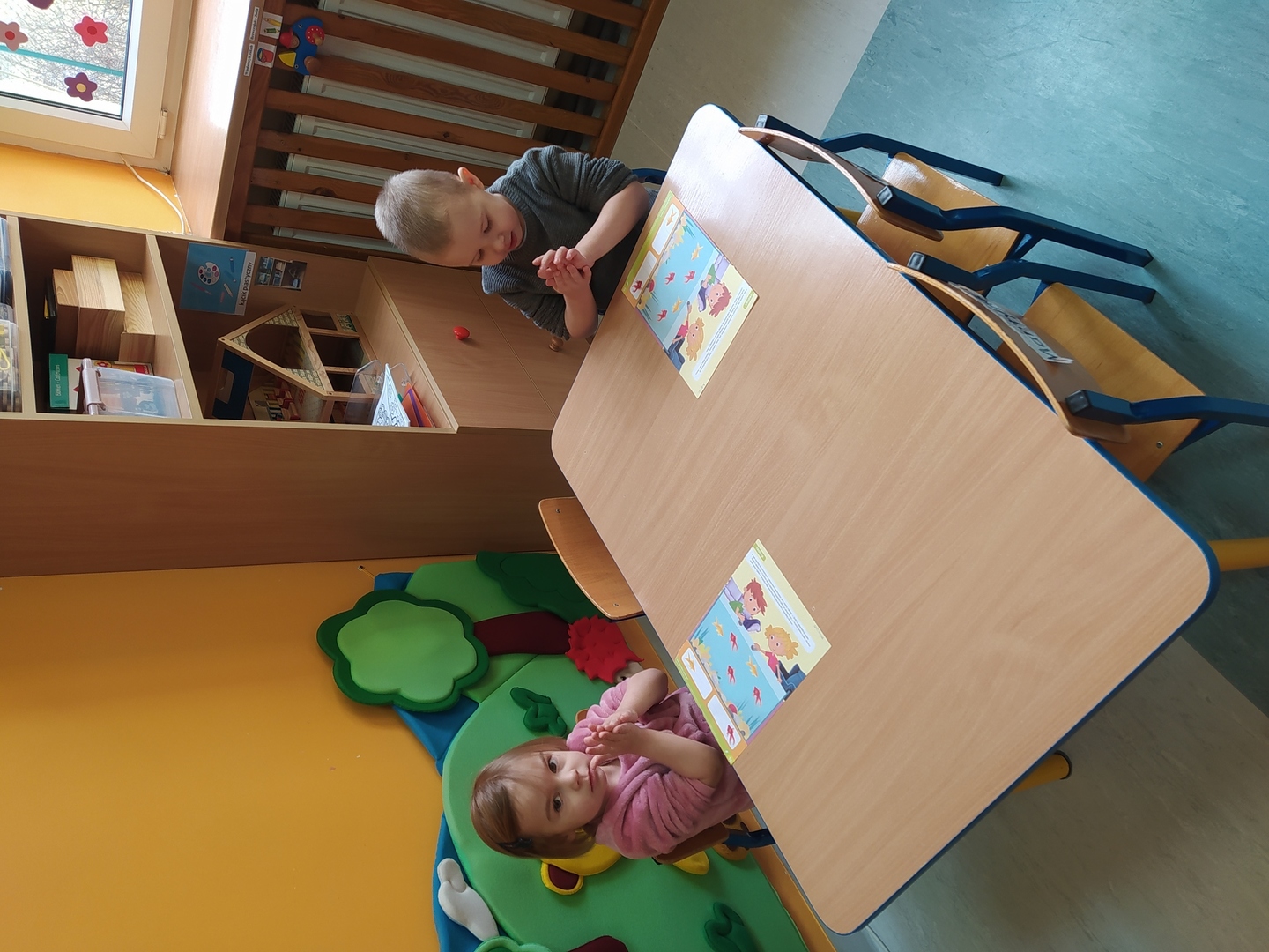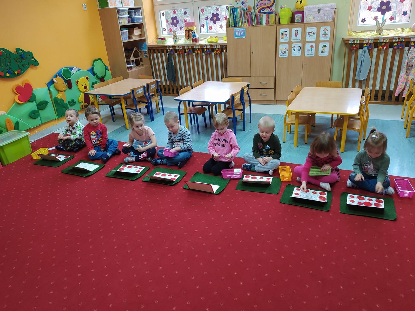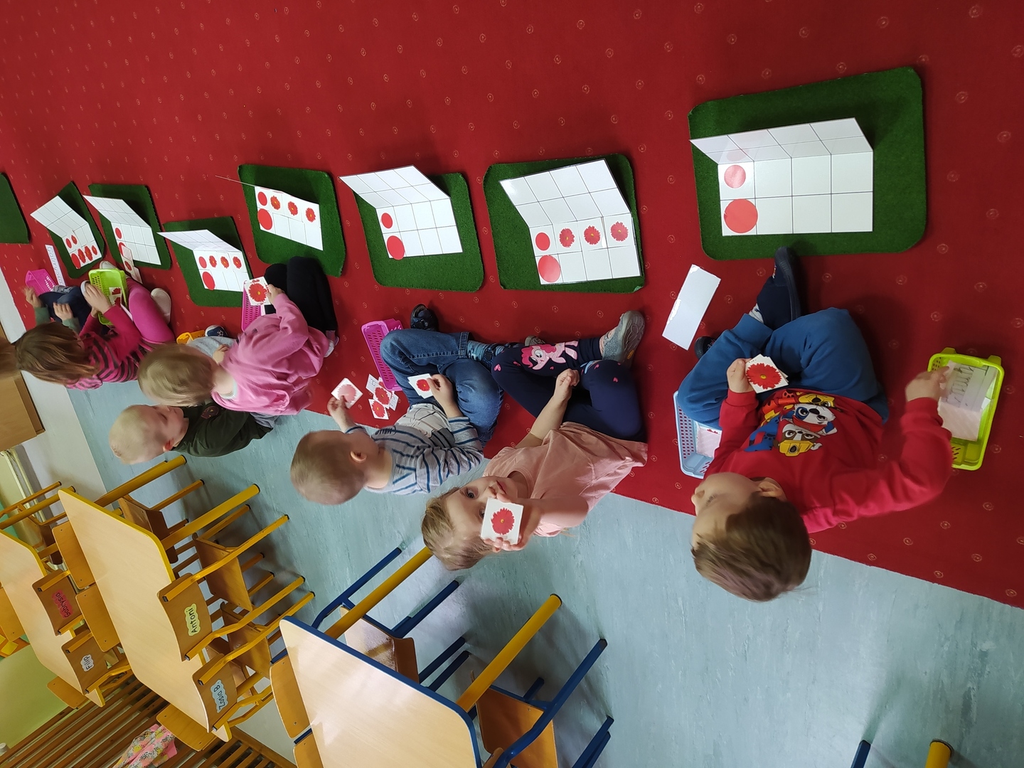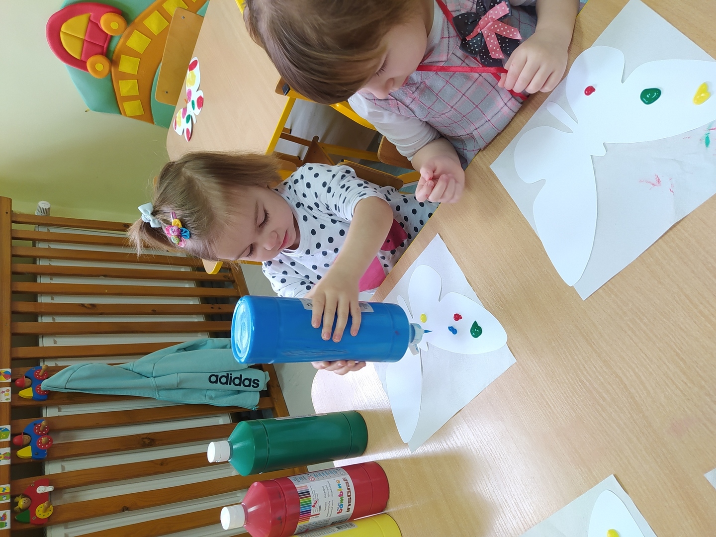 Przyjście nowej pory roku – wiosny jest świetną okazją do tego, aby wyjaśnić dzieciom, jak duże bogactwo niesie ze sobą budząca się do życia przyroda. Dzieci miały okazje obserwować zmiany zachodzące w najbliższym otoczeniu oraz poznać kwiaty wiosenne, zwierzęta budzące się ze snu zimowego oraz ptaki wracające do Polski wraz z nastaniem cieplejszych dni. Zmieniła się również dekoracja przedszkola z zimowej na wiosenną. W salach przedszkolnych pojawiły się kąciki przyrody z kwiatami wiosennymi oraz posadzonym przez dzieci owsem. Jednak to nie wszystko, ponieważ w przeciągu ostatnich dwóch tygodni Smerfy nauczyły się wielu zabaw paluszkowych, brały udział w różnorodnych formach aktywności ruchowych i zabawach rozwijających percepcje wzrokową oraz słuchową, które związane były z wiosennymi zjawiskami pogodowymi oraz kwiatami i zwierzętami wiosennymi. Oglądały bajkę dotyczącą marcowej pogody. Dowiedziały się, jak wygląda cykl rozwojowy motyla, a także układały historyjkę obrazkową dotycząca ich rozwoju. Nie zabrakło, także prac plastycznych, dotyczących zbliżającej się dużymi krokami wiosny („W marcu jak w garncu”, „Kolorowe motylki”, „Tulipany”).