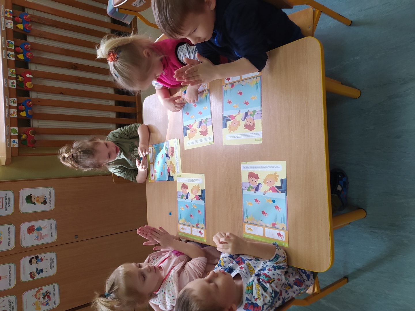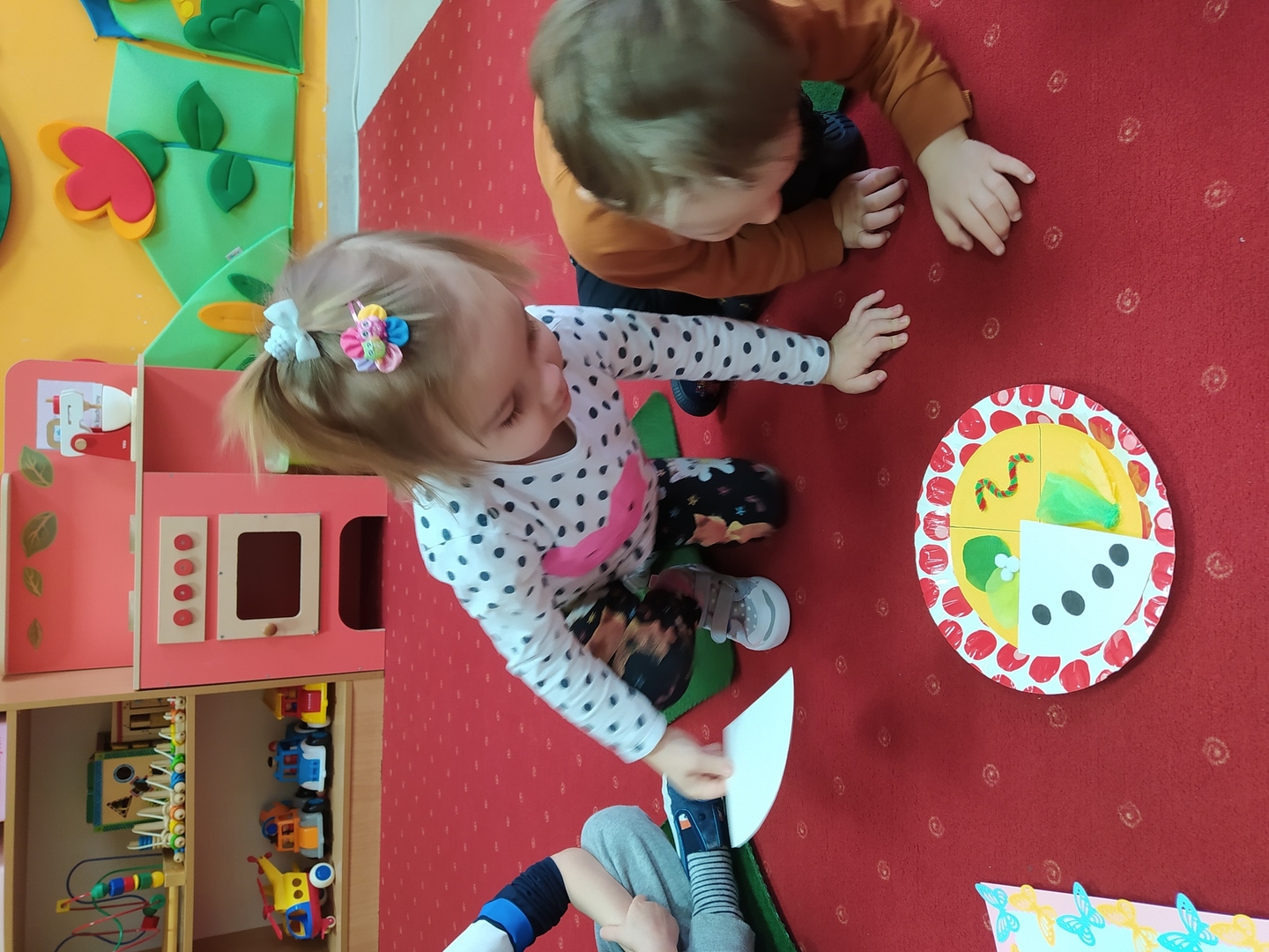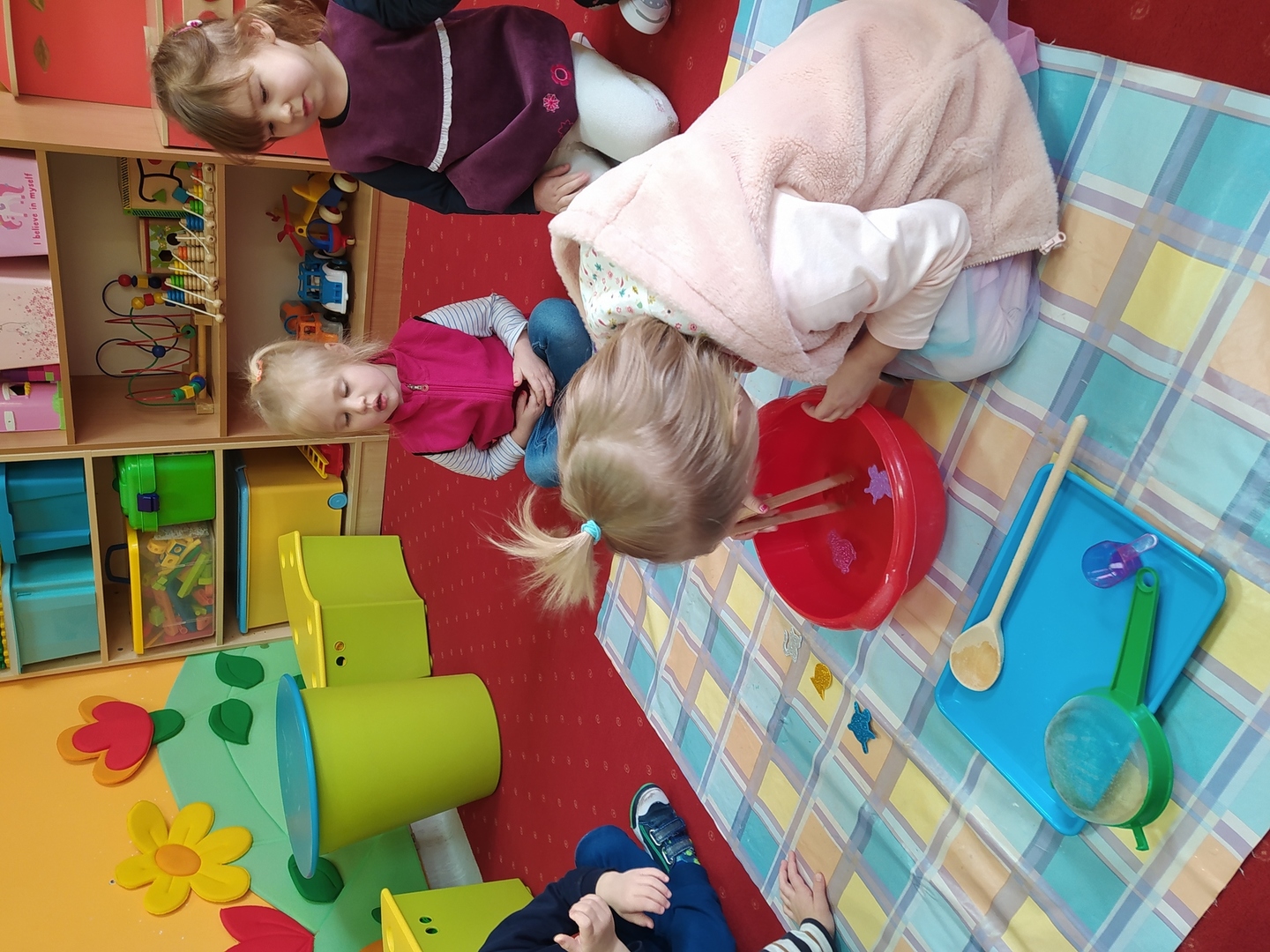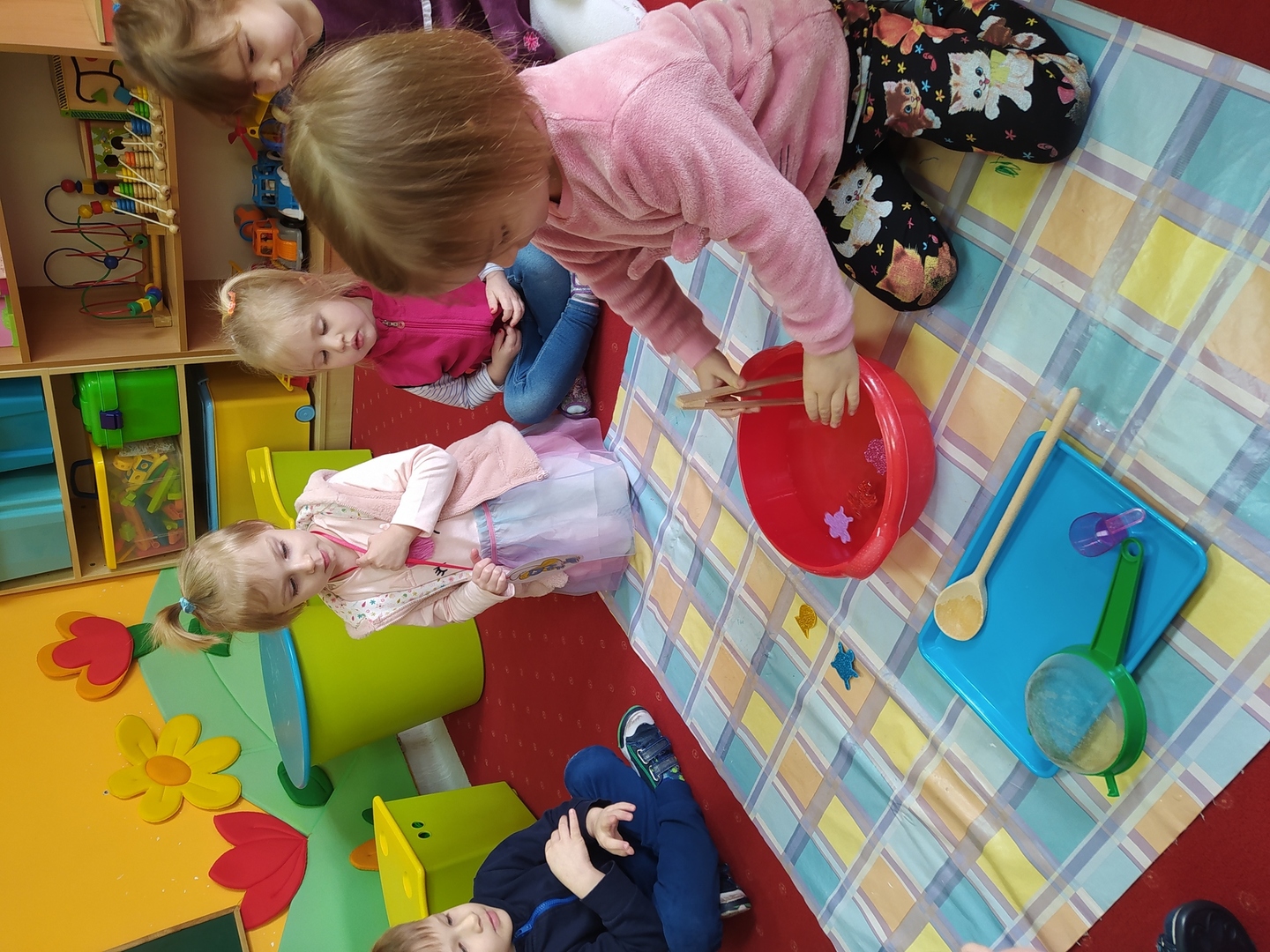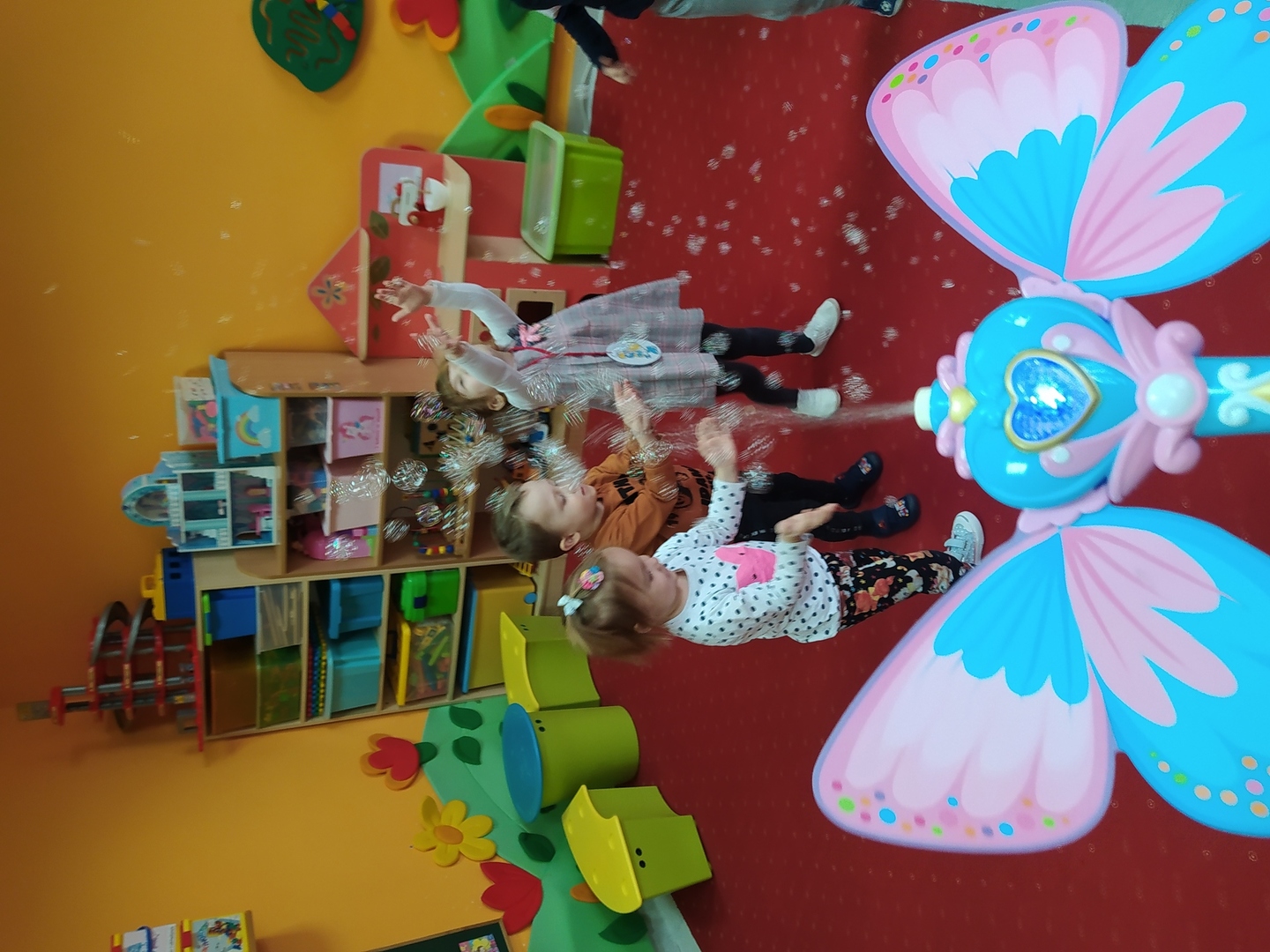 Przyjście nowej pory roku – wiosny jest świetną okazją do tego, aby wyjaśnić dzieciom, jak duże bogactwo niesie ze sobą budząca się do życia przyroda. Dzieci miały okazje obserwować zmiany zachodzące w najbliższym otoczeniu oraz poznać kwiaty wiosenne, zwierzęta budzące się ze snu zimowego oraz ptaki wracające do Polski wraz z nastaniem cieplejszych dni. Zmieniła się również dekoracja przedszkola z zimowej na wiosenną. W salach przedszkolnych pojawiły się kąciki przyrody z kwiatami wiosennymi oraz posadzonym przez dzieci owsem. Jednak to nie wszystko, ponieważ w przeciągu ostatnich dwóch tygodni Smerfy nauczyły się wielu zabaw paluszkowych, brały udział w różnorodnych formach aktywności ruchowych i zabawach rozwijających percepcje wzrokową oraz słuchową, które związane były z wiosennymi zjawiskami pogodowymi oraz kwiatami i zwierzętami wiosennymi. Oglądały bajkę dotyczącą marcowej pogody. Dowiedziały się, jak wygląda cykl rozwojowy motyla, a także układały historyjkę obrazkową dotycząca ich rozwoju. Nie zabrakło, także prac plastycznych, dotyczących zbliżającej się dużymi krokami wiosny („W marcu jak w garncu”, „Kolorowe motylki”, „Tulipany”).