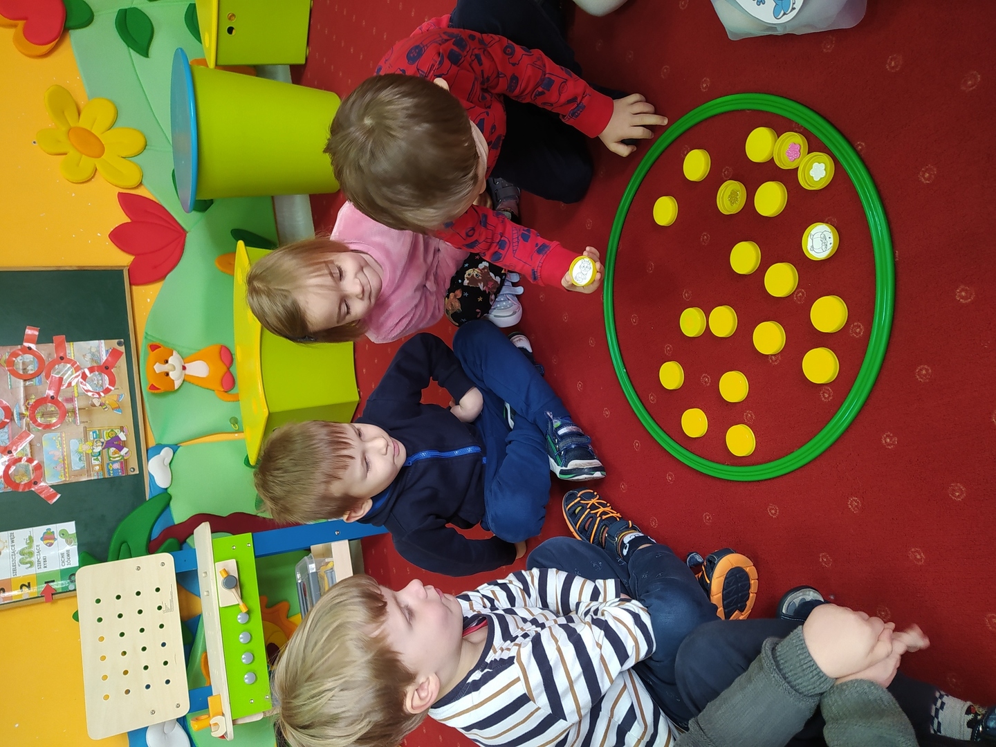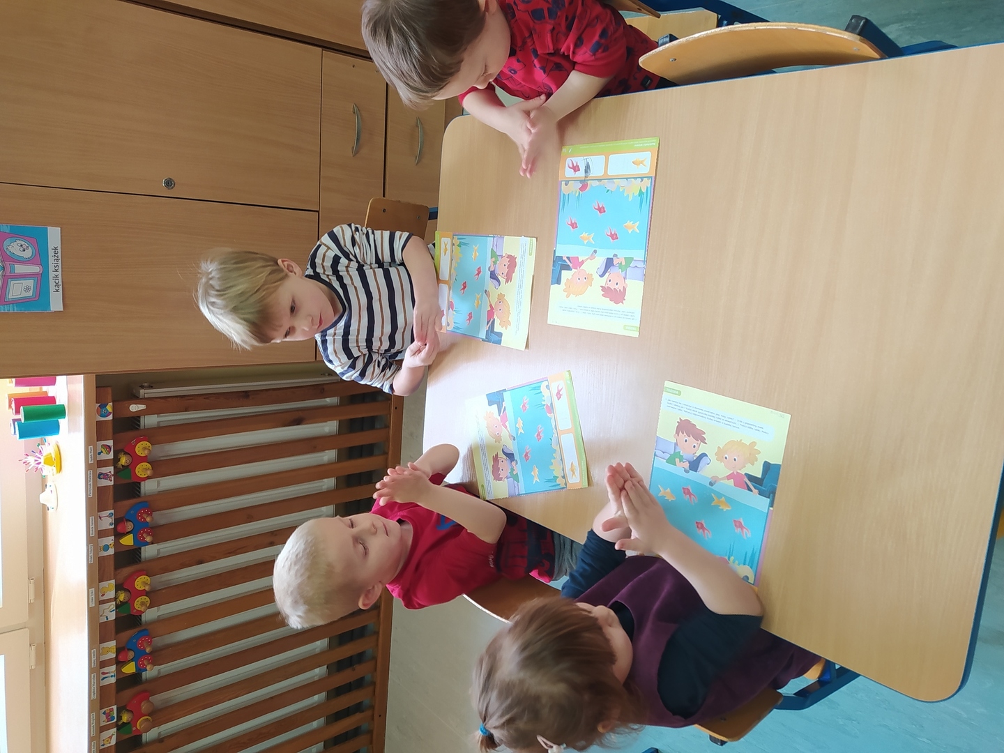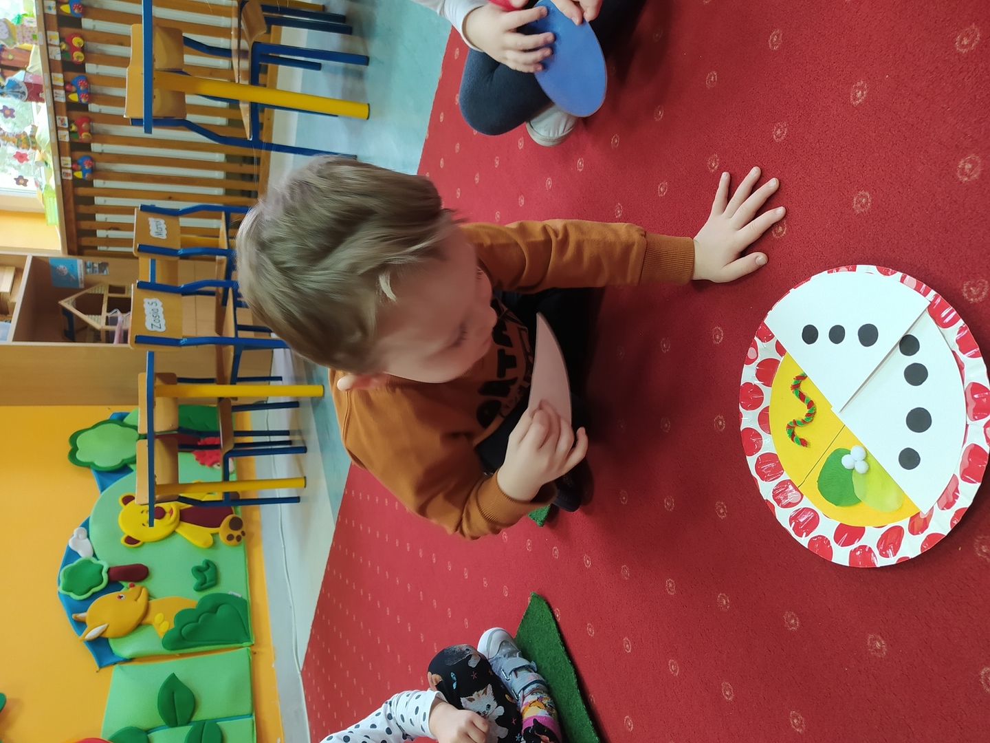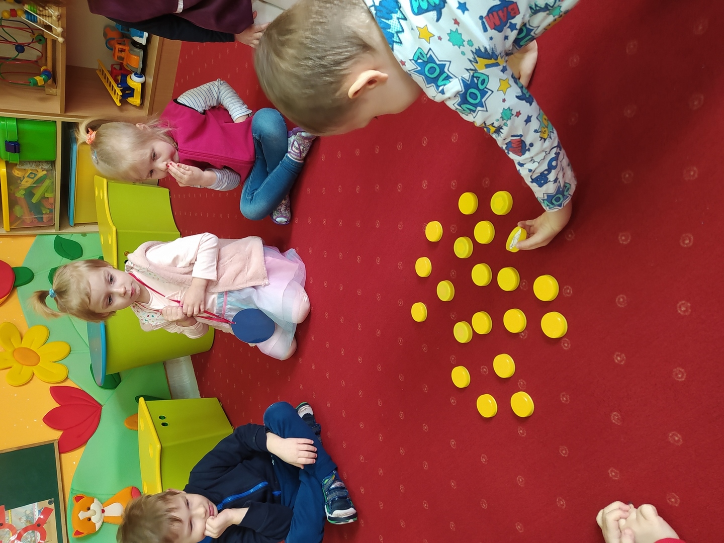Przyjście nowej pory roku – wiosny jest świetną okazją do tego, aby wyjaśnić dzieciom, jak duże bogactwo niesie ze sobą budząca się do życia przyroda. Dzieci miały okazje obserwować zmiany zachodzące w najbliższym otoczeniu oraz poznać kwiaty wiosenne, zwierzęta budzące się ze snu zimowego oraz ptaki wracające do Polski wraz z nastaniem cieplejszych dni. Zmieniła się również dekoracja przedszkola z zimowej na wiosenną. W salach przedszkolnych pojawiły się kąciki przyrody z kwiatami wiosennymi oraz posadzonym przez dzieci owsem. Jednak to nie wszystko, ponieważ w przeciągu ostatnich dwóch tygodni Smerfy nauczyły się wielu zabaw paluszkowych, brały udział w różnorodnych formach aktywności ruchowych i zabawach rozwijających percepcje wzrokową oraz słuchową, które związane były z wiosennymi zjawiskami pogodowymi oraz kwiatami i zwierzętami wiosennymi. Oglądały bajkę dotyczącą marcowej pogody. Dowiedziały się, jak wygląda cykl rozwojowy motyla, a także układały historyjkę obrazkową dotycząca ich rozwoju. Nie zabrakło, także prac plastycznych, dotyczących zbliżającej się dużymi krokami wiosny („W marcu jak w garncu”, „Kolorowe motylki”, „Tulipany”).