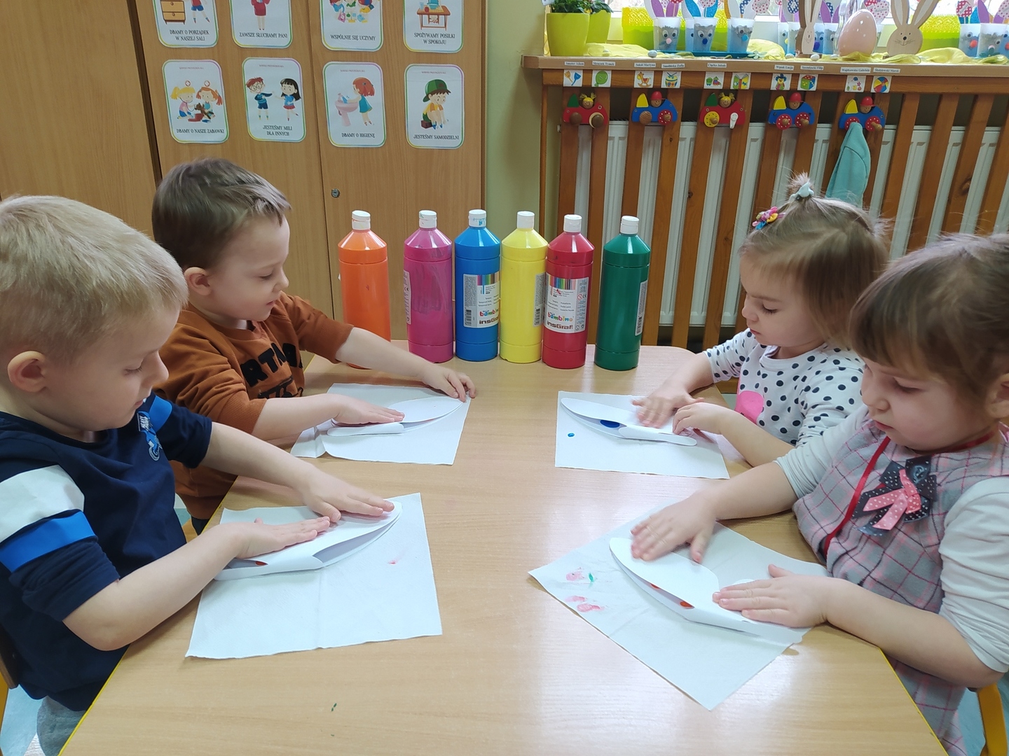 Przyjście nowej pory roku – wiosny jest świetną okazją do tego, aby wyjaśnić dzieciom, jak duże bogactwo niesie ze sobą budząca się do życia przyroda. Dzieci miały okazje obserwować zmiany zachodzące w najbliższym otoczeniu oraz poznać kwiaty wiosenne, zwierzęta budzące się ze snu zimowego oraz ptaki wracające do Polski wraz z nastaniem cieplejszych dni. Zmieniła się również dekoracja przedszkola z zimowej na wiosenną. W salach przedszkolnych pojawiły się kąciki przyrody z kwiatami wiosennymi oraz posadzonym przez dzieci owsem. Jednak to nie wszystko, ponieważ w przeciągu ostatnich dwóch tygodni Smerfy nauczyły się wielu zabaw paluszkowych, brały udział w różnorodnych formach aktywności ruchowych i zabawach rozwijających percepcje wzrokową oraz słuchową, które związane były z wiosennymi zjawiskami pogodowymi oraz kwiatami i zwierzętami wiosennymi. Oglądały bajkę dotyczącą marcowej pogody. Dowiedziały się, jak wygląda cykl rozwojowy motyla, a także układały historyjkę obrazkową dotycząca ich rozwoju. Nie zabrakło, także prac plastycznych, dotyczących zbliżającej się dużymi krokami wiosny („W marcu jak