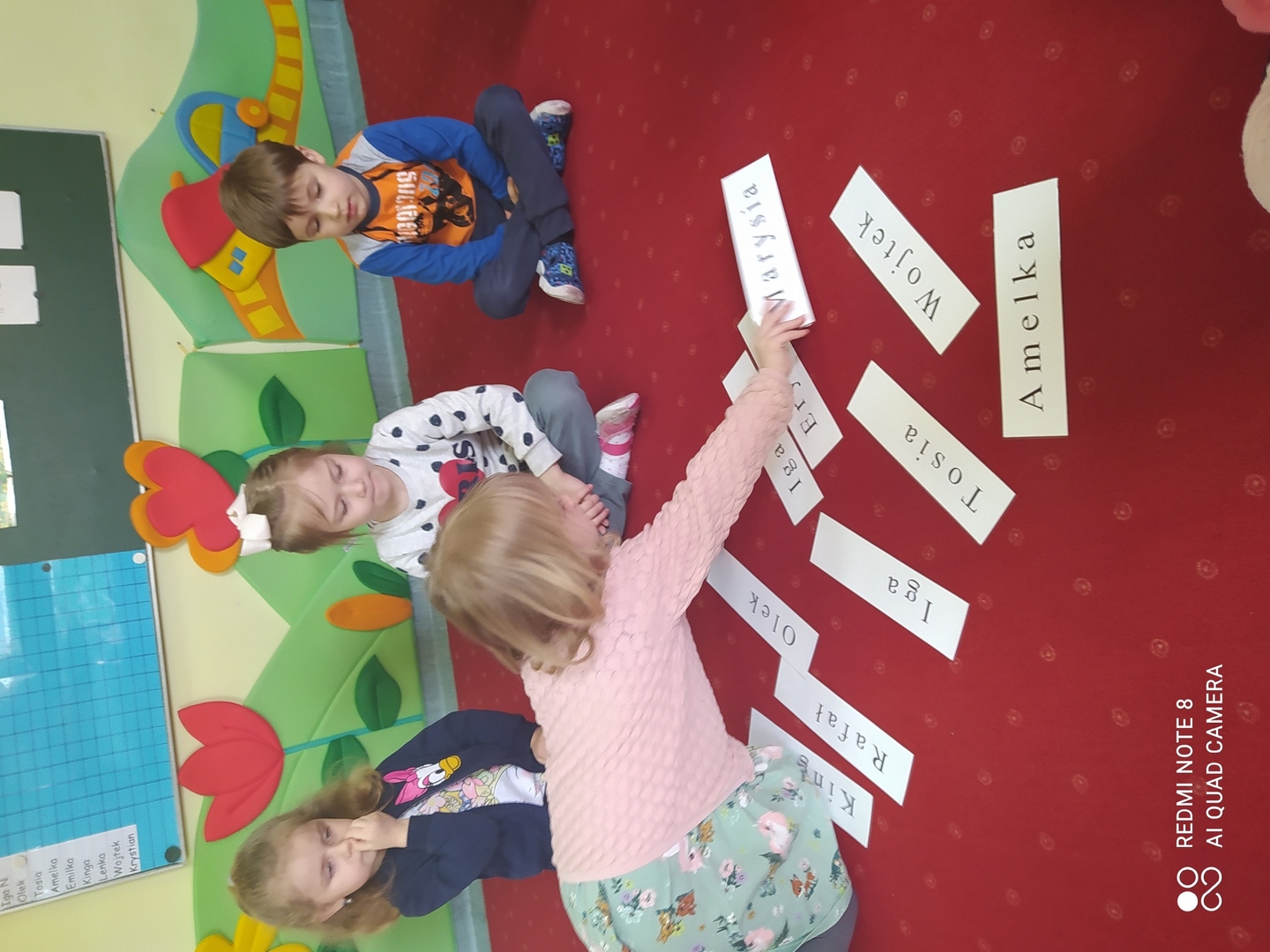 Początek marca przyniósł Gumisiom nowe wyzwania, ale jedno z nich okazało się szczególnie istotne. Nasze przedszkolaki rozpoczęły przygodę z literkami! Tajniki niezwykłej dla wielu małych umysłów umiejętności czytania, Gumisie poznają wg znanej i cenionej przez wielu pedagogów Odimiennej Metody Nauki Czytania Ireny Majchrzak. Dzieci z wielkim zainteresowaniem współtworzyły swoje wizytówki, następnie próbowały rozpoznawać je wśród innych. Podczas zabaw z entuzjazmem odnajdywały kartoniki ze swoim imieniem, które lubią skrywać się w różnych zakamarkach w naszej sali. Przedszkolaki bardzo polubiły "literkowe zabawy" i czytanie globalne imion swoich, (a nawet kolegów) , dla niektórych to już "luzik" 😉 jak to skwitowały nasze zdolne Gumisie! 😊😊😊