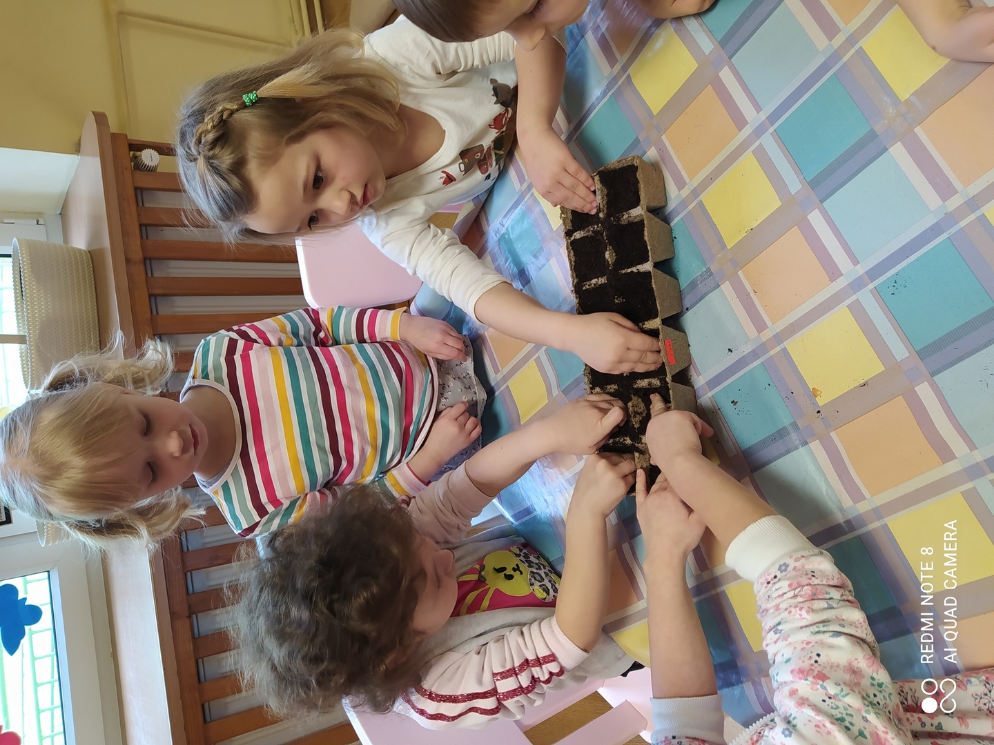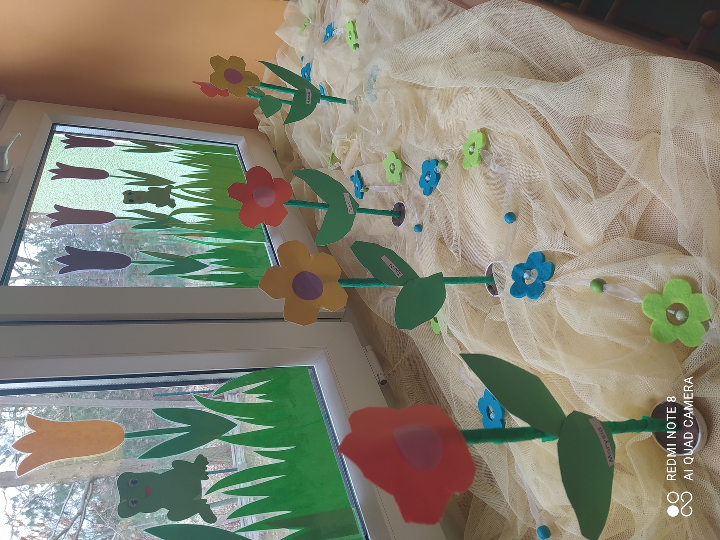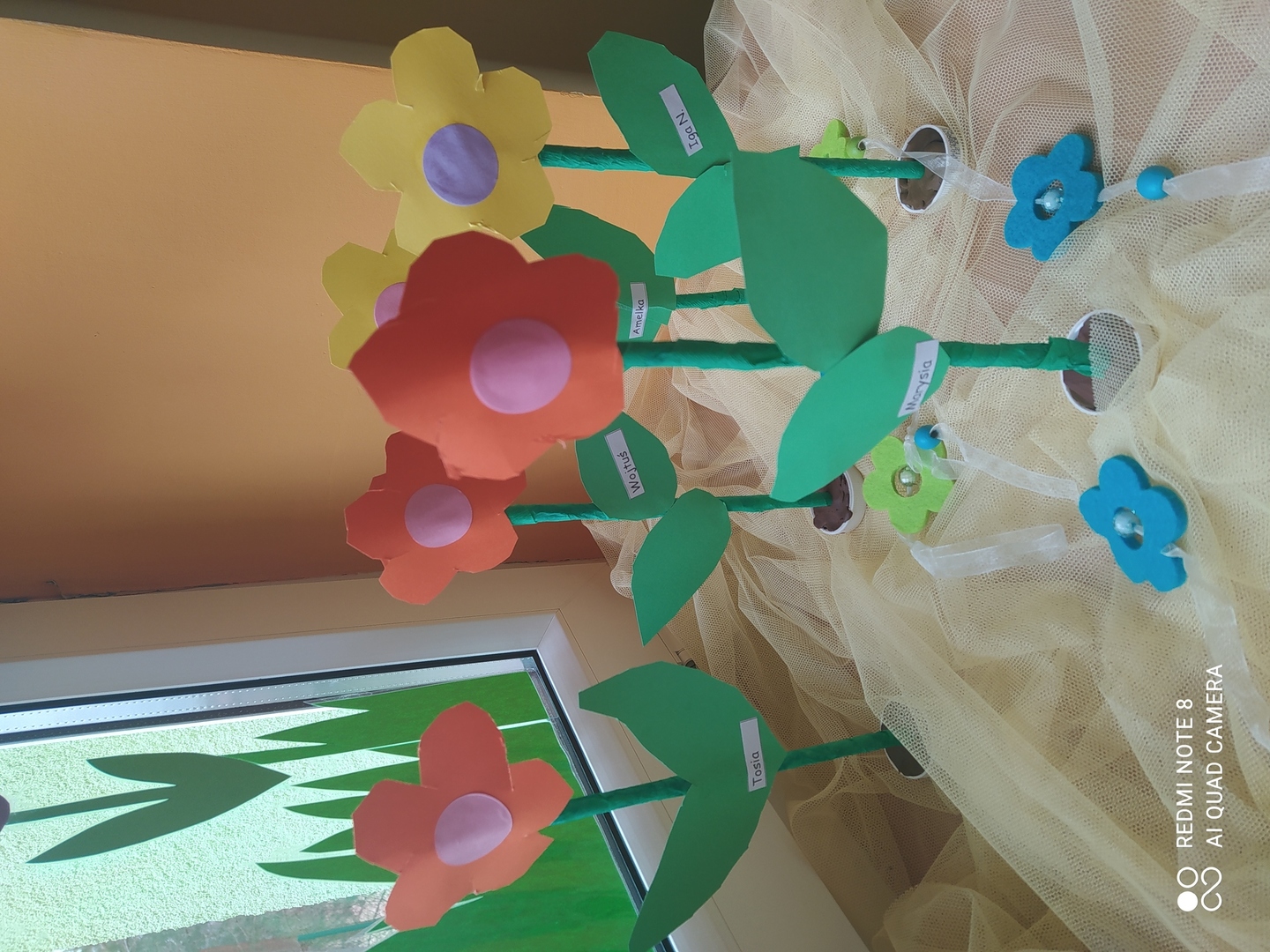 31.03.2021r. Nie mogąc doczekać się żywych wiosennych kwiatów nasze Gumisie postanowiły "wyprodukować" swoje własne. Najpierw stworzyły kwiatową dekorację z kolorowego kartonu, słomek, bibuły, plasteliny i zakrętek - i od razu w naszej sali zrobiło się wiosennie. Podczas zajęć rozmawialiśmy o tym, czego do wzrostu potrzebują rośliny, jak prawidłowo należy je pielęgnować a kilka dni później dzieci zamieniły się w prawdziwych ogrodników!