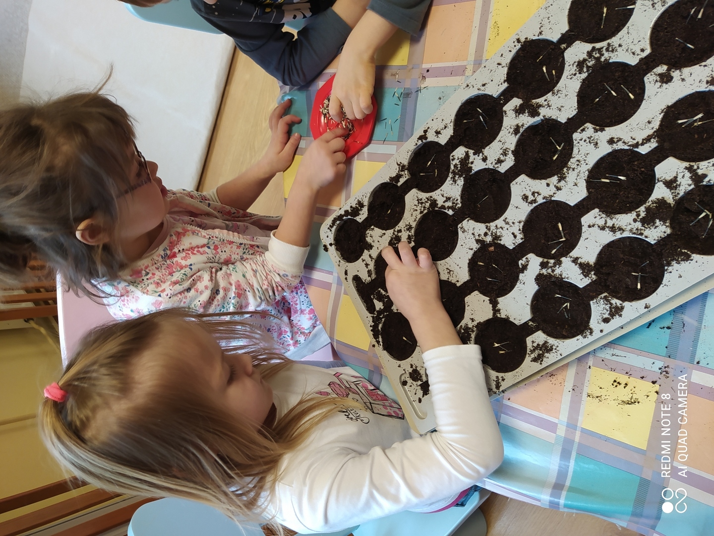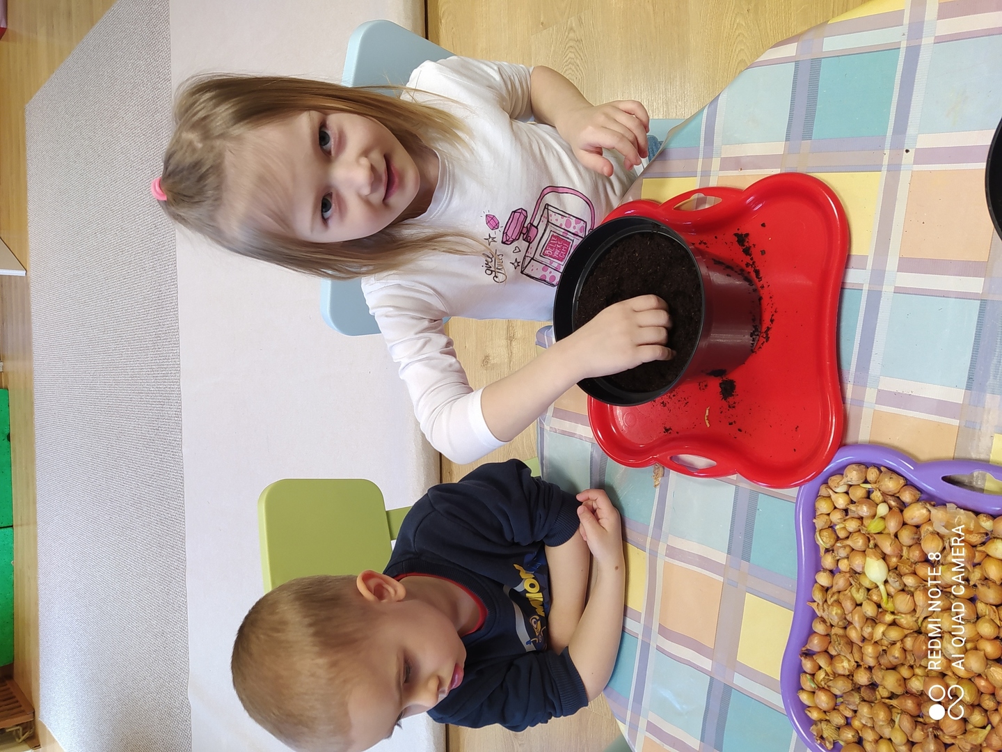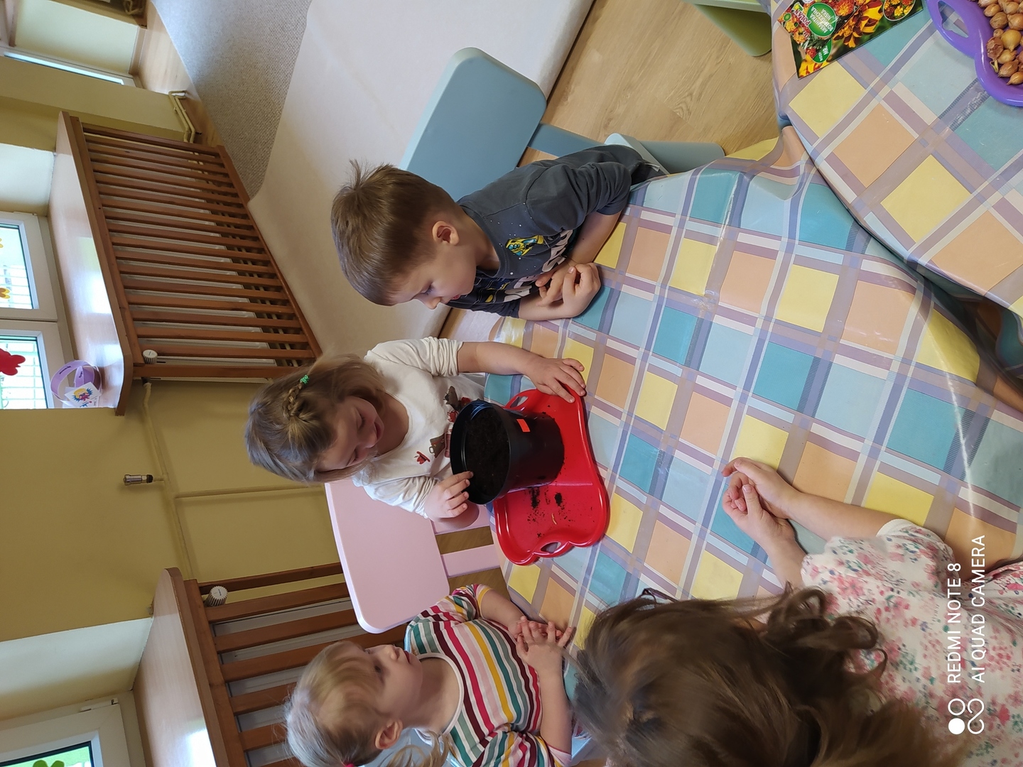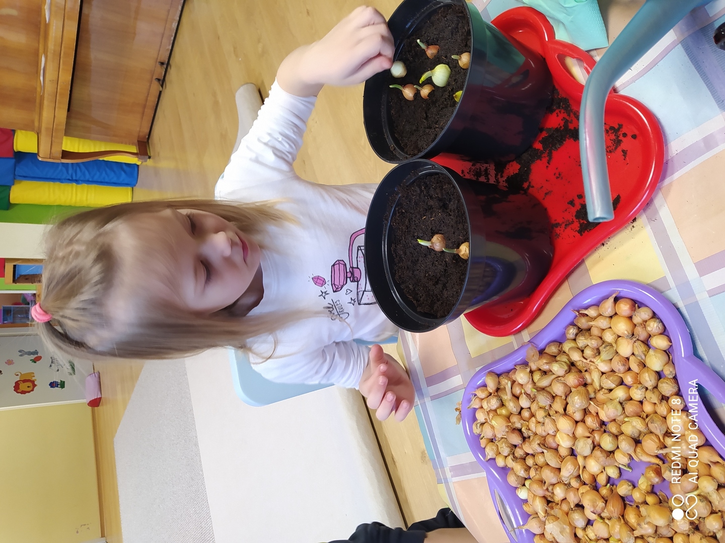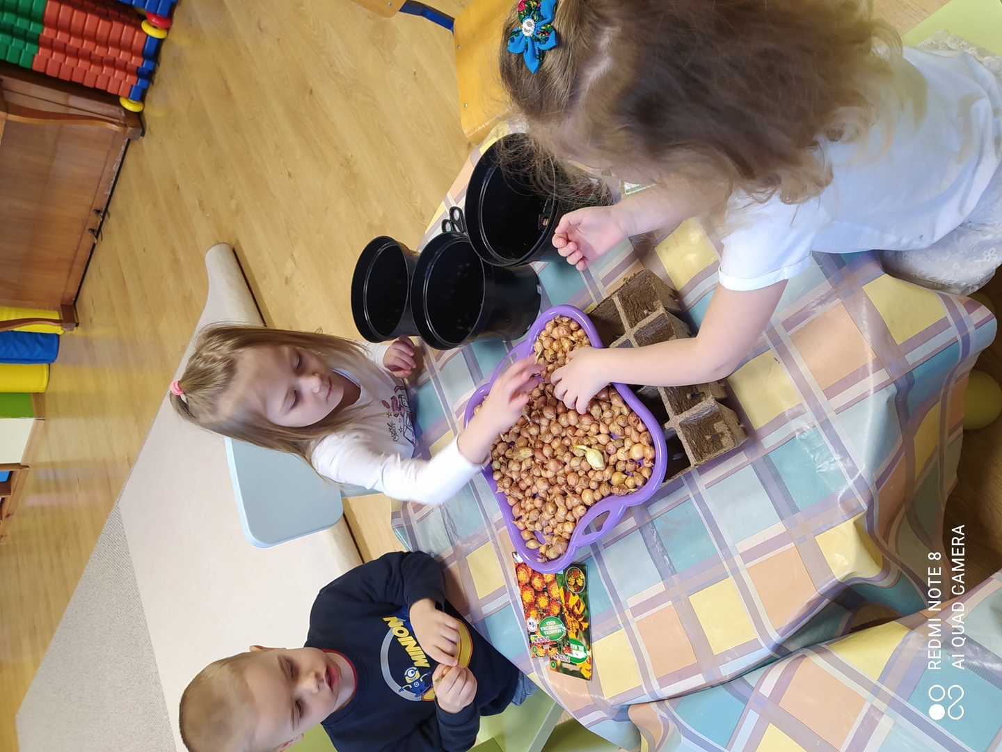 Przedszkolaki z ochotą współpracowały ze sobą podczas napełniania doniczek ziemią, sadzenia cebulek na szczypiorek, wysiewania nasion warzyw i kwiatów oraz podlewania. A po skończonych zajęciach równie chętnie pomagały przy porządkowaniu sali. Brawo Gumisie! Teraz z niecierpliwością będziemy obserwować zmiany zachodzące w naszym kąciku przyrody i czekać na owoce naszej pracy :)