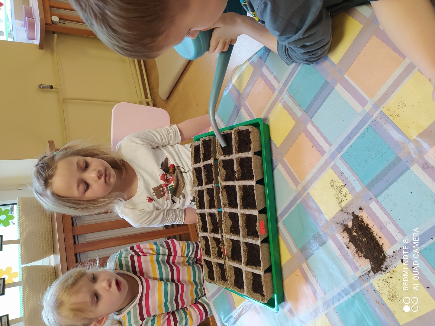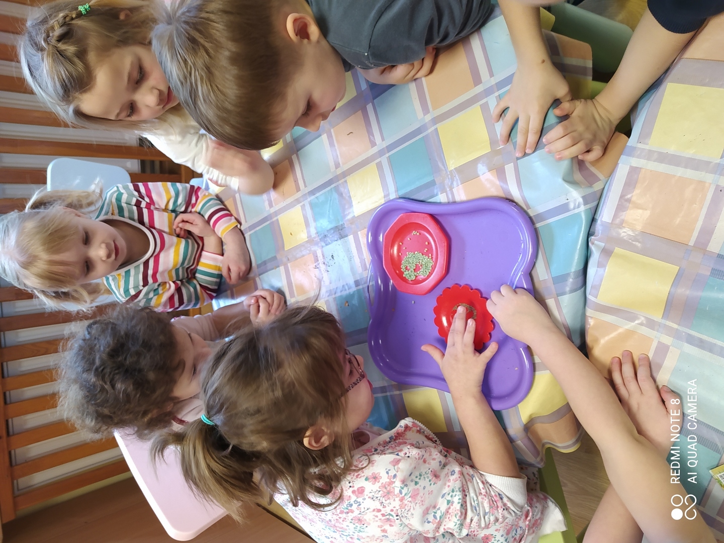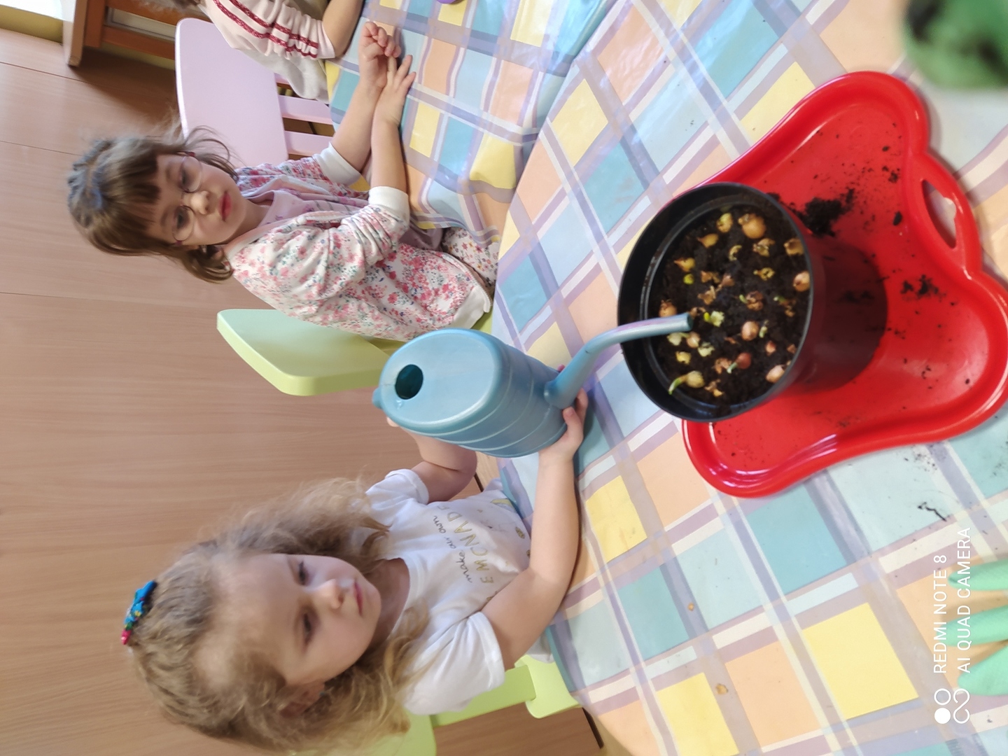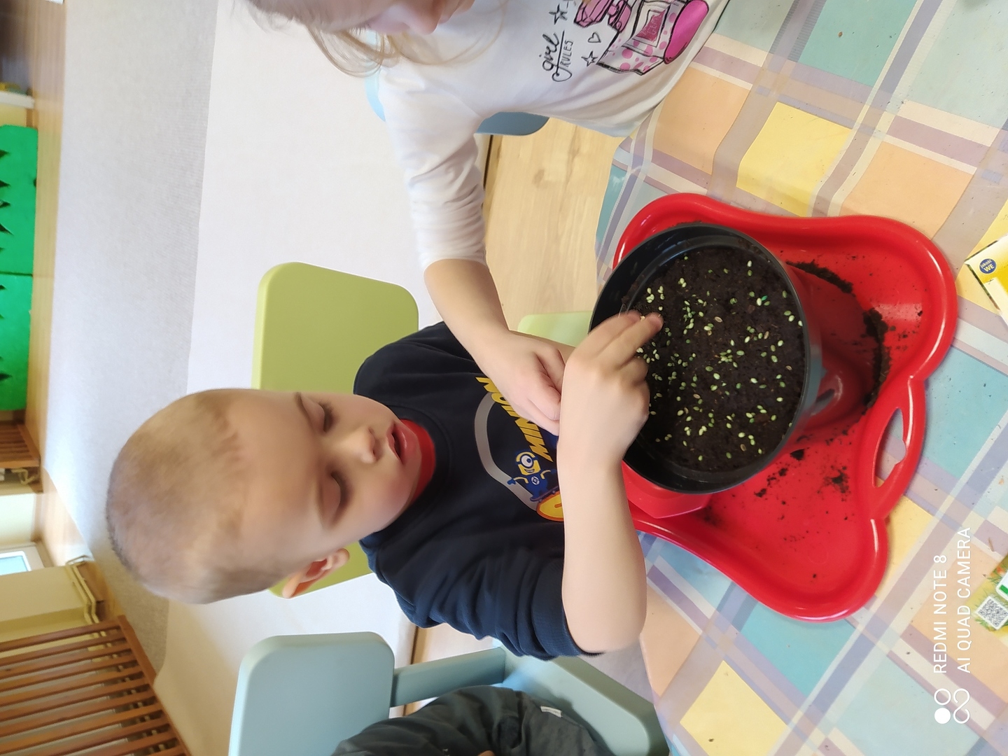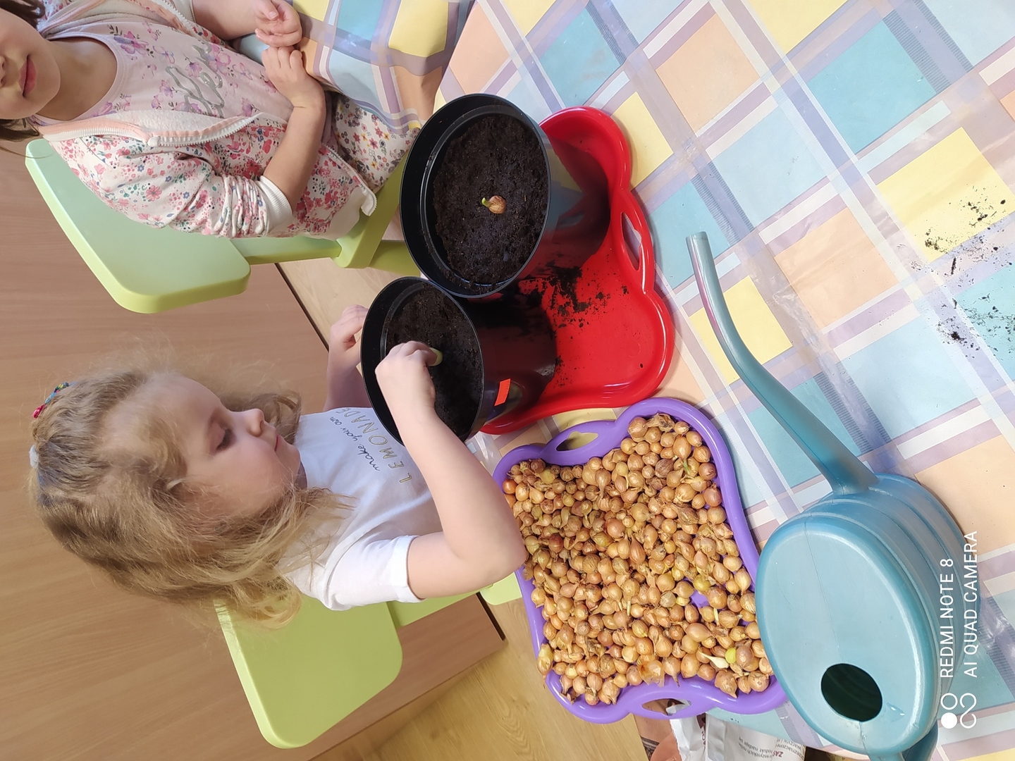 Przedszkolaki z ochotą współpracowały ze sobą podczas napełniania doniczek ziemią, sadzenia cebulek na szczypiorek, wysiewania nasion warzyw i kwiatów oraz podlewania. A po skończonych zajęciach równie chętnie pomagały przy porządkowaniu sali. Brawo Gumisie! Teraz z niecierpliwością będziemy obserwować zmiany zachodzące w naszym kąciku przyrody i czekać na owoce naszej pracy :)