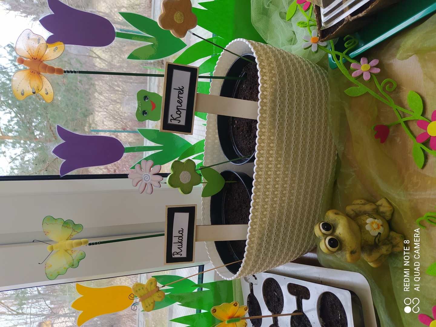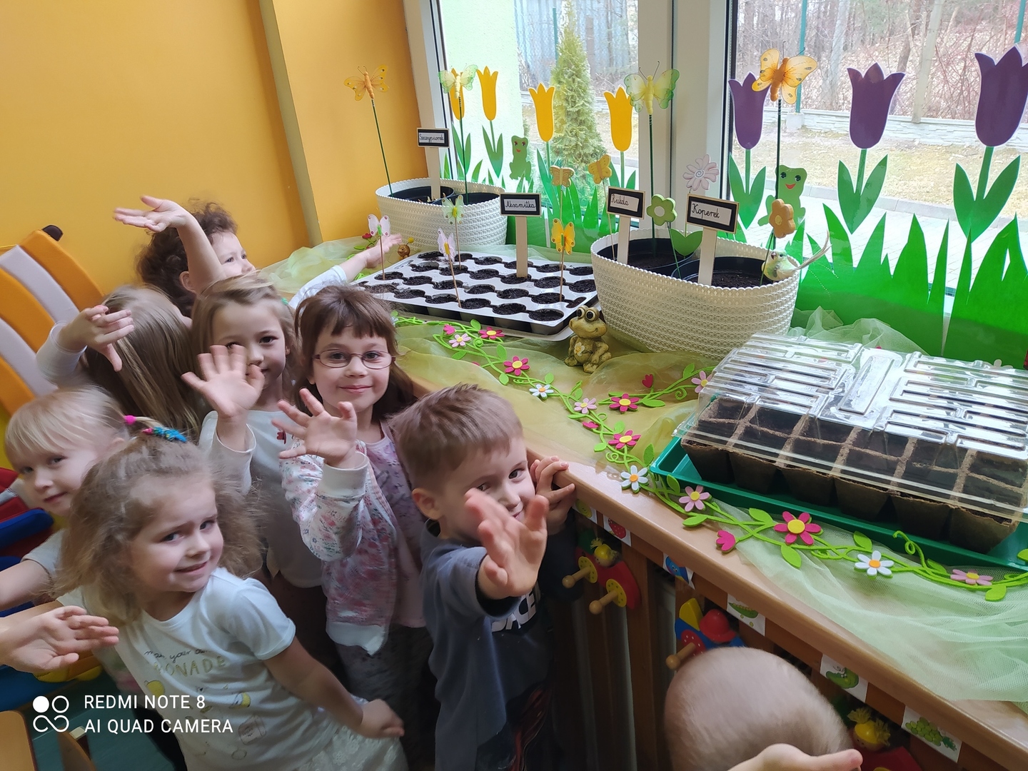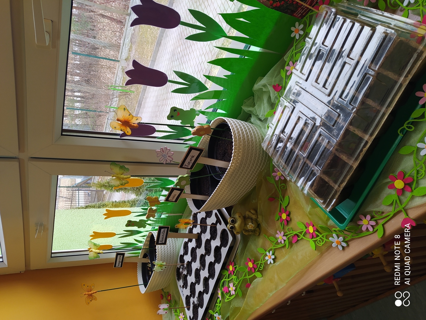 31.03.2021r. Nie mogąc doczekać się żywych wiosennych kwiatów nasze Gumisie postanowiły "wyprodukować" swoje własne. Najpierw stworzyły kwiatową dekorację z kolorowego kartonu, słomek, bibuły, plasteliny i zakrętek - i od razu w naszej sali zrobiło się wiosennie. Podczas zajęć rozmawialiśmy o tym, czego do wzrostu potrzebują rośliny, jak prawidłowo należy je pielęgnować a kilka dni później dzieci zamieniły się w prawdziwych ogrodników! Przedszkolaki z ochotą współpracowały ze sobą podczas napełniania doniczek ziemią, sadzenia cebulek na szczypiorek, wysiewania nasion warzyw i kwiatów oraz podlewania. A po skończonych zajęciach równie chętnie pomagały przy porządkowaniu sali. Brawo Gumisie! Teraz z niecierpliwością będziemy obserwować zmiany zachodzące w naszym kąciku przyrody i czekać na owoce naszej pracy :)