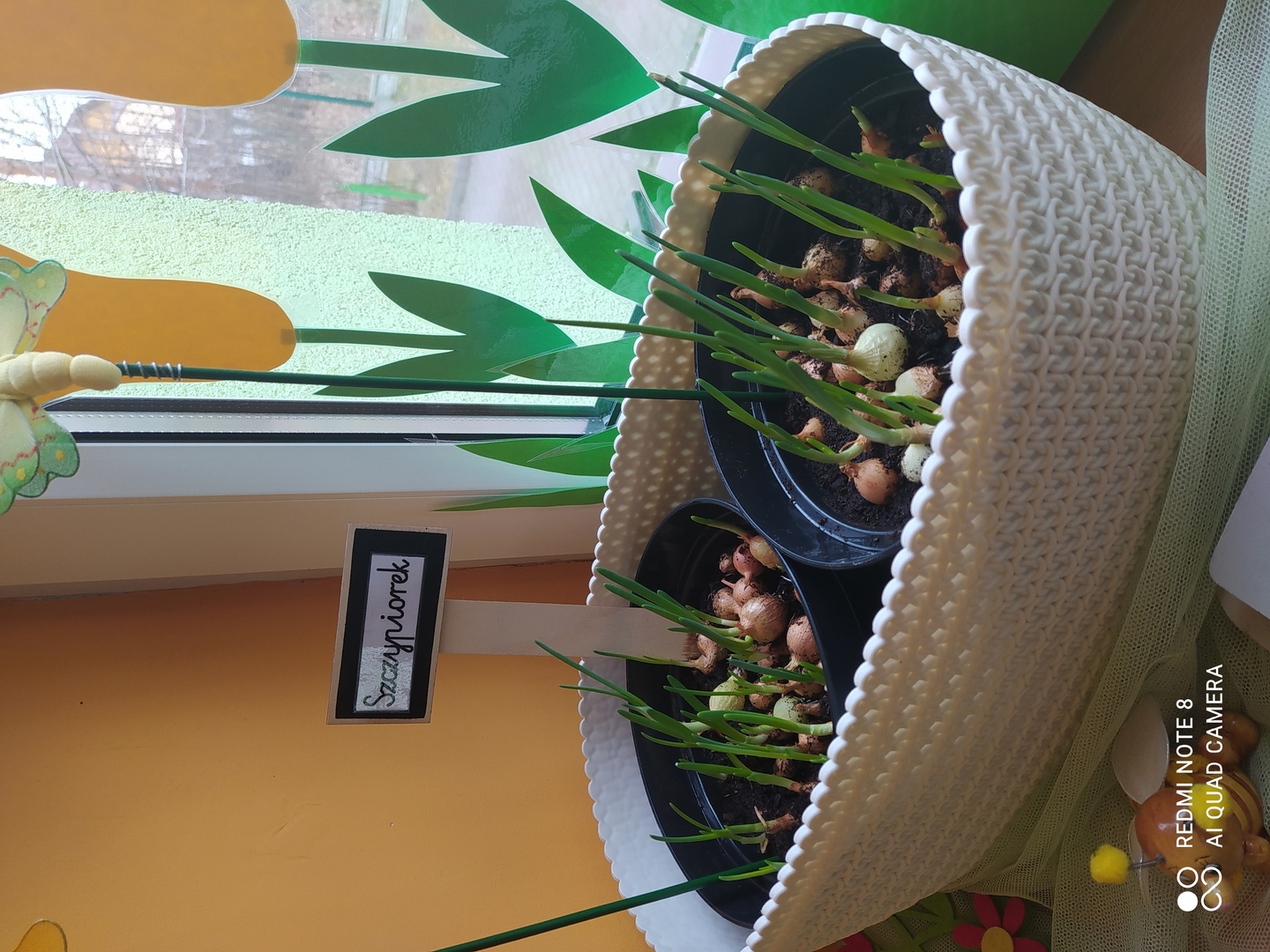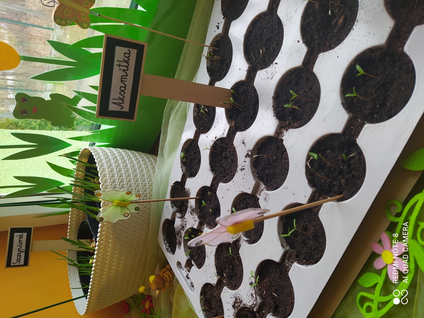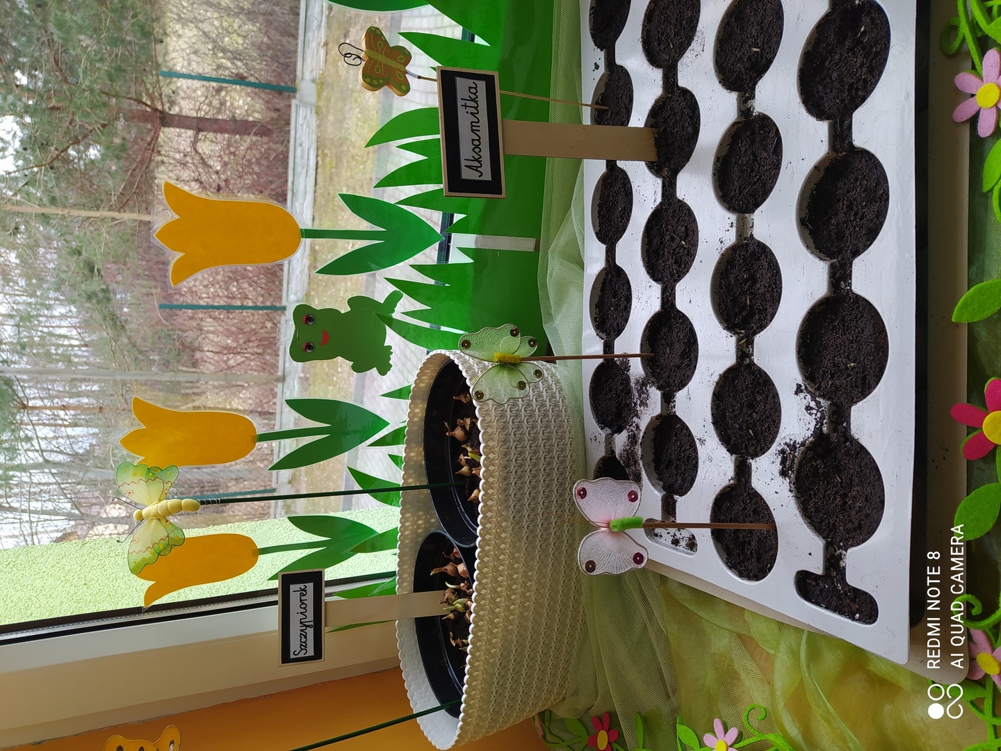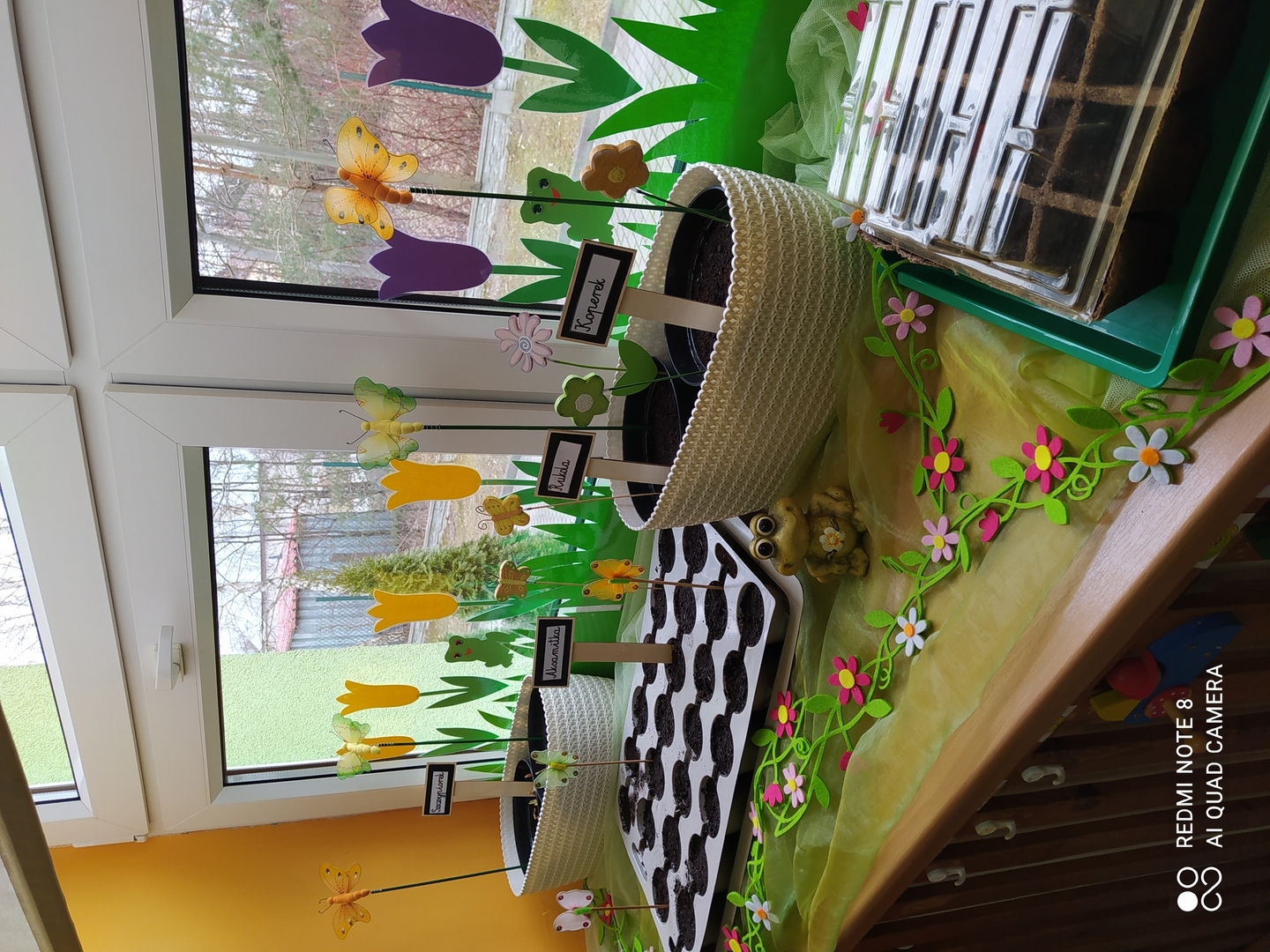 31.03.2021r. Nie mogąc doczekać się żywych wiosennych kwiatów nasze Gumisie postanowiły "wyprodukować" swoje własne. Najpierw stworzyły kwiatową dekorację z kolorowego kartonu, słomek, bibuły, plasteliny i zakrętek - i od razu w naszej sali zrobiło się wiosennie. Podczas zajęć rozmawialiśmy o tym, czego do wzrostu potrzebują rośliny, jak prawidłowo należy je pielęgnować a kilka dni później dzieci zamieniły się w prawdziwych ogrodników! Przedszkolaki z ochotą współpracowały ze sobą podczas napełniania doniczek ziemią, sadzenia cebulek na szczypiorek, wysiewania nasion warzyw i kwiatów oraz podlewania. A po skończonych zajęciach równie chętnie pomagały przy porządkowaniu sali. Brawo Gumisie! Teraz z niecierpliwością będziemy obserwować zmiany zachodzące w naszym kąciku przyrody i czekać na owoce naszej pracy :)