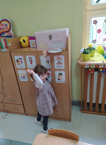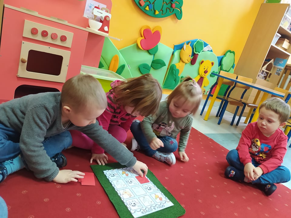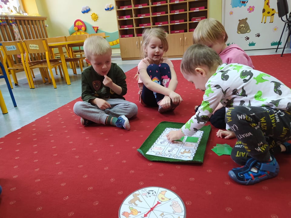 W miesiącu marcu Smerfy wraz z żabką Polly wybrały się na niezwykłą wycieczkę na farmę, gdzie poznały nazwy zwierząt w języku angielskim. Temat ten bardzo przypadł dzieciom do gustu, a dzięki ciekawym propozycją zabaw i gier, nasi milusińscy nie tylko poszerzyli zasób słownictwa lecz także opanowali umiejętność stosowania się do zasad gry, umiejętność zgodnej współpracy z innymi dziećmi oraz umiejętność czekania na swoją kolej.