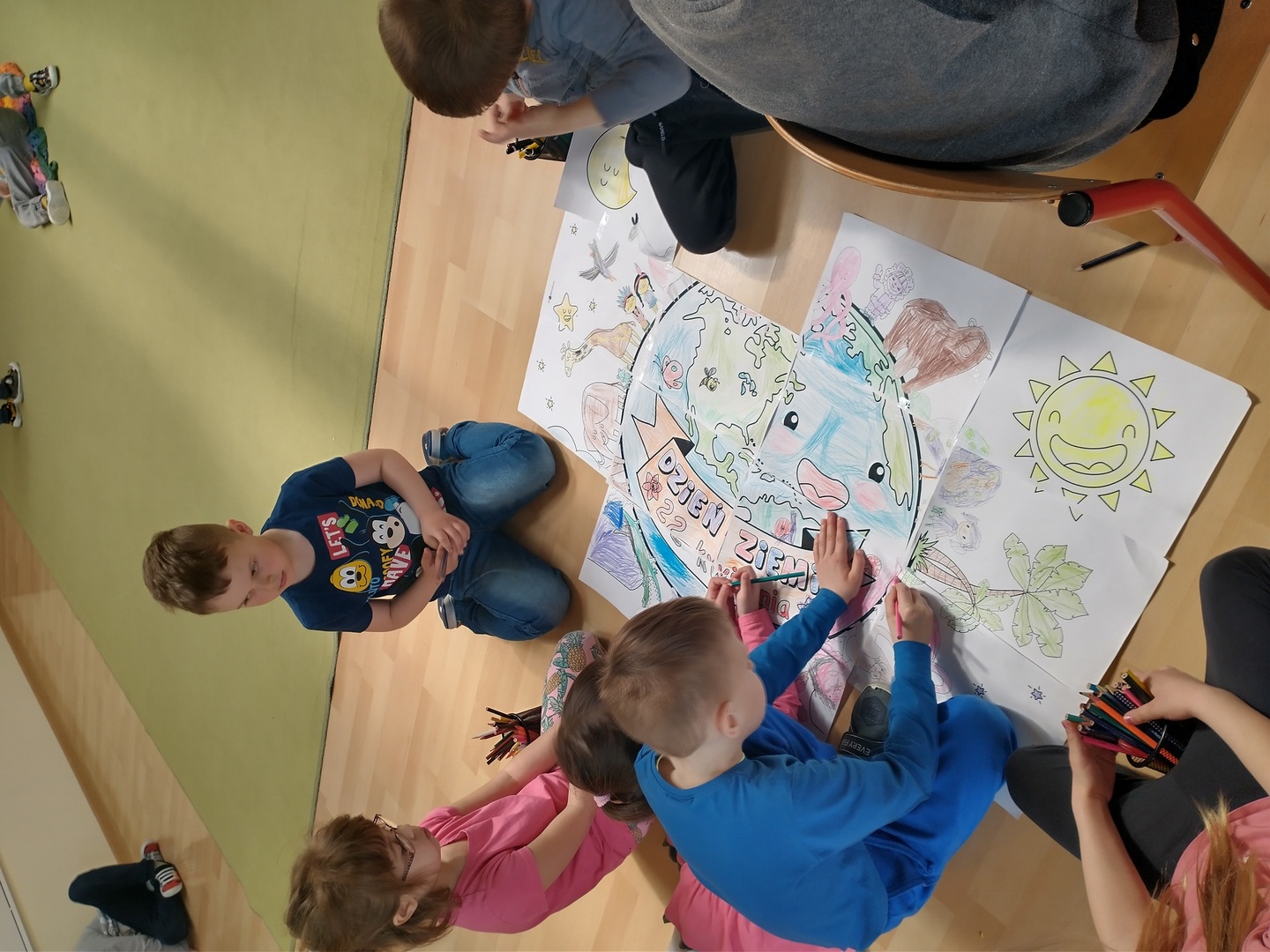 Co roku 22 kwietnia świętujemy Światowy dzień Ziemi. Tego dnia dzieci z grupy Muminki dowiedziały się w jaki sposób możemy chronić przyrodę. Jak drobne gesty, takie jak segregowanie śmieci, wyłączanie sprzętów z których nie korzystamy oraz oszczędzanie wody pokazuje naszej planecie, że o nią dbamy.