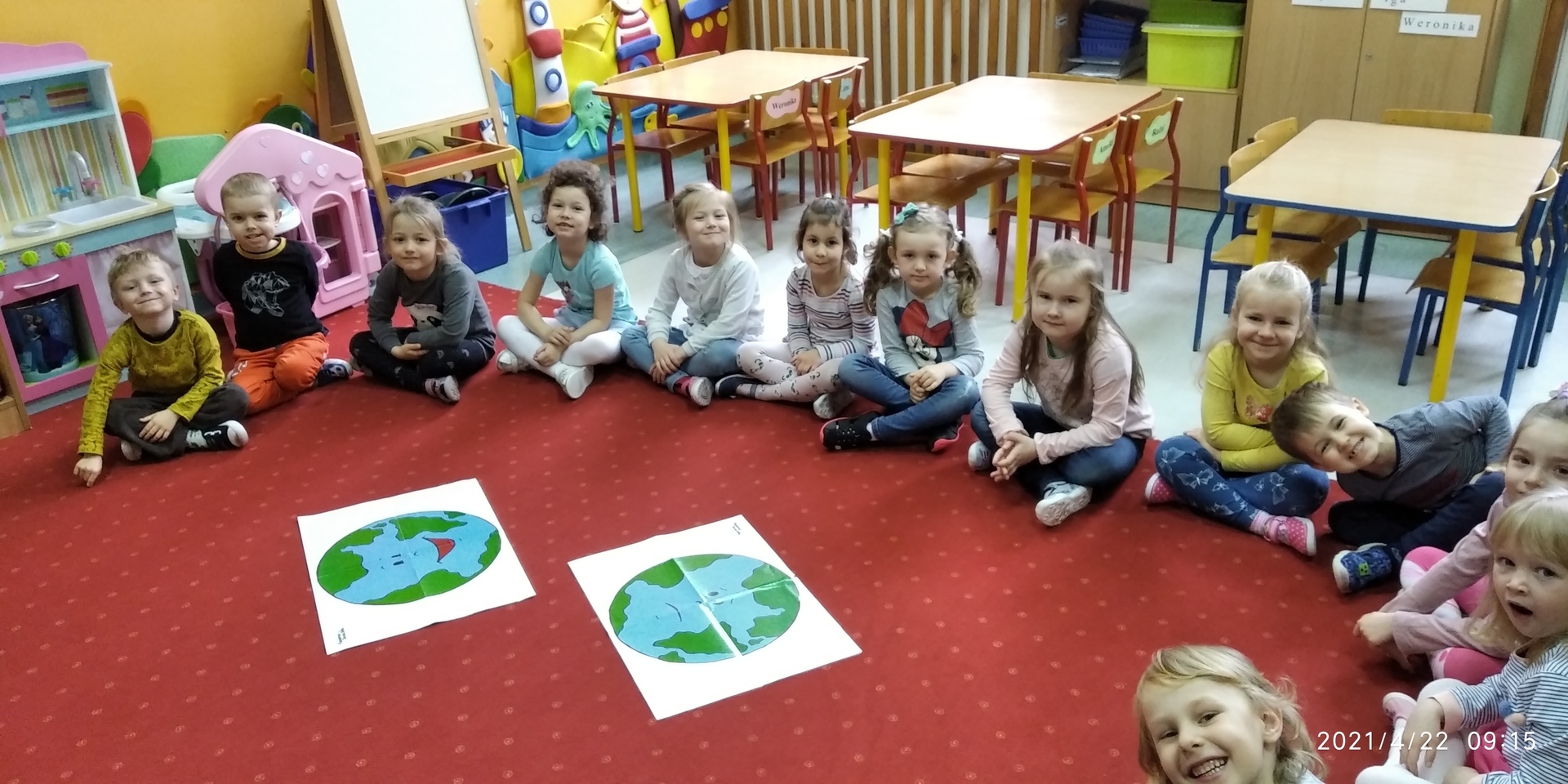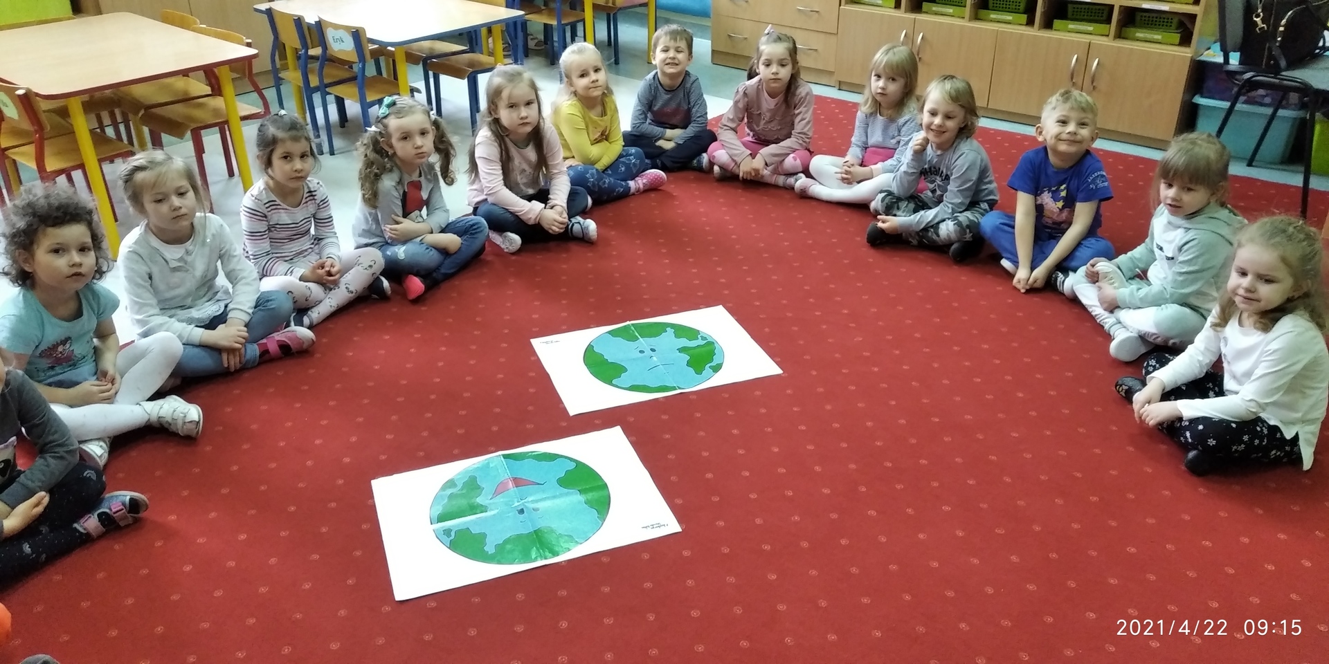 Co roku 22 kwietnia, na całym świecie obchodzone jest wyjątkowe święto – Międzynarodowy Dzień Ziemi. W tym ważnym dniu przedszkolaki z grupy Gumisie uczyły się, jak żyć ekologicznie, podkreślały to jak ważna jest planeta, na której żyjemy i otaczająca nas przyroda. Szczególnie zastanawiały się jak chronić Ziemię, a także, jak jej pomóc, aby ten wspólny dom stał się czysty, zdrowy i piękny. Przyroda to nieodłączny element naszego życia, więc dbanie o nią jest naszym obowiązkiem. Dlatego Gumisie utrwaliły zasady recyklingu oraz dowiedziały się jak ważna jest postawa ekologiczna. Przedszkolaki w praktyczny sposób mogły wykorzystać swoją wiedzę na temat segregacji śmieci wrzucając odpady do odpowiednich pojemników. Działania te zostały podsumowane medalami „ strażnika przyrody”.