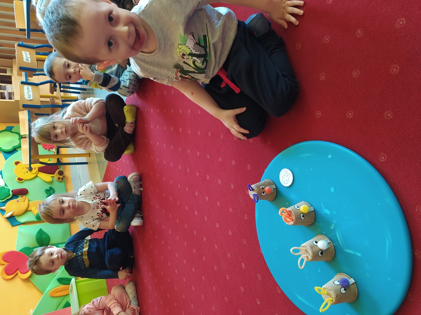 Na widok Smerfów wielce się uradowała, uśmiechem wszystkich przywitała. W fotografa dzieci zamieniła, obrazki łapać packą uczyła, a i w pisankową zabawę w chowanego grać nauczyła. Gry rozstania z kwietniem przyszła pora, o pomoc małe zajączki poprosiła. Sama na łąkę się wybrała, na majowe zabawy inspiracji szukała.