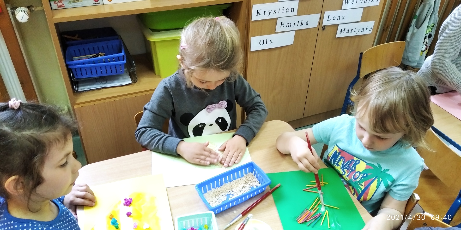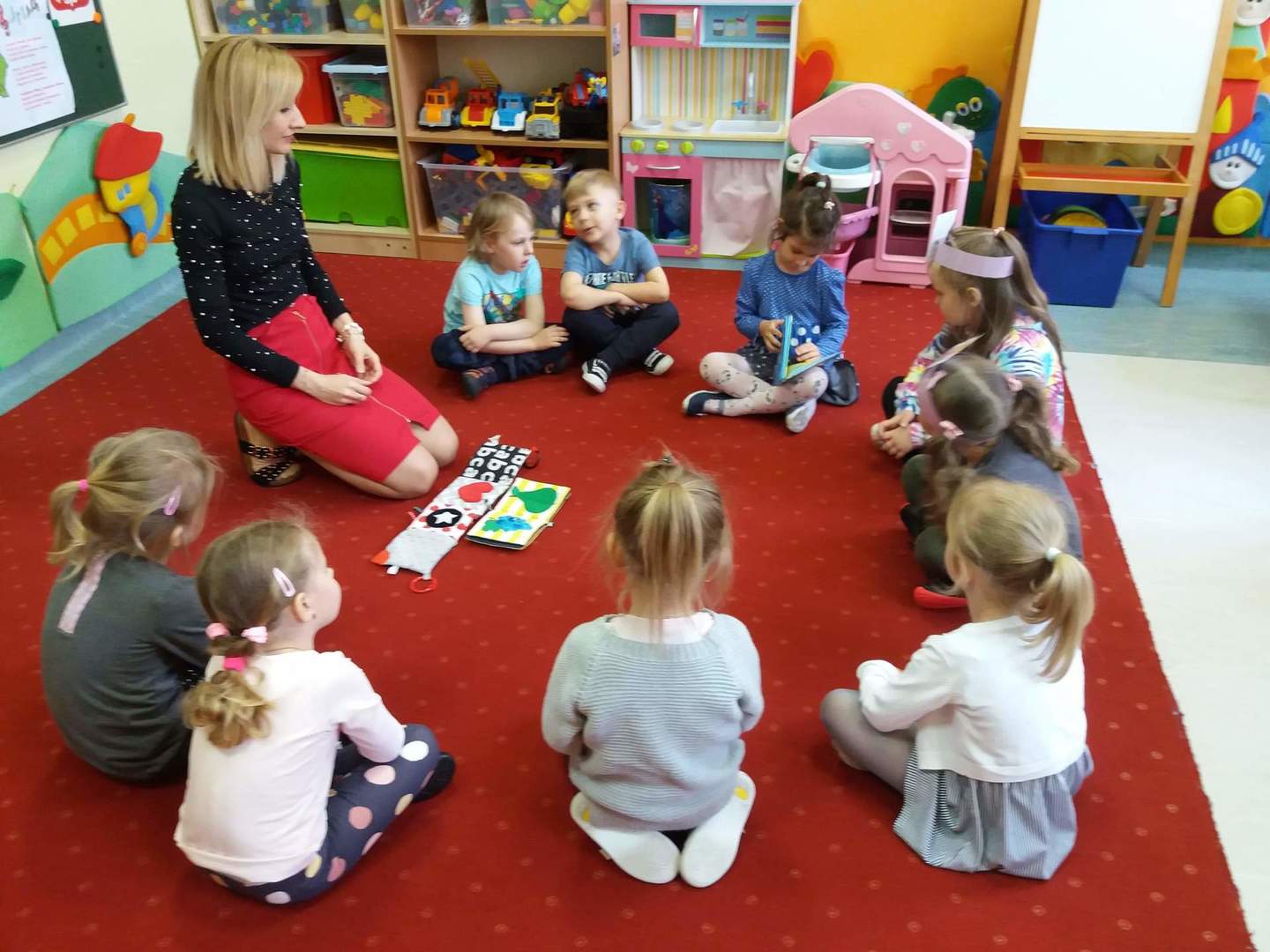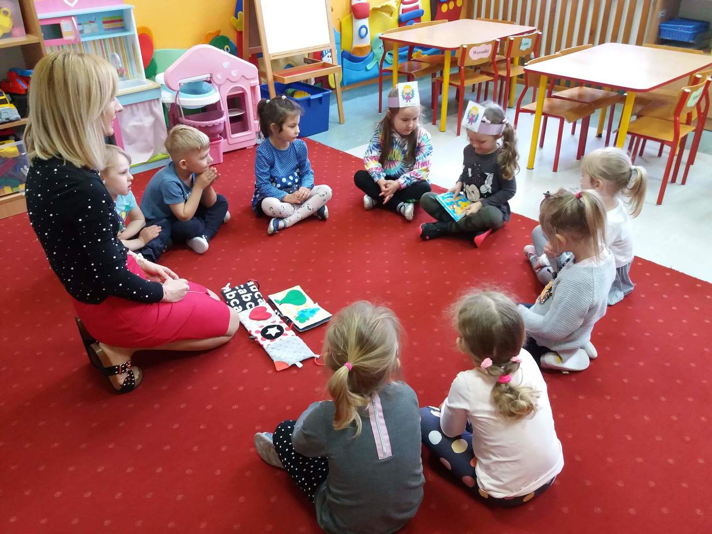 30 kwietnia Gumisie poznały pojęcie „ sensoryczna książeczka”. Oglądały różne książki z elementami sensorycznymi i opisywały ich wygląd. Zwróciły uwagę na to, że wydają dźwięki, piszczą, dzwonią, posiadają rzepy, zamek są wykonane z różnych faktur. Po prezentacji z wielką ochotą przedszkolaki zabrały się za wykonanie Gumisiowych książeczek.