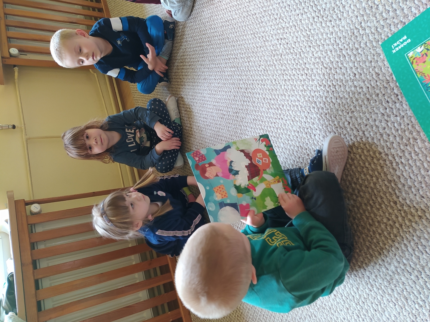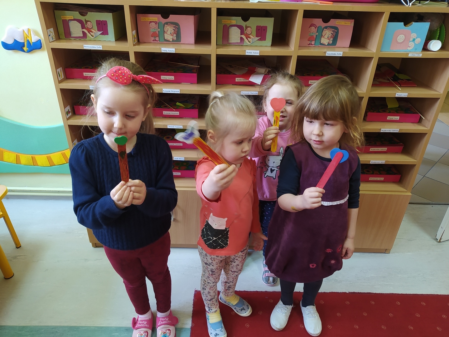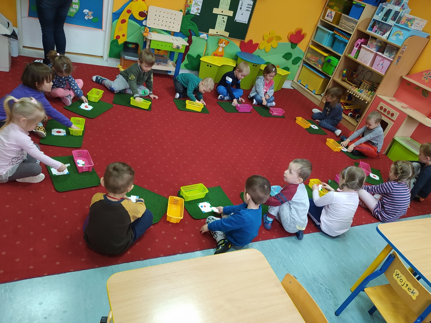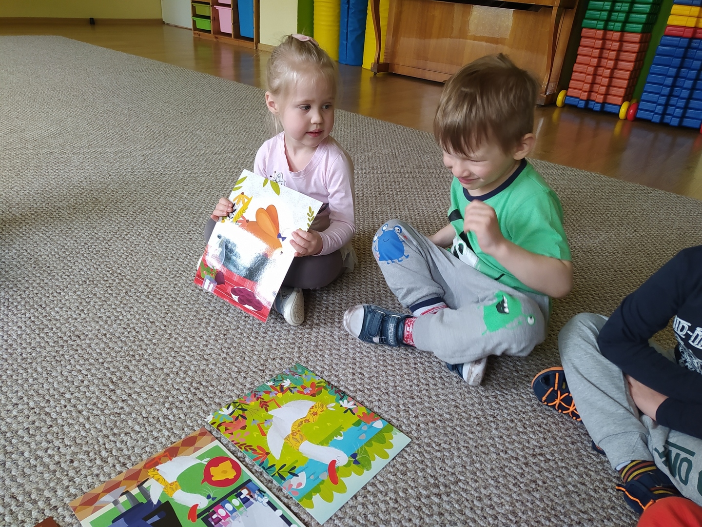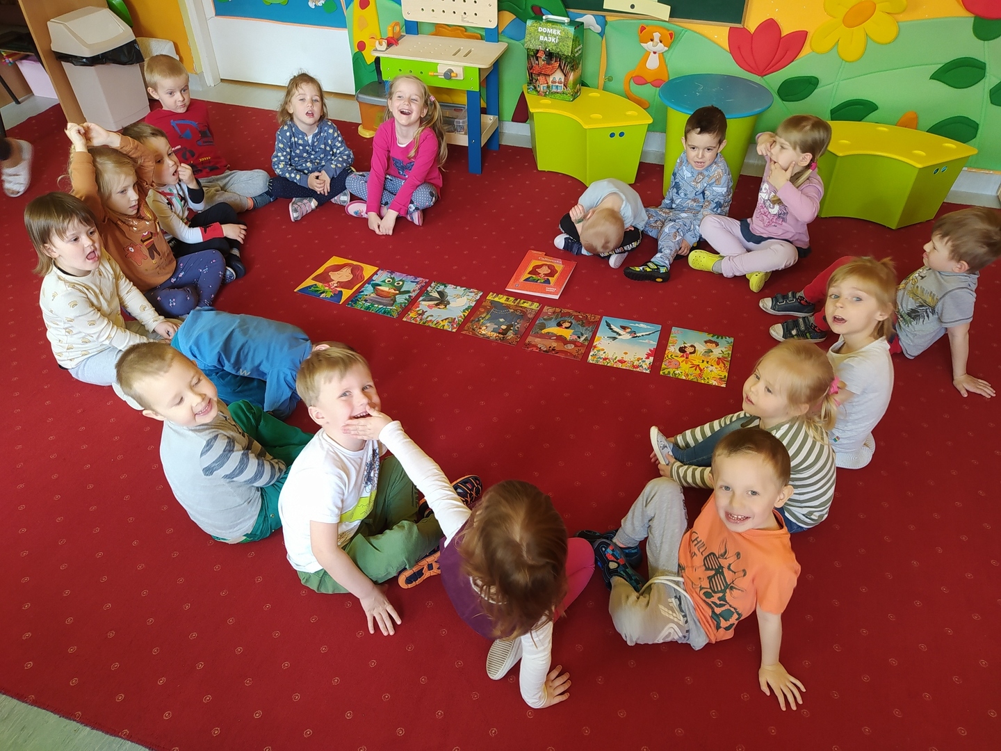 Smerfy nie mogły się jednak zdecydować i przez cały miniony tydzień rozmawiały o książkach oraz poznawały znane bajki dziecięce, do których następnie układały historyjki obrazkowe. Maluszki poznały zasady oglądania książek, bawiły się w rytm piosenek o książkach, klasyfikowały swoje księgozbiory według wybranych przez siebie cech, porównywały liczebność utworzonych zbiorów z książkami. Samodzielnie wykonały także książeczki, zakładki do książek oraz bajkowe liście w formie witraży, którymi ozdobiły magiczne drzewo na gazetce. Wiele emocji wśród dzieci wzbudziły zawody w dmuchaniu koreczków po szlaczkach w książce xxl, a także układanie magicznych kwadracików.