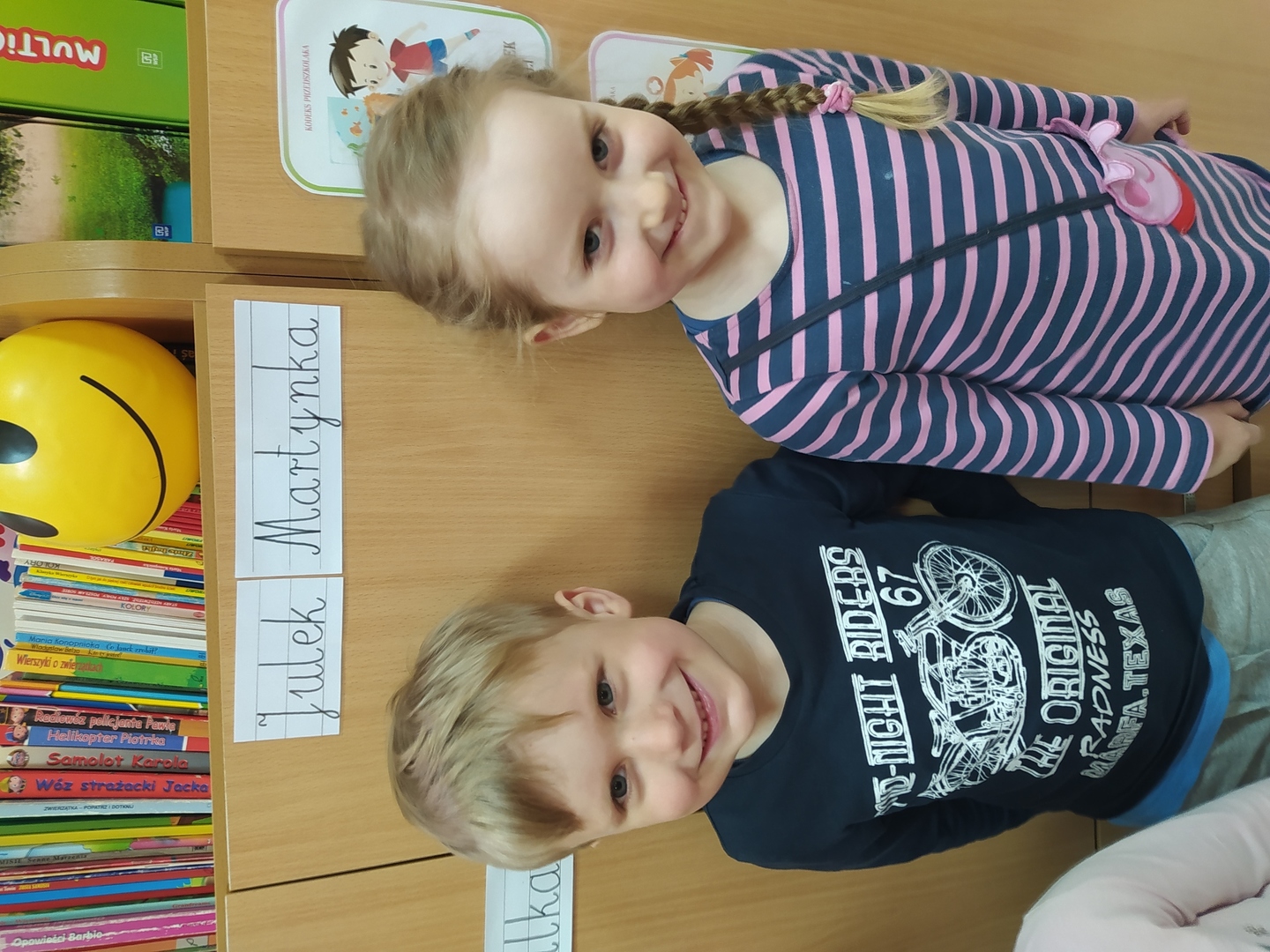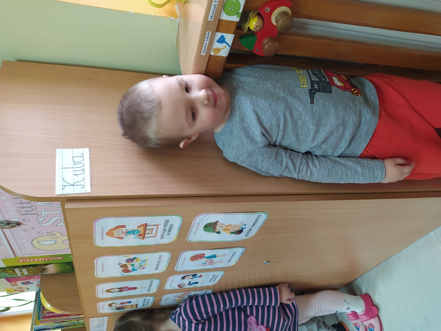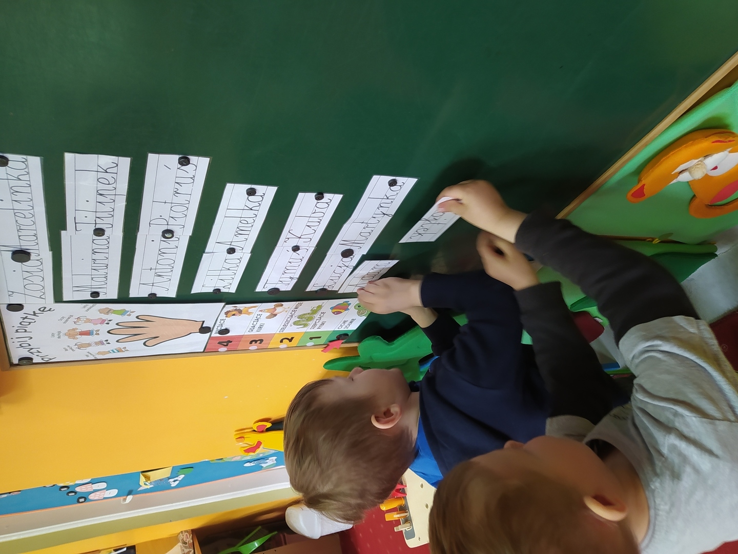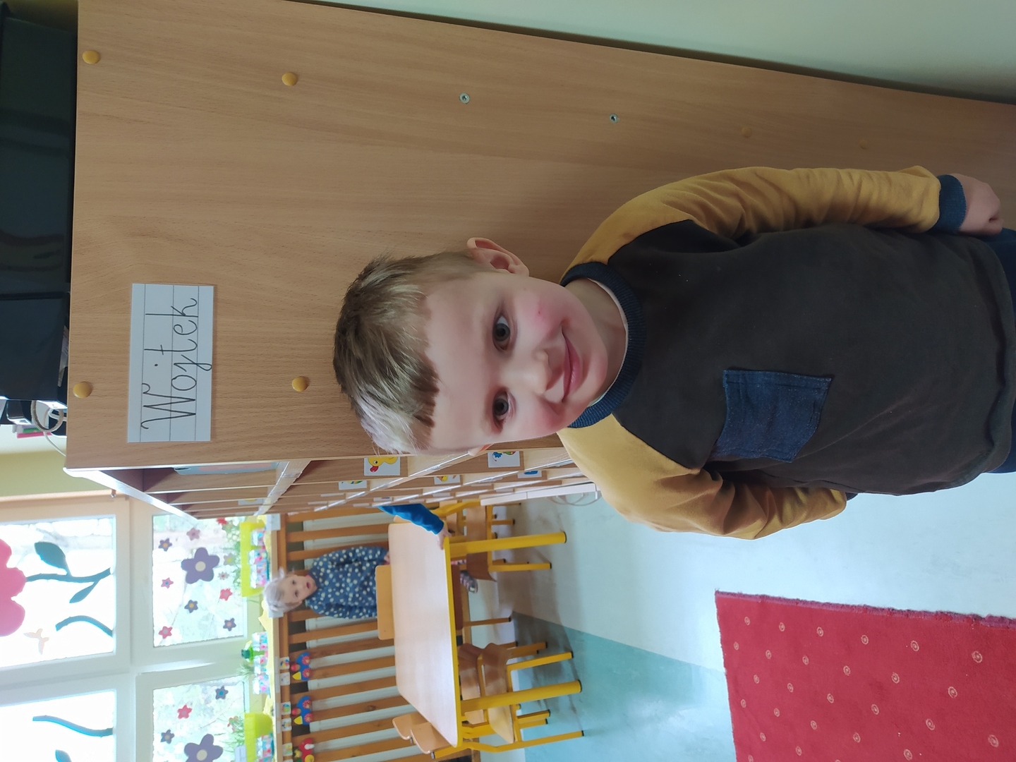My Smerfiki dzielne, jesteśmy już bardzo samodzielne. 1. Kanapki na śniadanie, sami raz w tygodniu przygotowujemy. 2. Ubrać się i rozebrać to dla nas łatwizna. O ubranka dbać też potrafimy i składać się je uczymy, a gdy ciepło nam doskwiera na wieszaki bluzy i sweterki odwieszamy. 3. Prace swoje do teczek sami też wkładamy, na półeczkach pięknie potem je układamy. Pamiętamy nawet o skrzydełek chowaniu i o tym, by imionko już z daleka na teczce widać było. 4. Po zajęciach podkładkę każdy swoją sprzątnąć pamięta. 5. Gdy z taśmy wzory na dywanie wyklejamy, potem wszyscy razem je odklejamy. Kulki z niej duże i małe formujemy, o porządek w sali dbamy, w koszu je umieścić pamiętamy. 6. Kto w przedszkolu, a kto w domu leniuchuje, co dzień sprawdzamy. Imionka nasze utrwalamy, a i kolegów i koleżanek rozpoznawać już nawet się uczymy. 7. W parach pracować się uczymy, z kolegą i koleżanką zgodnie działać toż to sprawa ważna. 8. Sowy trzy pomocą służą nam i kolorem swym podpowiadają co robić będziemy; z panią bawić się – sowa zielona, z kolegą lub koleżanką tworzyć – sowa żółta, czy sami zadanie wykonywać- sowa czerwona. 9. Aby łatwiej było nam, co dzień pomocnika wybieramy. Dzielny on jest, żadne wyzwania straszne nie są mu. Czy koszyków rozdawanie, czy kart pracy dzieciom wręczanie- uśmiech na twarzy zawsze ma, pomagać wszystkich bardzo chce.