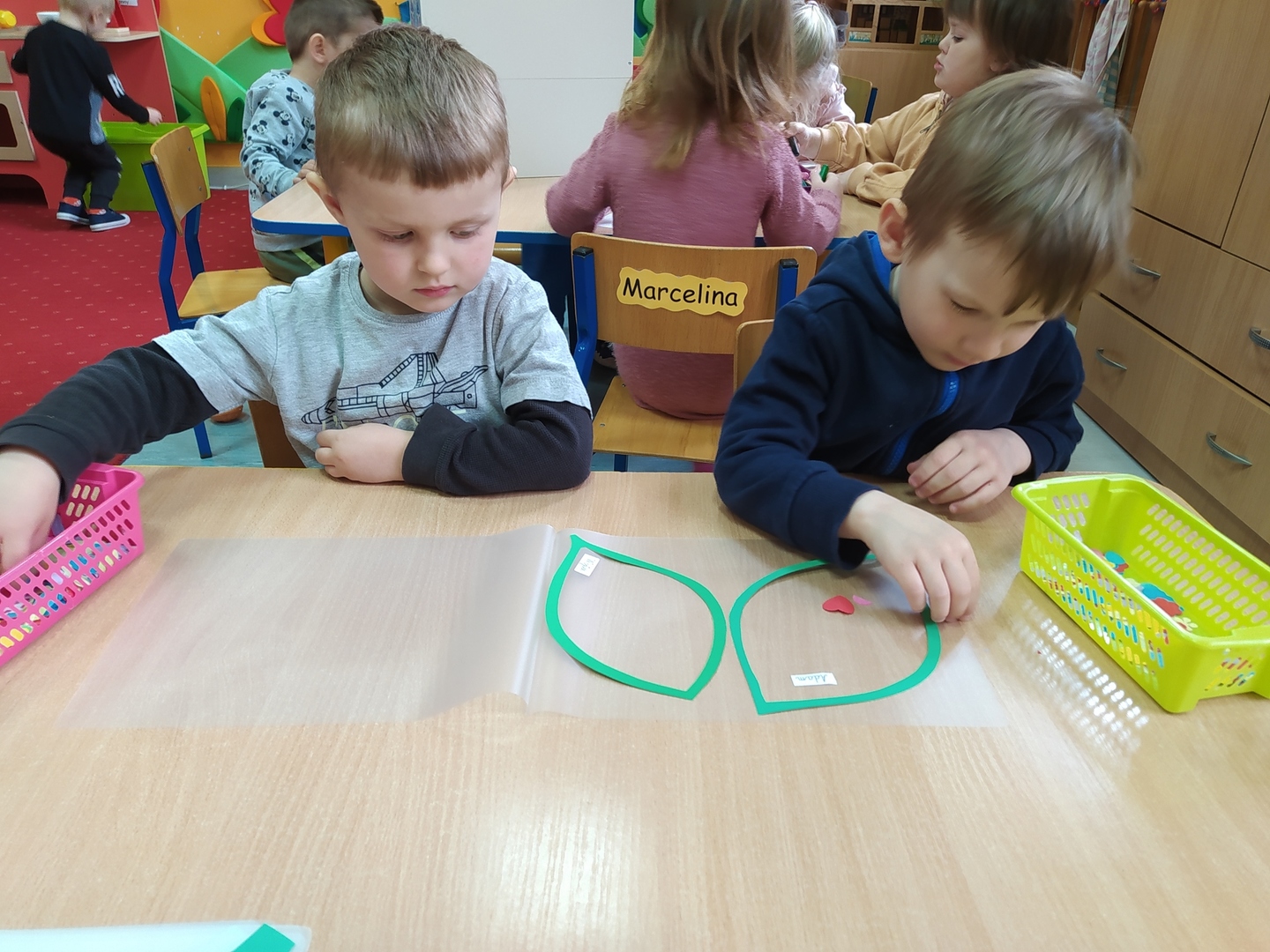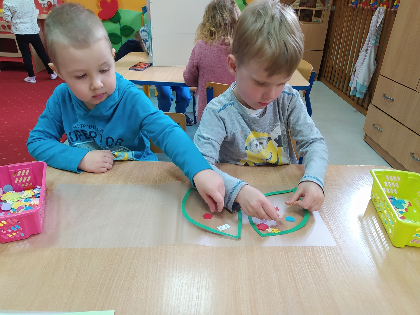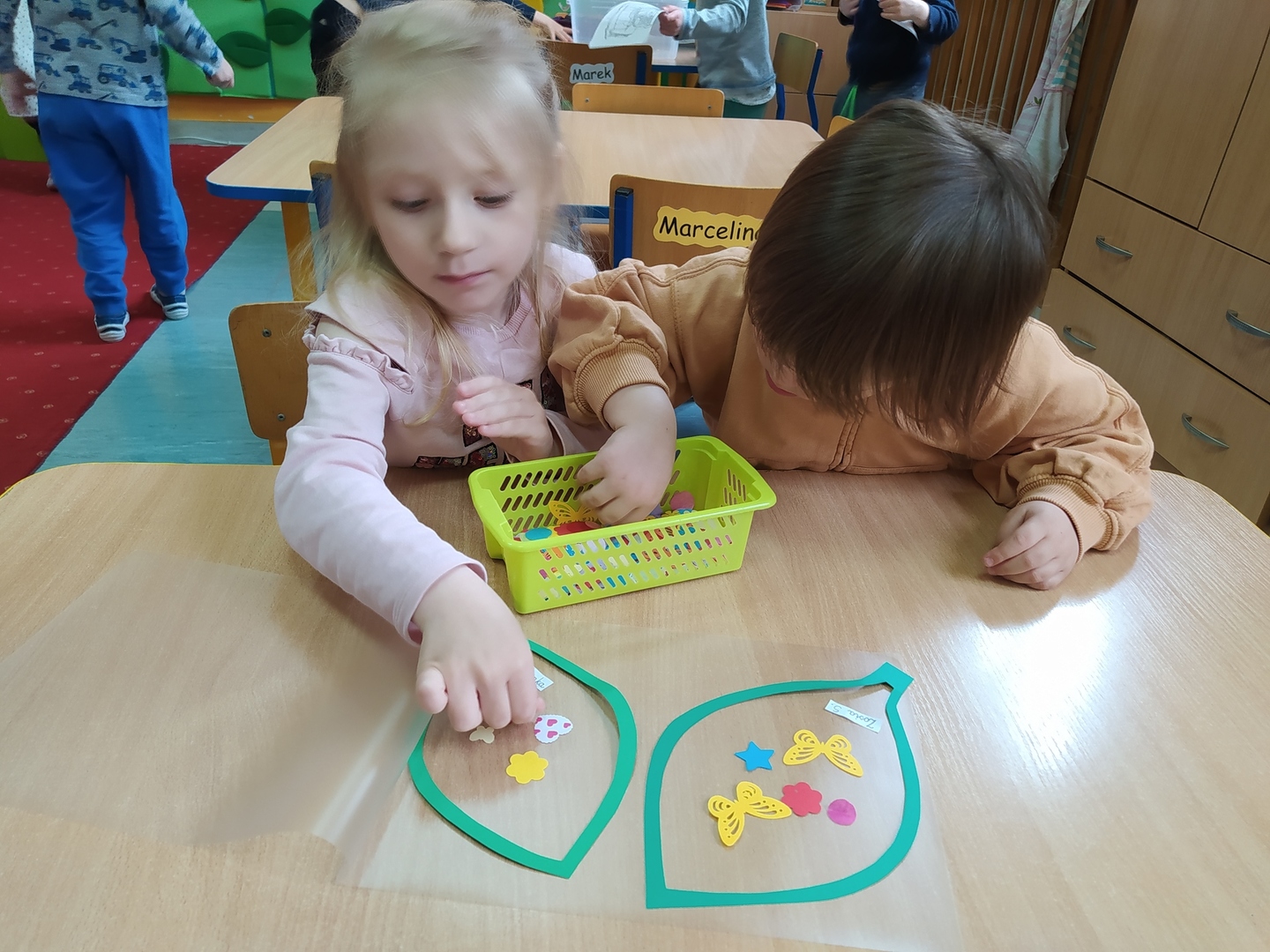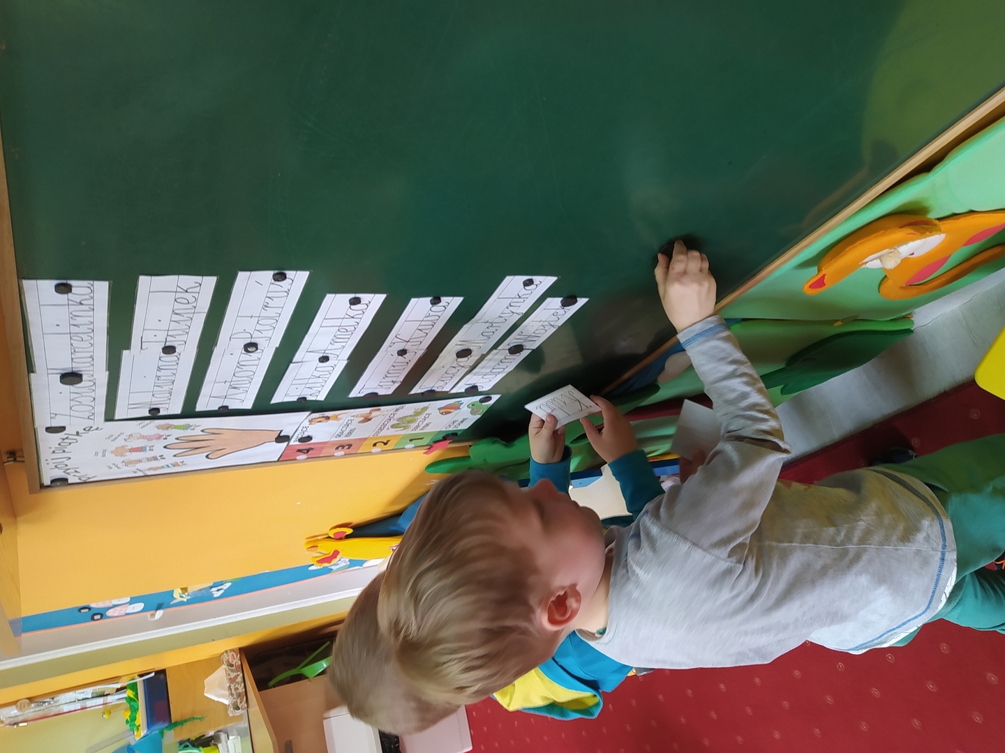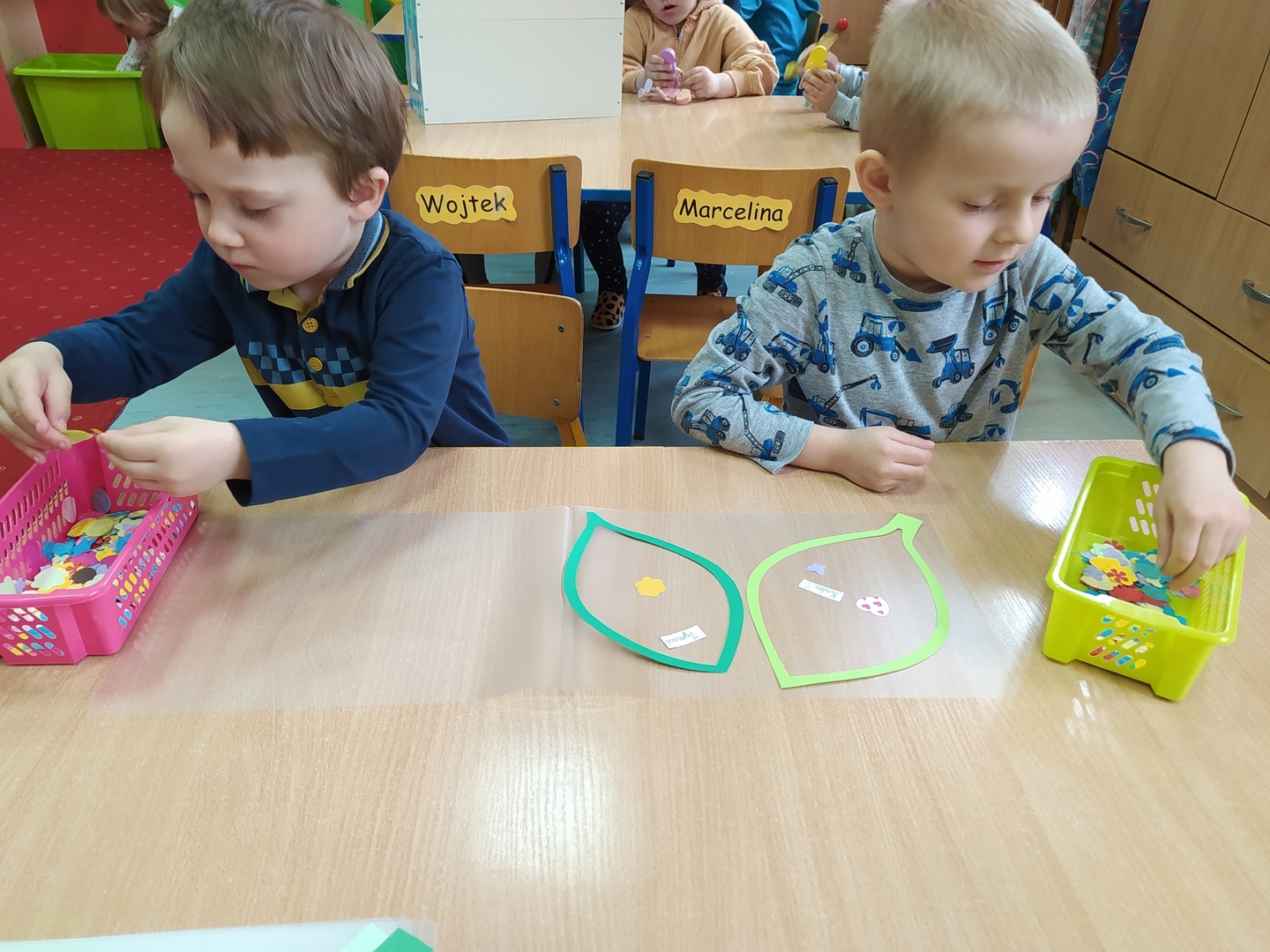 My Smerfiki dzielne, jesteśmy już bardzo samodzielne. 1. Kanapki na śniadanie, sami raz w tygodniu przygotowujemy. 2. Ubrać się i rozebrać to dla nas łatwizna. O ubranka dbać też potrafimy i składać się je uczymy, a gdy ciepło nam doskwiera na wieszaki bluzy i sweterki odwieszamy. 3. Prace swoje do teczek sami też wkładamy, na półeczkach pięknie potem je układamy. Pamiętamy nawet o skrzydełek chowaniu i o tym, by imionko już z daleka na teczce widać było. 4. Po zajęciach podkładkę każdy swoją sprzątnąć pamięta. 5. Gdy z taśmy wzory na dywanie wyklejamy, potem wszyscy razem je odklejamy. Kulki z niej duże i małe formujemy, o porządek w sali dbamy, w koszu je umieścić pamiętamy. 6. Kto w przedszkolu, a kto w domu leniuchuje, co dzień sprawdzamy. Imionka nasze utrwalamy, a i kolegów i koleżanek rozpoznawać już nawet się uczymy. 7. W parach pracować się uczymy, z kolegą i koleżanką zgodnie działać toż to sprawa ważna. 8. Sowy trzy pomocą służą nam i kolorem swym podpowiadają co robić będziemy; z panią bawić się – sowa zielona, z kolegą lub koleżanką tworzyć – sowa żółta, czy sami zadanie wykonywać- sowa czerwona. 9. Aby łatwiej było nam, co dzień pomocnika wybieramy. Dzielny on jest, żadne wyzwania straszne nie są mu. Czy koszyków rozdawanie, czy kart pracy dzieciom wręczanie- uśmiech na twarzy zawsze ma, pomagać wszystkich bardzo chce.