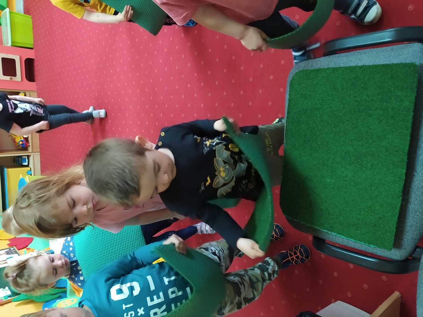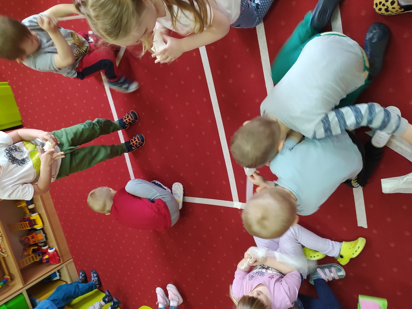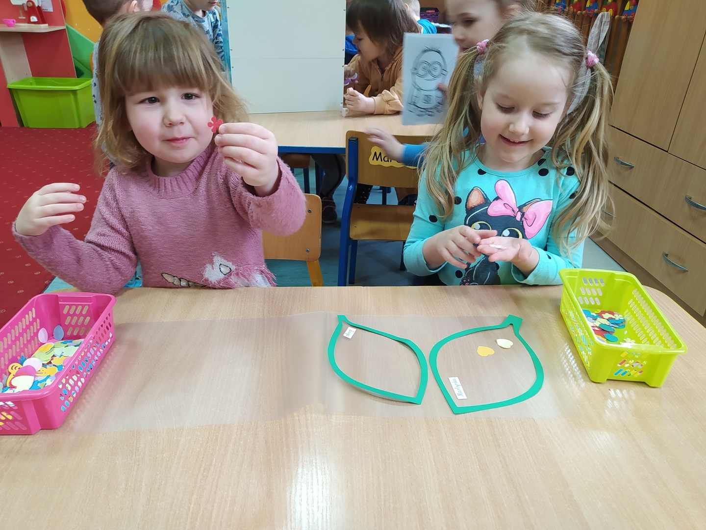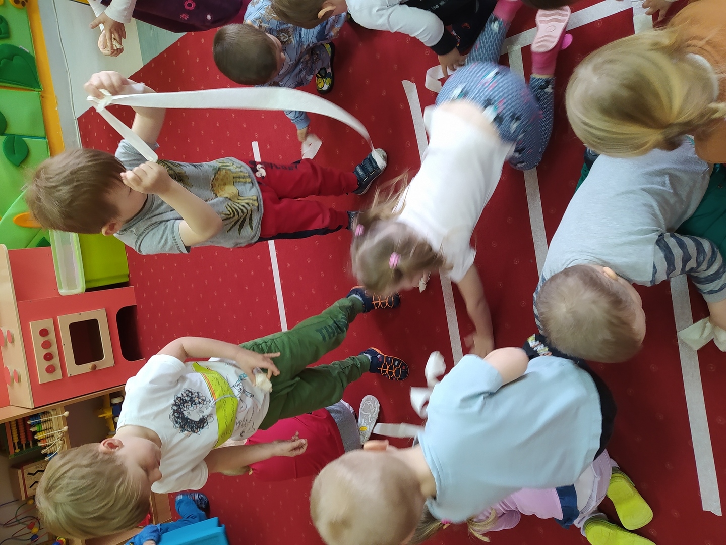 My Smerfiki dzielne, jesteśmy już bardzo samodzielne. 1. Kanapki na śniadanie, sami raz w tygodniu przygotowujemy. 2. Ubrać się i rozebrać to dla nas łatwizna. O ubranka dbać też potrafimy i składać się je uczymy, a gdy ciepło nam doskwiera na wieszaki bluzy i sweterki odwieszamy. 3. Prace swoje do teczek sami też wkładamy, na półeczkach pięknie potem je układamy. Pamiętamy nawet o skrzydełek chowaniu i o tym, by imionko już z daleka na teczce widać było. 4. Po zajęciach podkładkę każdy swoją sprzątnąć pamięta. 5. Gdy z taśmy wzory na dywanie wyklejamy, potem wszyscy razem je odklejamy. Kulki z niej duże i małe formujemy, o porządek w sali dbamy, w koszu je umieścić pamiętamy. 6. Kto w przedszkolu, a kto w domu leniuchuje, co dzień sprawdzamy. Imionka nasze utrwalamy, a i kolegów i koleżanek rozpoznawać już nawet się uczymy. 7. W parach pracować się uczymy, z kolegą i koleżanką zgodnie działać toż to sprawa ważna. 8. Sowy trzy pomocą służą nam i kolorem swym podpowiadają co robić będziemy; z panią bawić się – sowa zielona, z kolegą lub koleżanką tworzyć – sowa żółta, czy sami zadanie wykonywać- sowa czerwona. 9. Aby łatwiej było nam, co dzień pomocnika wybieramy. Dzielny on jest, żadne wyzwania straszne nie są mu. Czy koszyków rozdawanie, czy kart pracy dzieciom wręczanie- uśmiech na twarzy zawsze ma, pomagać wszystkich bardzo chce.