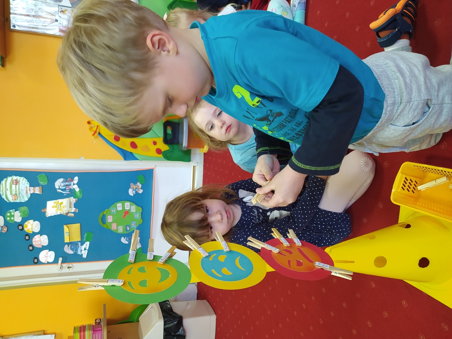 Emocje odgrywają ważną rolę w życiu każdego człowieka. Towarzyszą nam w każdej chwili, wpływają na nasze zachowania i myśli. Dlatego, tak jak uczymy dzieci matematyki, przyrody czy języków obcych, warto uczyć je „języka emocji”. Poznanie „języka emocji” pozwala dzieciom lepiej poznać i zrozumieć samego siebie, odkryć swoje silne strony i talenty oraz zbudować zdrowe poczucie własnej wartości. Lepsze poznanie siebie pozwala także lepiej rozumieć innych ludzi, łatwiej się z nimi dogadywać i współpracować. Dzięki temu życie staje się łatwiejsze i daje więcej radości. W okresie przedszkolnym następuje intensywny rozwój dziecka, w tym rozwój emocjonalny. Dzieci poznają, identyfikują i wyrażają emocje, przez co bogaci się ich życie emocjonalne. Dzieci z grupy Smerfy poznały różne rodzaje emocji, m.in. radość, smutek, złość i strach. Maluchy nauczyły się w jaki sposób można okazywać dobre emocje oraz jak radzić sobie ze złością. Z relacji fotograficznej widać, że maluszki we właściwy sposób potrafią okazywać poznane emocje.