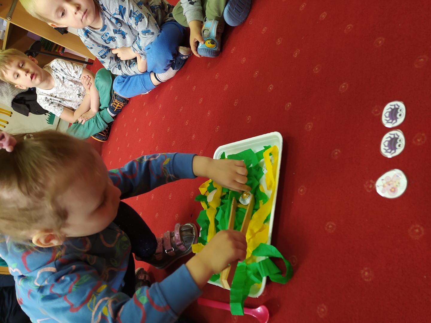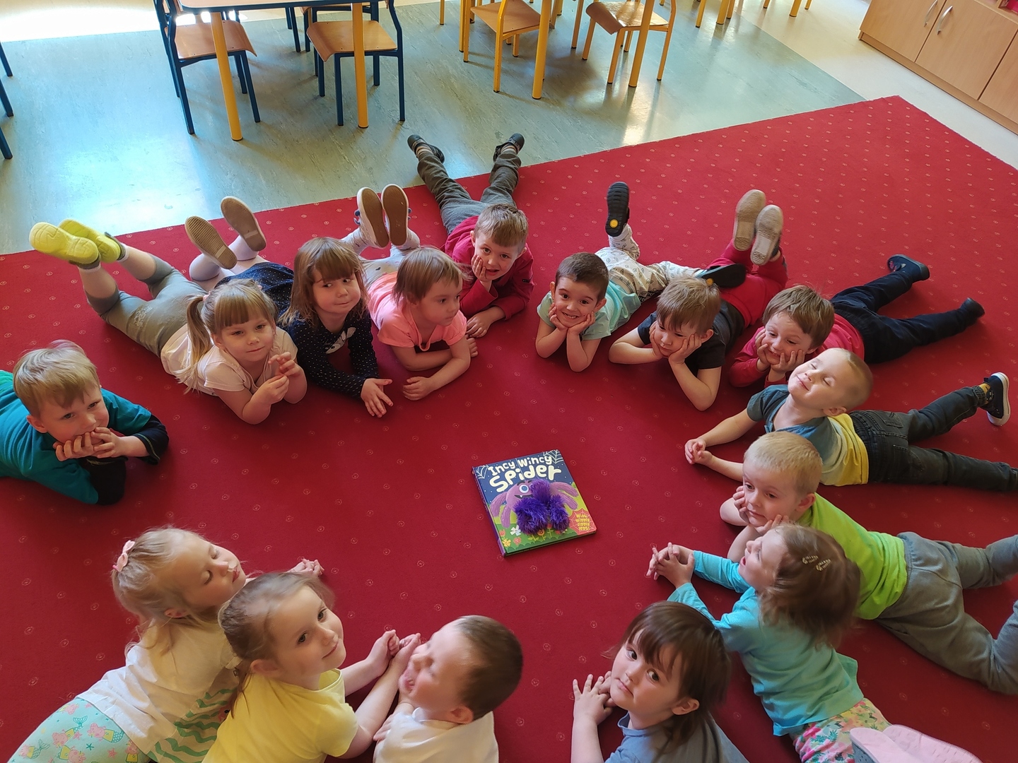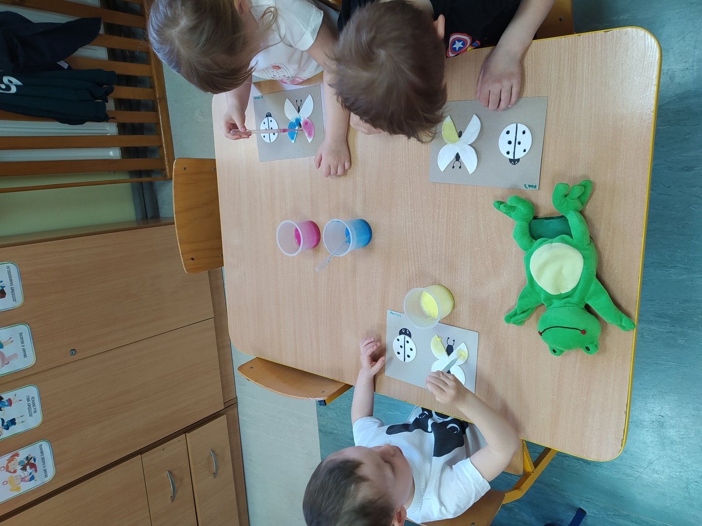 W maju, wraz z nastaniem trochę cieplejszym dni, żabka Polly zaprosiła Smerfy na łąkę. Dzięki tym krótkim, aczkolwiek częstym wyprawom Smerfy poznały przyjaciół żabki- pszczołę, pająka, biedronkę oraz motylka. Maluszki oprócz utrwalania dotychczas poznanych piosenek, wierszyków i wyliczanek, dzięki ciekawym pomocą dydaktycznym oraz propozycją zabaw, poszerzały swoje doświadczenia, zaspokajały ciekawość otaczającego świata, rozbudzały wyobraźnię, jak również ćwiczyły umiejętność zapamiętywania oraz koncentracji na zadaniu. Było bardzo wesoło i oczywiście zielono .