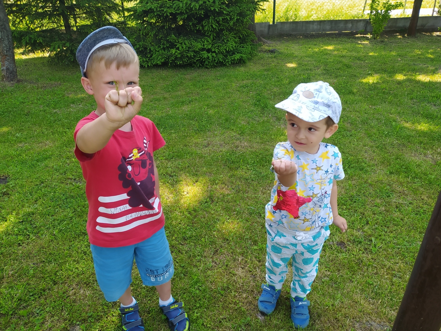 Te ostatnie, wspólnie spędzane chwile były dla maluszków niezwykle radosnym czasem, przepełnionym ulubionymi zabawami. Obfitowały w wiele nowych doświadczeń, podczas których doskonaliliśmy umiejętność zgodnej współpracy (w parach, w zespołach i w grupie), używania zwrotów grzecznościowych, uważnego słuchania innych, jak również cierpliwego czekania na swoją kolej. Dzięki sprzyjającej aurze, odbyliśmy również nietypowe zajęcia przyrodnicze na świeżym powietrzu, a w upalne chwile chłodziliśmy się podczas zabaw z wodą.