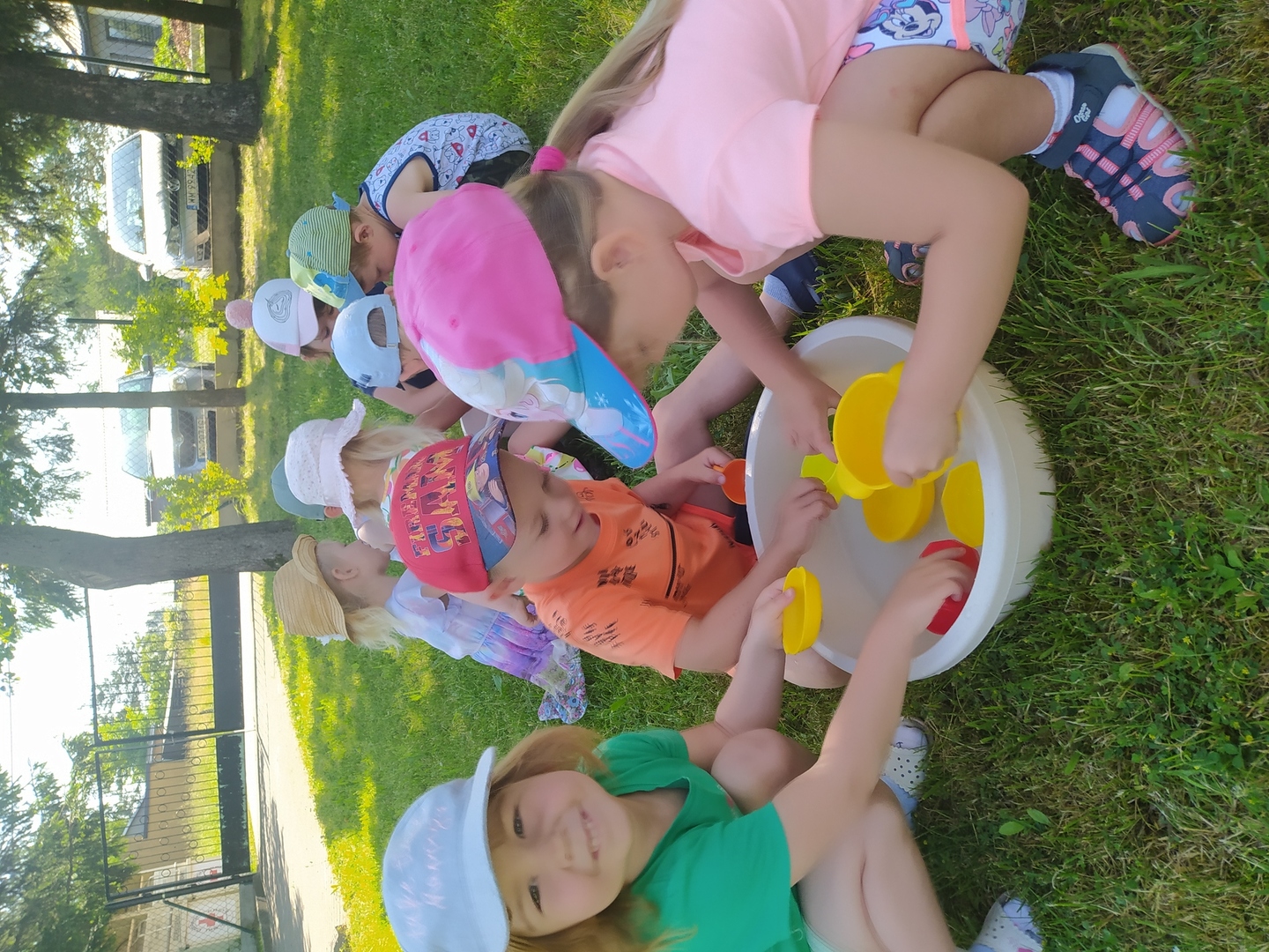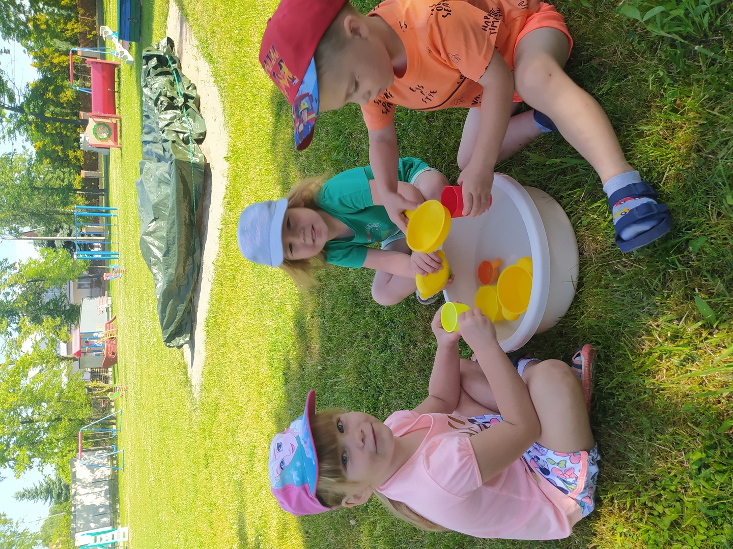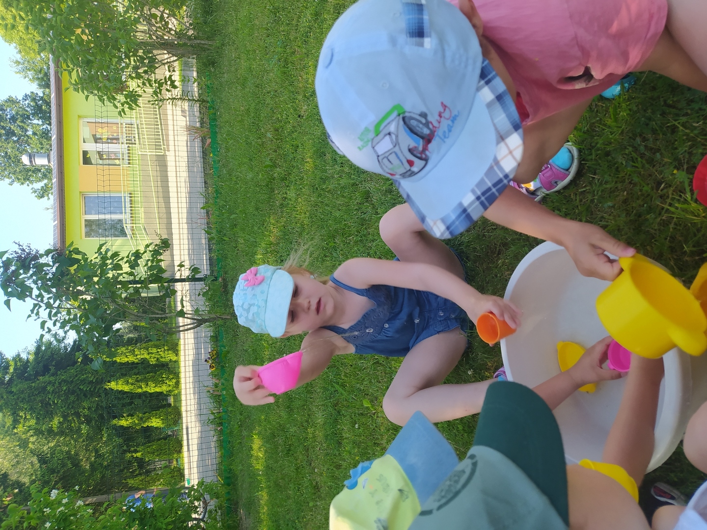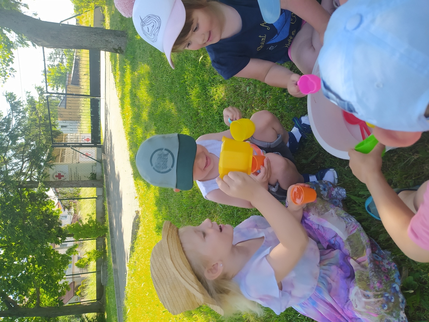 Te ostatnie, wspólnie spędzane chwile były dla maluszków niezwykle radosnym czasem, przepełnionym ulubionymi zabawami. Obfitowały w wiele nowych doświadczeń, podczas których doskonaliliśmy umiejętność zgodnej współpracy (w parach, w zespołach i w grupie), używania zwrotów grzecznościowych, uważnego słuchania innych, jak również cierpliwego czekania na swoją kolej. Dzięki sprzyjającej aurze, odbyliśmy również nietypowe zajęcia przyrodnicze na świeżym powietrzu, a w upalne chwile chłodziliśmy się podczas zabaw z wodą.