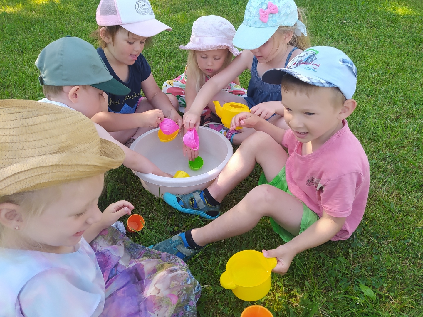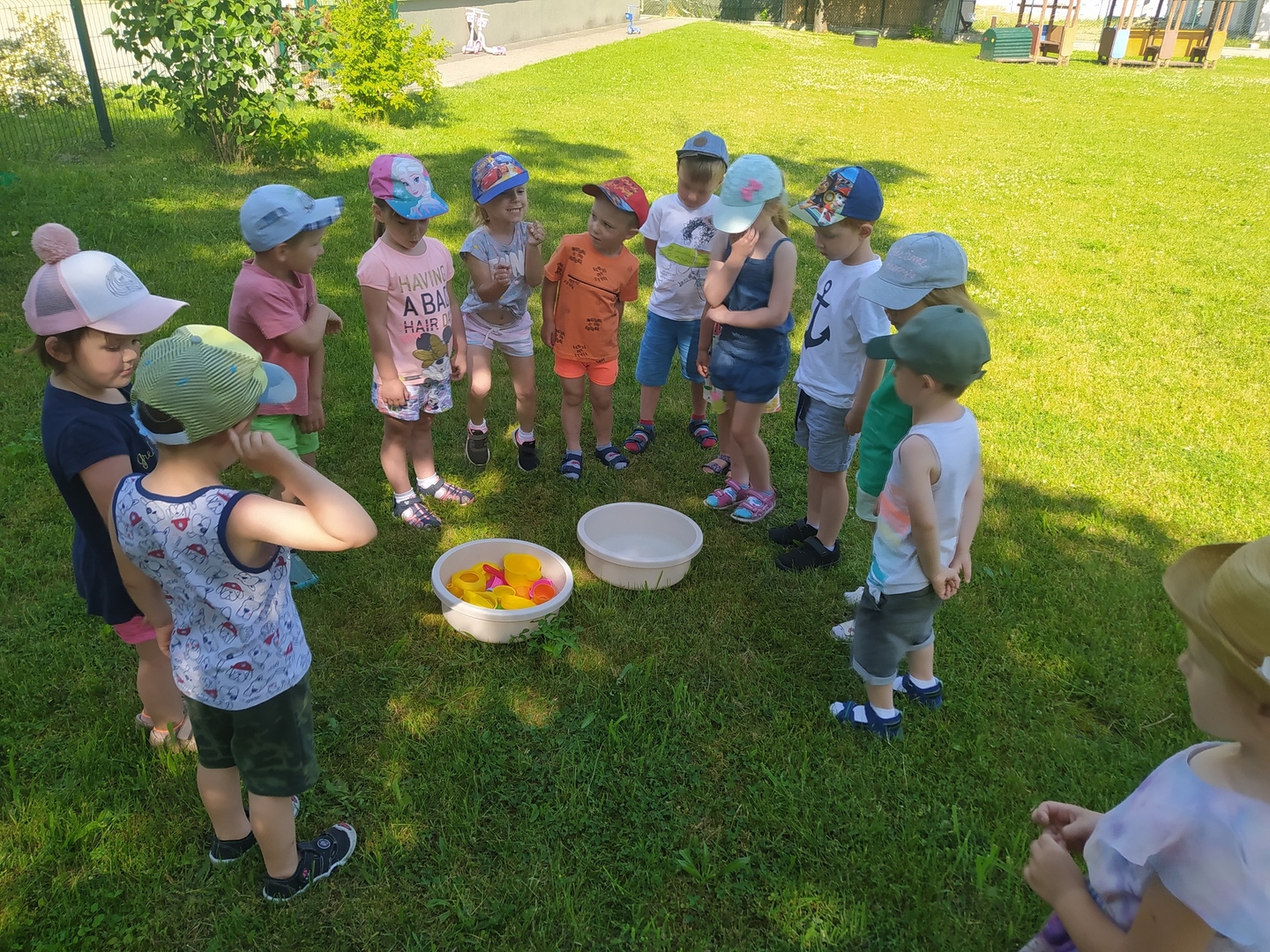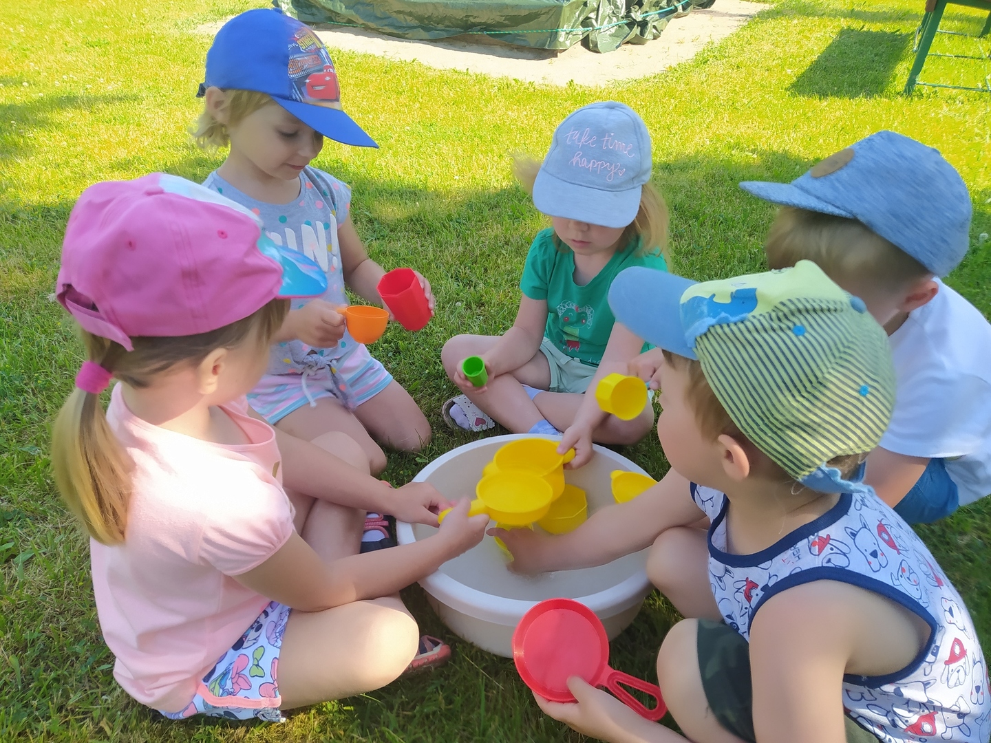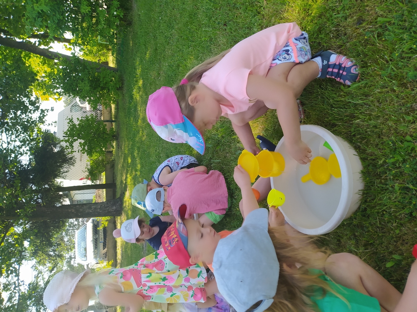 Te ostatnie, wspólnie spędzane chwile były dla maluszków niezwykle radosnym czasem, przepełnionym ulubionymi zabawami. Obfitowały w wiele nowych doświadczeń, podczas których doskonaliliśmy umiejętność zgodnej współpracy (w parach, w zespołach i w grupie), używania zwrotów grzecznościowych, uważnego słuchania innych, jak również cierpliwego czekania na swoją kolej. Dzięki sprzyjającej aurze, odbyliśmy również nietypowe zajęcia przyrodnicze na świeżym powietrzu, a w upalne chwile chłodziliśmy się podczas zabaw z wodą.