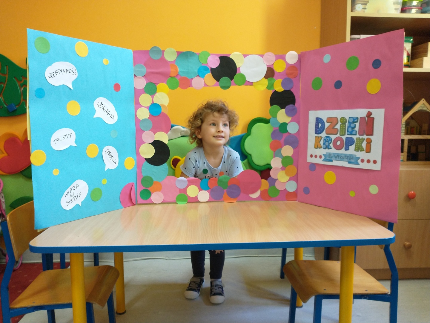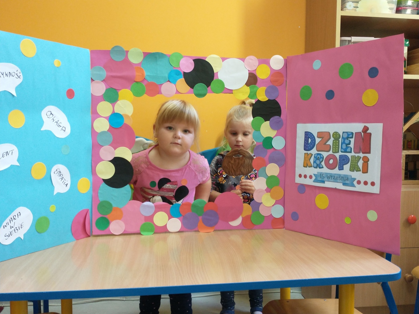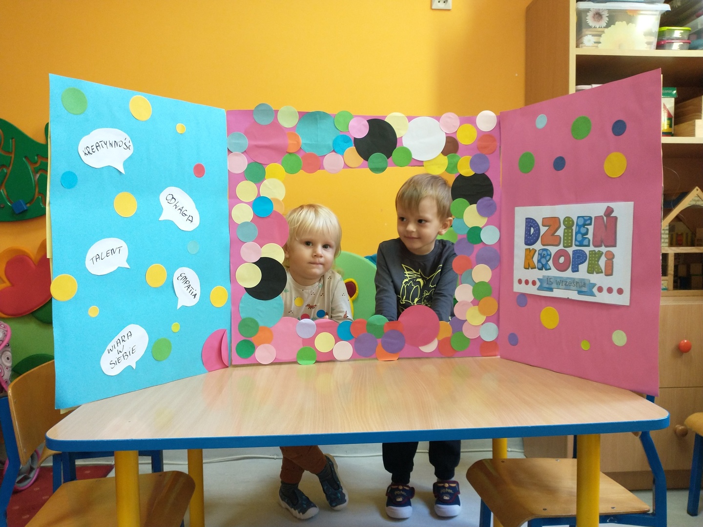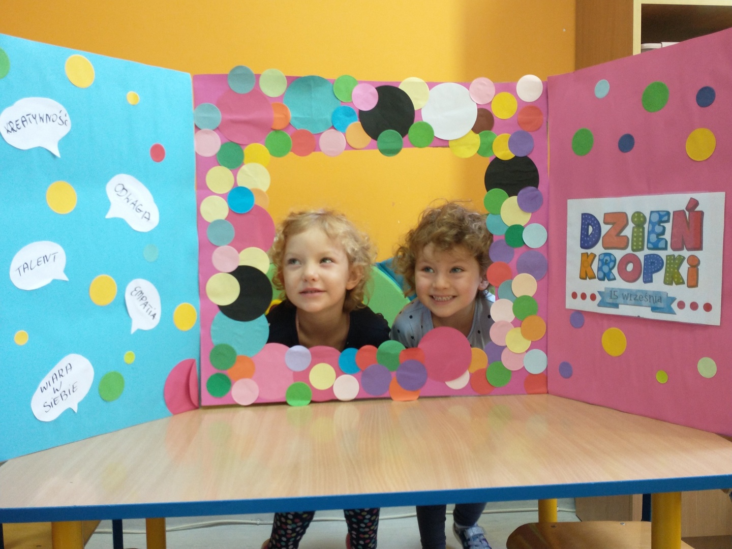 Dzieci z najmłodszej grupy w dniu dzisiejszym wzięły udział w obchodach Międzynarodowego Dnia Kropki, czyli święta kreatywności, odwagi i wiary we własne możliwości. Dzieci wzięły udział w kropkowych zajęciach, układały kropkowe puzzle, wysłuchały opowieści o Vashti, bohaterce książki P.H.Reynoldsa pt: "Kropka". Nasze Smerfy stworzyły galerię prac inspirowaną twórczością Vashti oraz wzięły udział w sesji zdjęciowej w kropkowej fotobudce 🙂